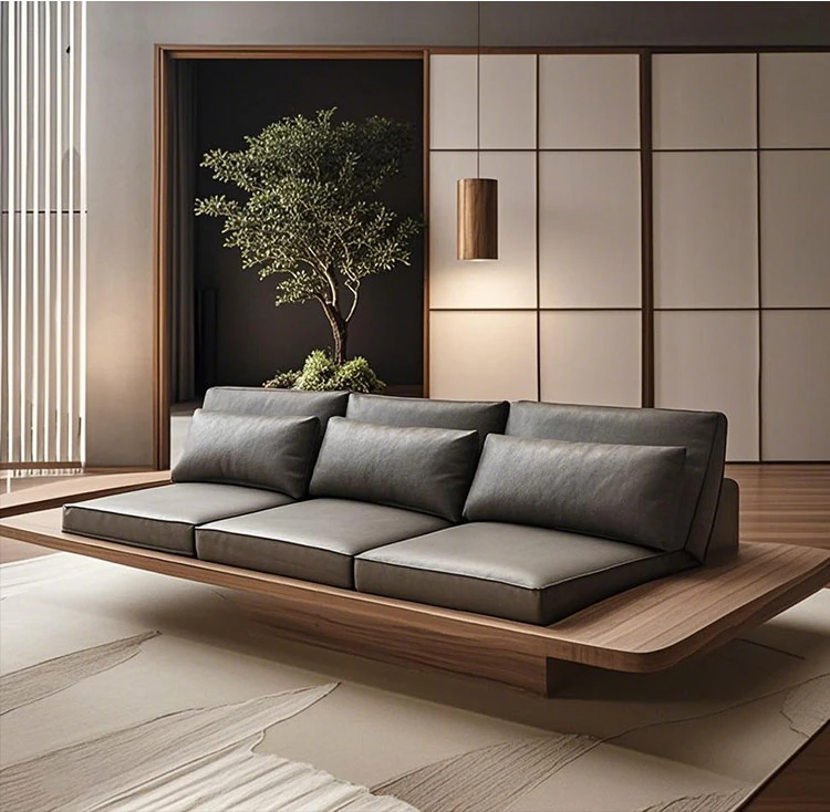新中式デザインのイタリアンウォールナット製ソファ・カウチ、侘び寂びの風合いを持つローハンベッド。現代的でシンプルな民宿やホテルに最適なアイテム。心地よいひとときを演出します。