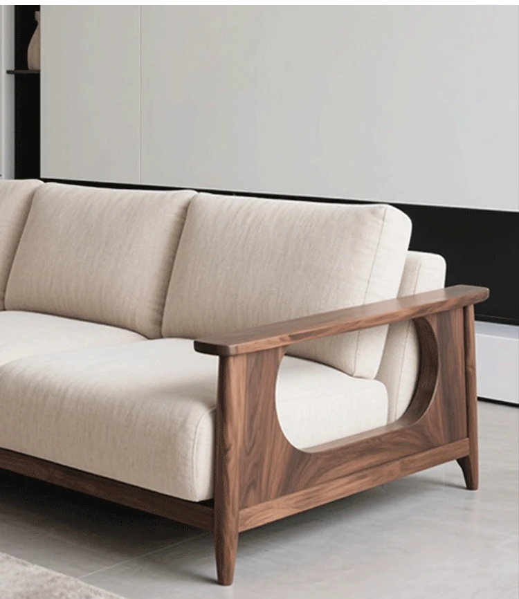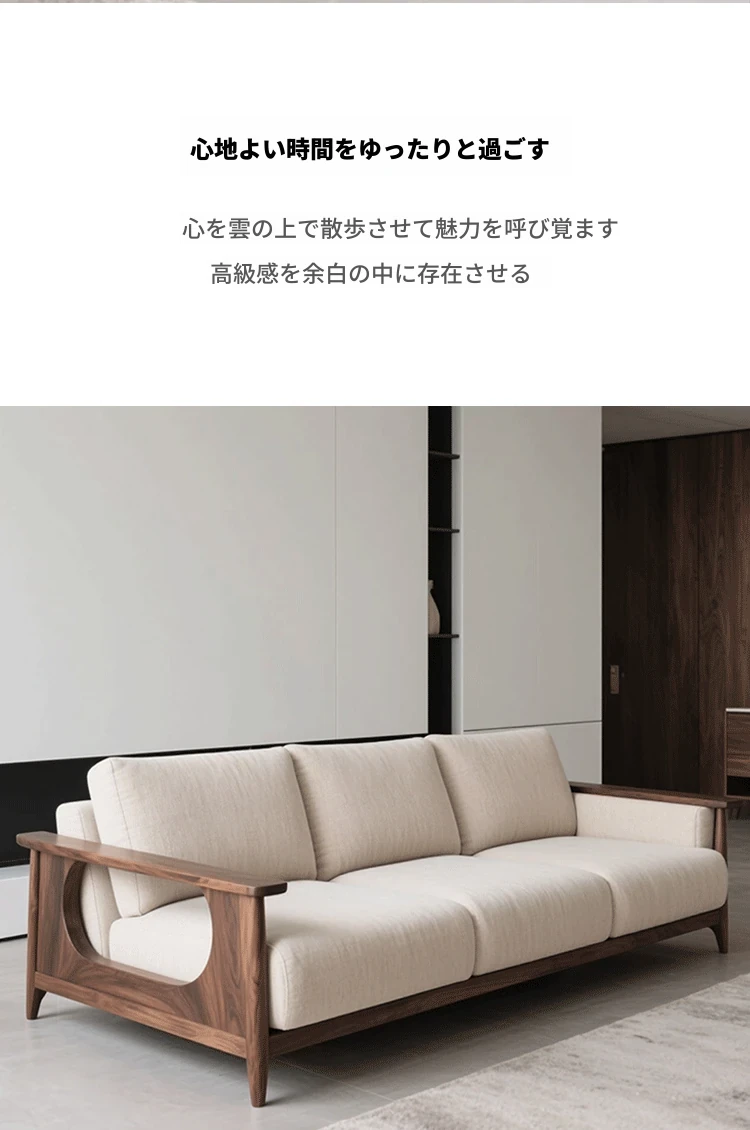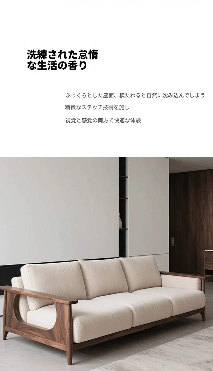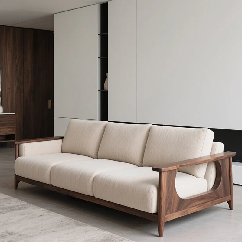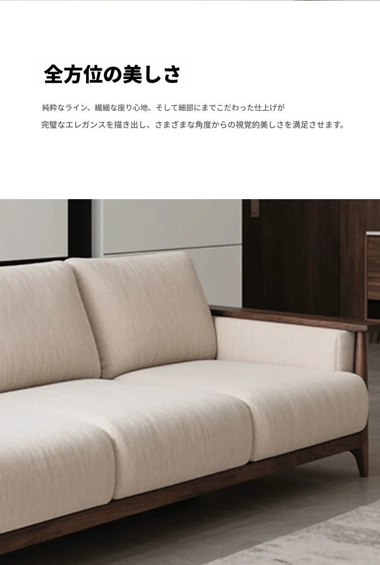 2025年新作!新中式胡桃木実木ソファ - モダンでラグジュアリーなシンプルデザイン、リビングにぴったりのストレートソファ。高品質な実木家具で、心地よいひとときをお届けします。
