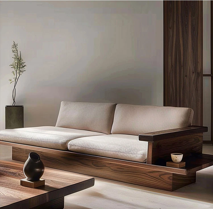 新中式デザインのイタリアンウォールナット製ソファ・カウチ、侘び寂びの風合いを持つローハンベッド。現代的でシンプルな民宿やホテルに最適なアイテム。心地よいひとときを演出します。