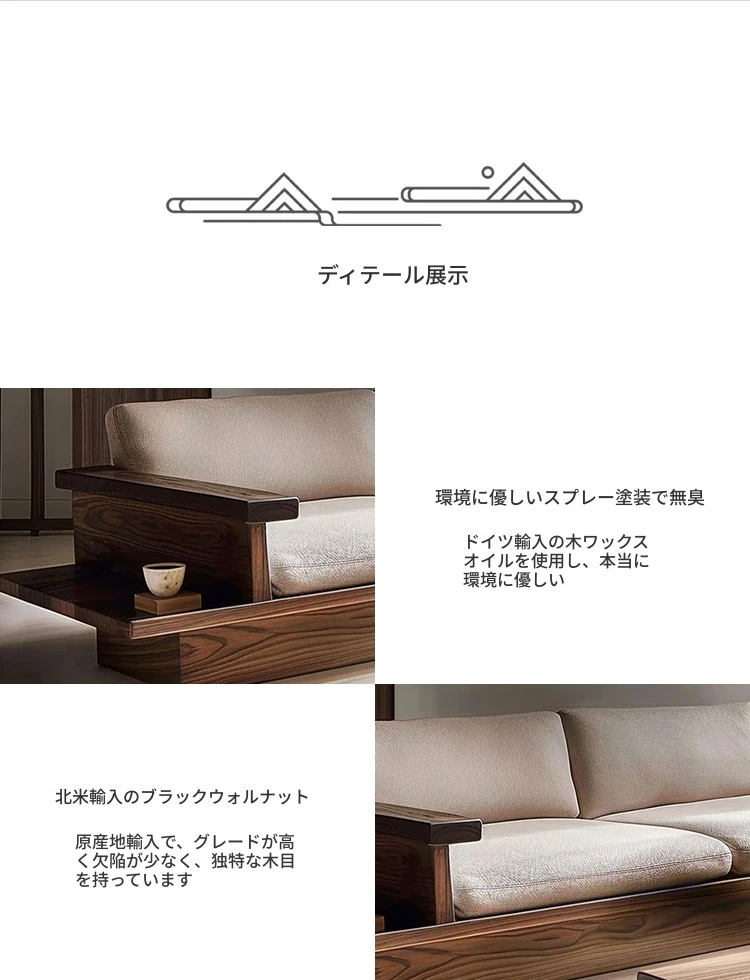 2025年新作!新中式胡桃木実木ソファ - モダンでラグジュアリーなシンプルデザイン、リビングにぴったりのストレートソファ。高品質な実木家具で、心地よいひとときをお届けします。