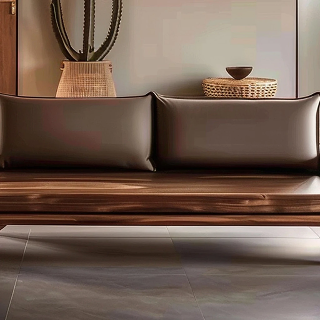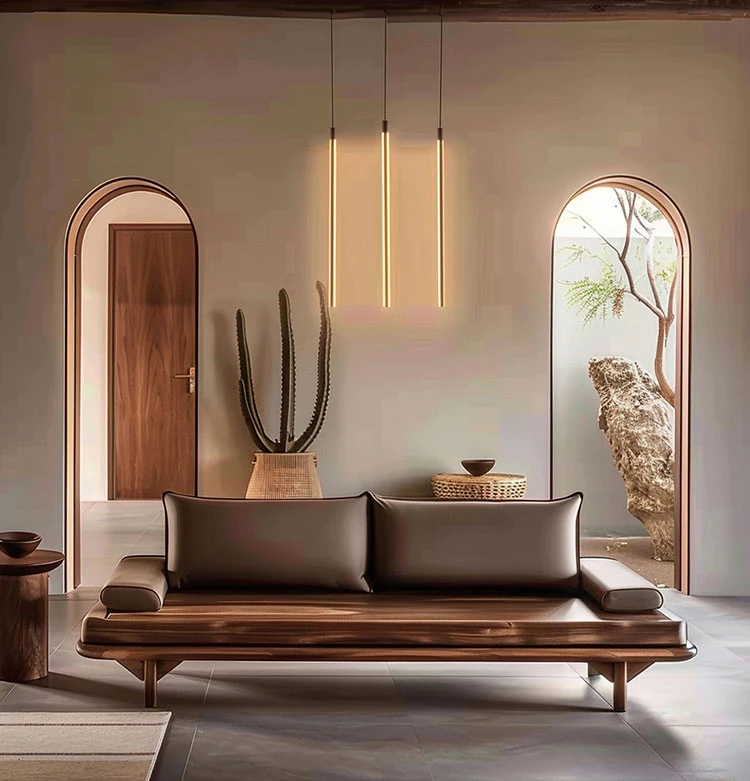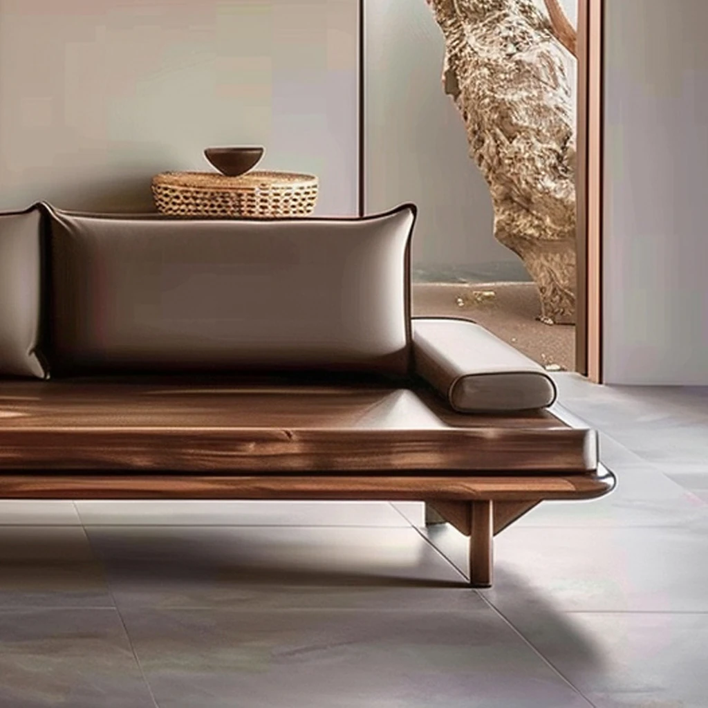 新中式スタイルの北米産ブラックウォールナット仏教風ロハンベッド - 高級感あふれる無垢材のモダン&シンプルなデザイン、リビングルームに最適なイタリアンスタイルのデイベッド&ソファベッド!
