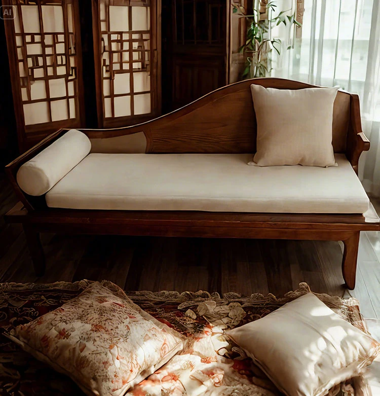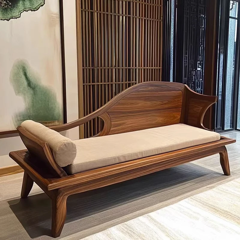 新中式スタイルの北米産ブラックウォルナット製の貴妃椅子。禅の美を感じる高級ホテルや民宿、別荘に最適な実木製ソファ。リビングルームにぴったりの心地よいリラックス体験をお届けします。