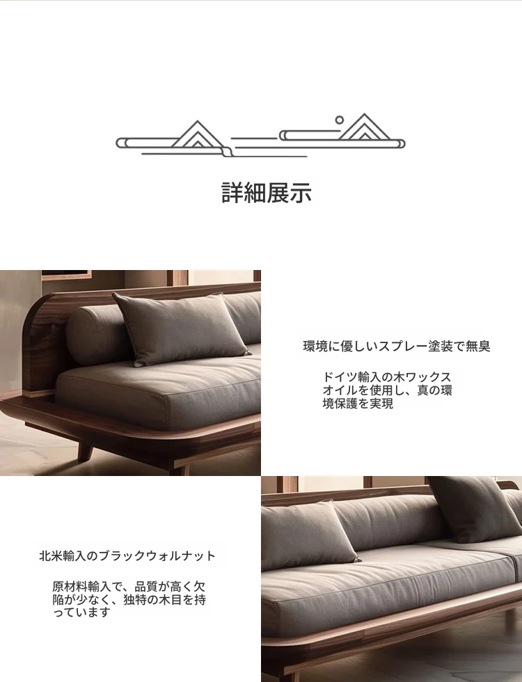 2025年新作!新中式胡桃木実木ソファ - モダンでラグジュアリーなシンプルデザイン、リビングにぴったりのストレートソファ。高品質な実木家具で、心地よいひとときをお届けします。