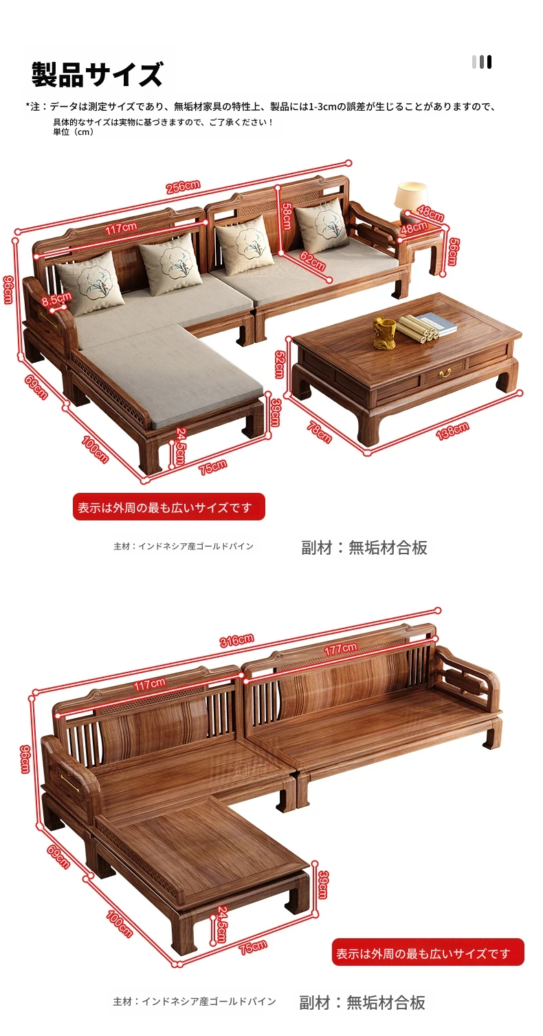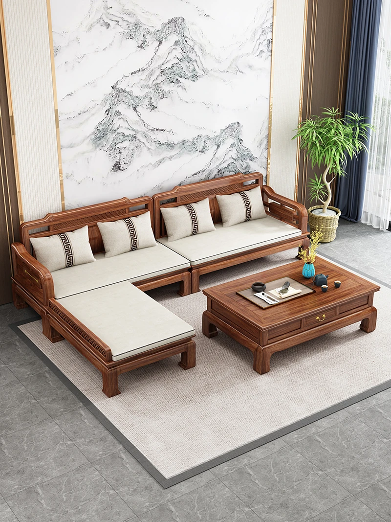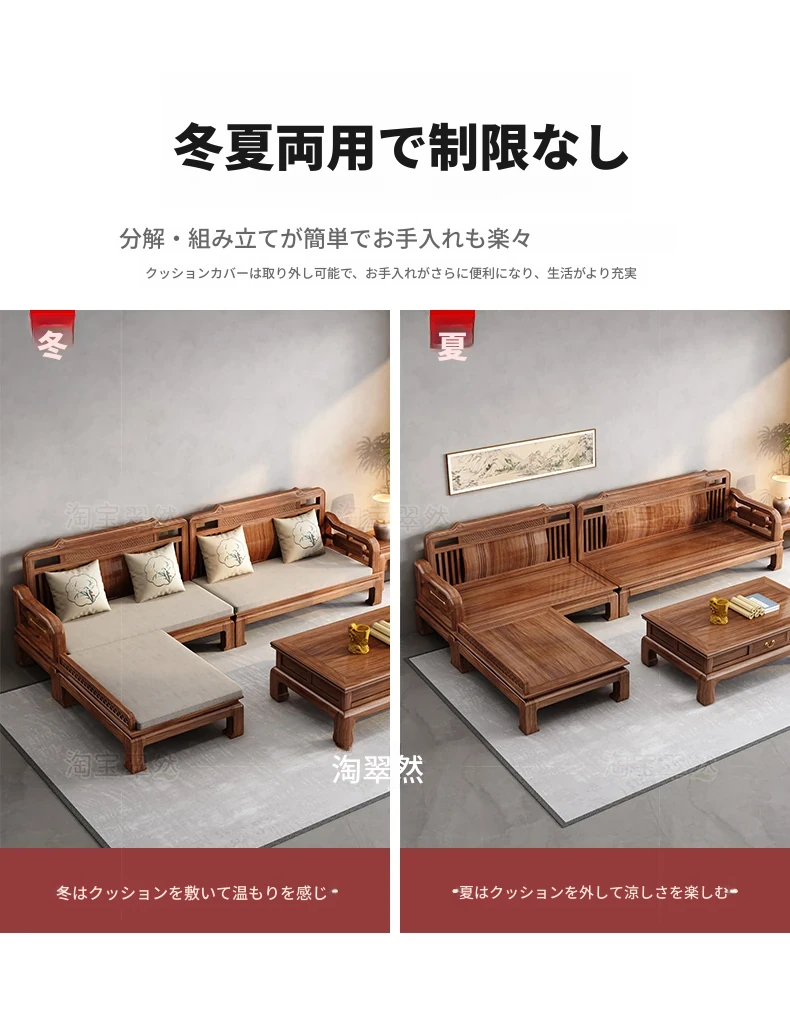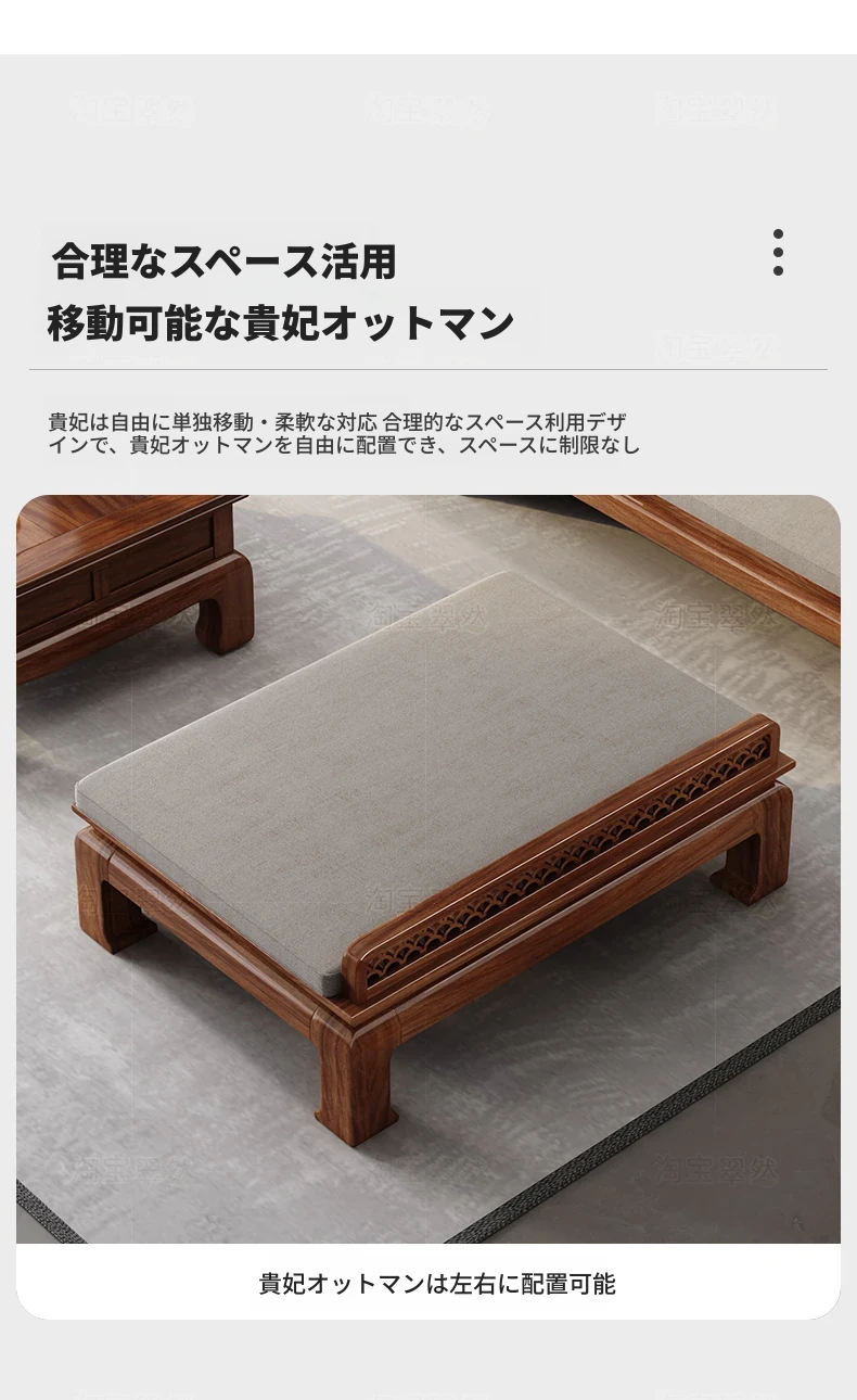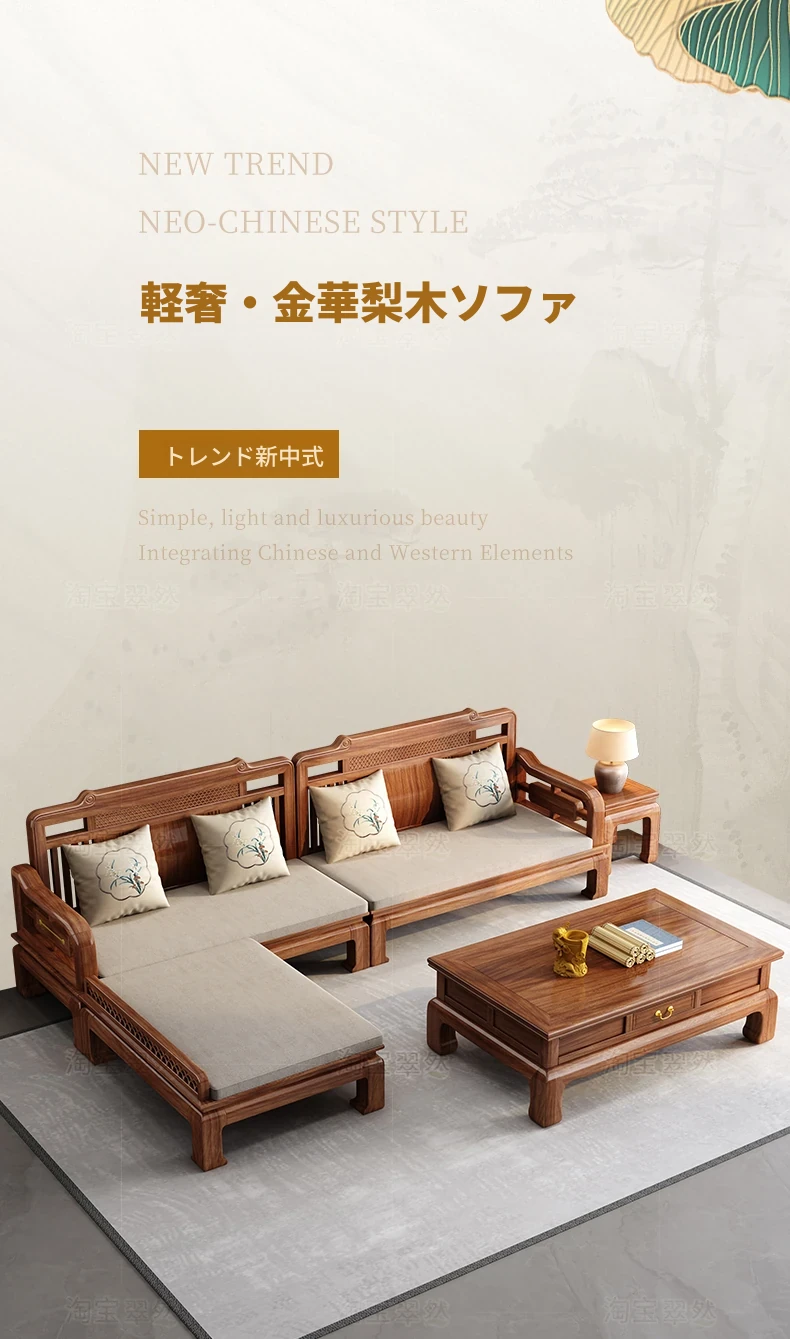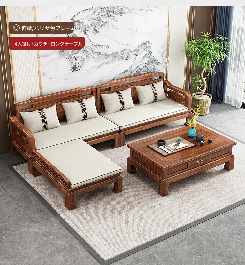 新中式デザイン、金花梨木製の実木ソファ。小さなリビングにもぴったり!冬夏兼用の4人掛け、格調高いアンティーク調家具で、居心地の良い空間を演出します。