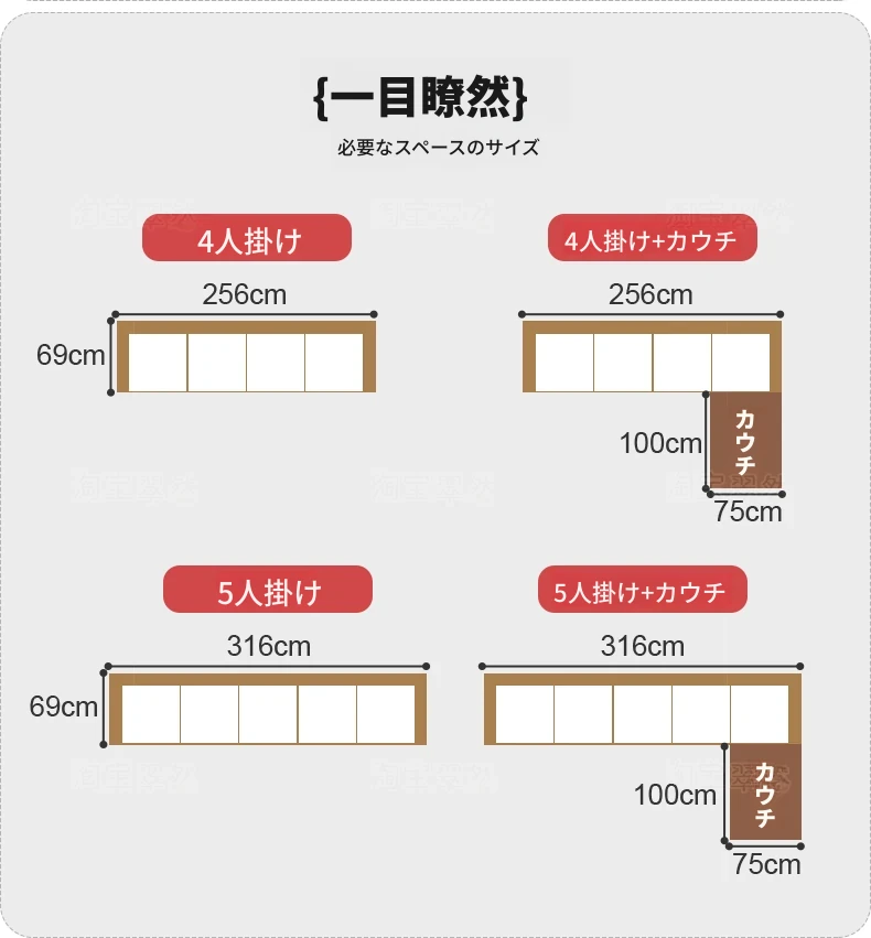2.56メートル4人用+カウチ+コーヒーテーブル