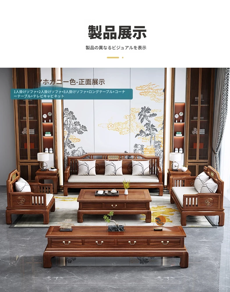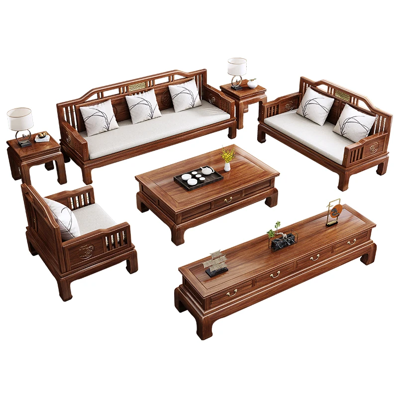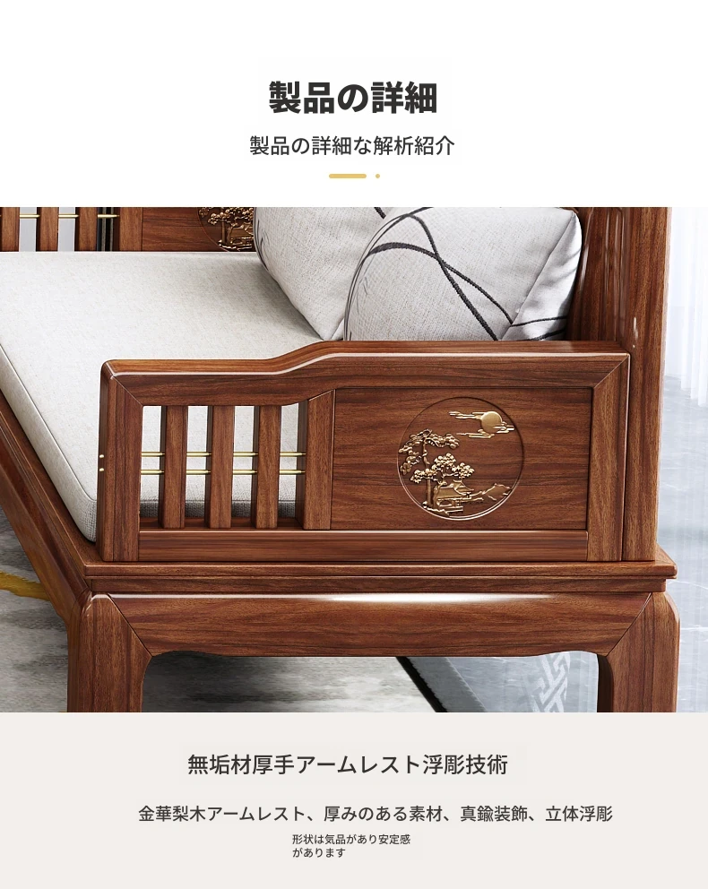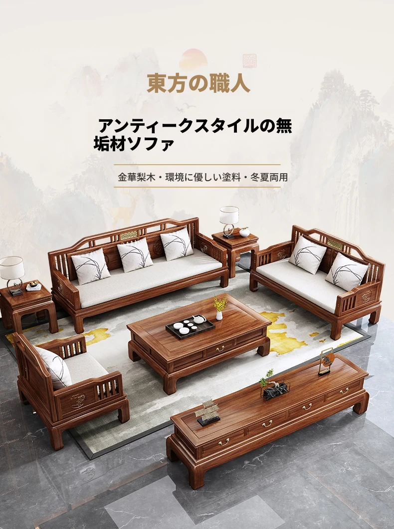 新中式金花梨木製の実木赤檀ソファセット - 菠萝格風のアンティーク彫刻、冬でも夏でも快適なリビング家具!