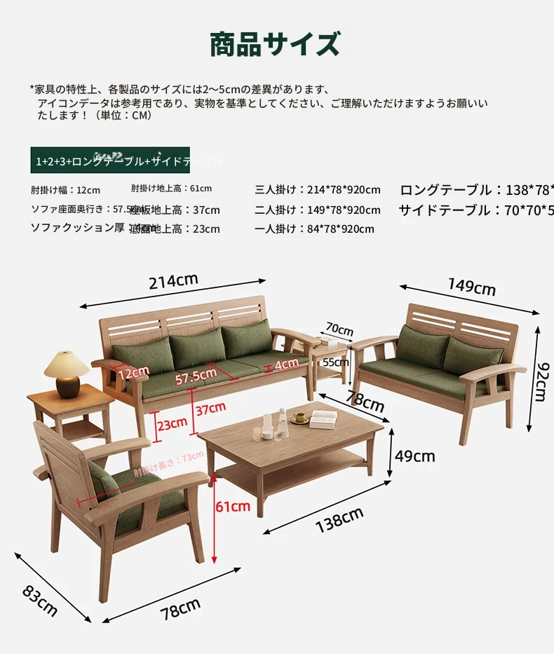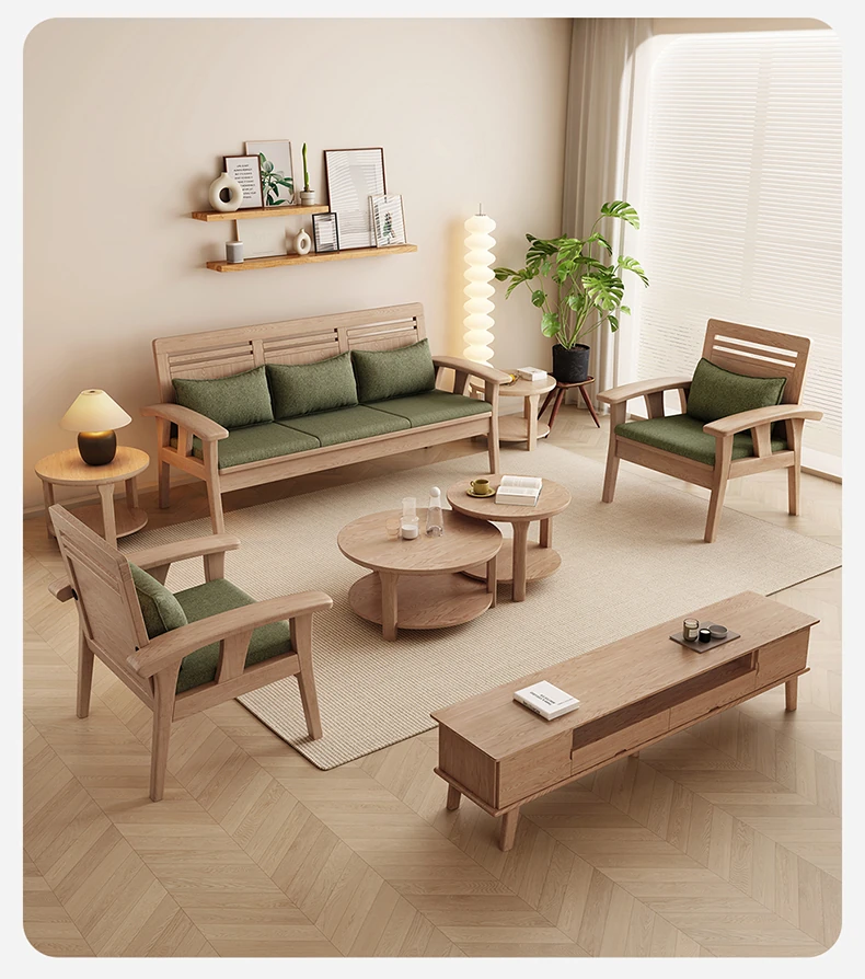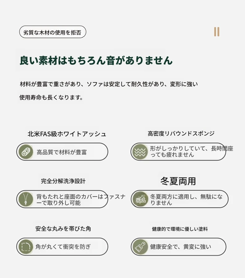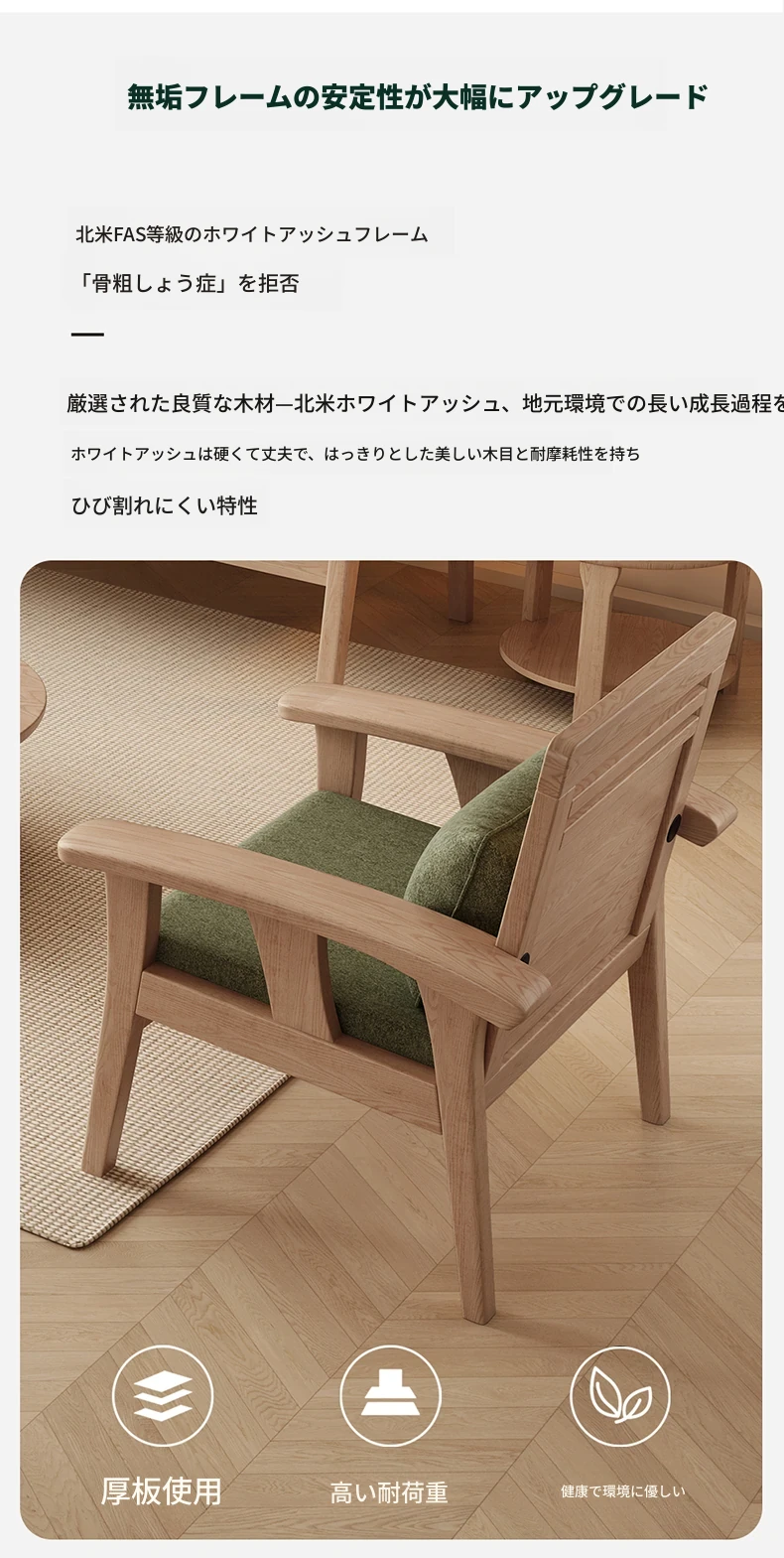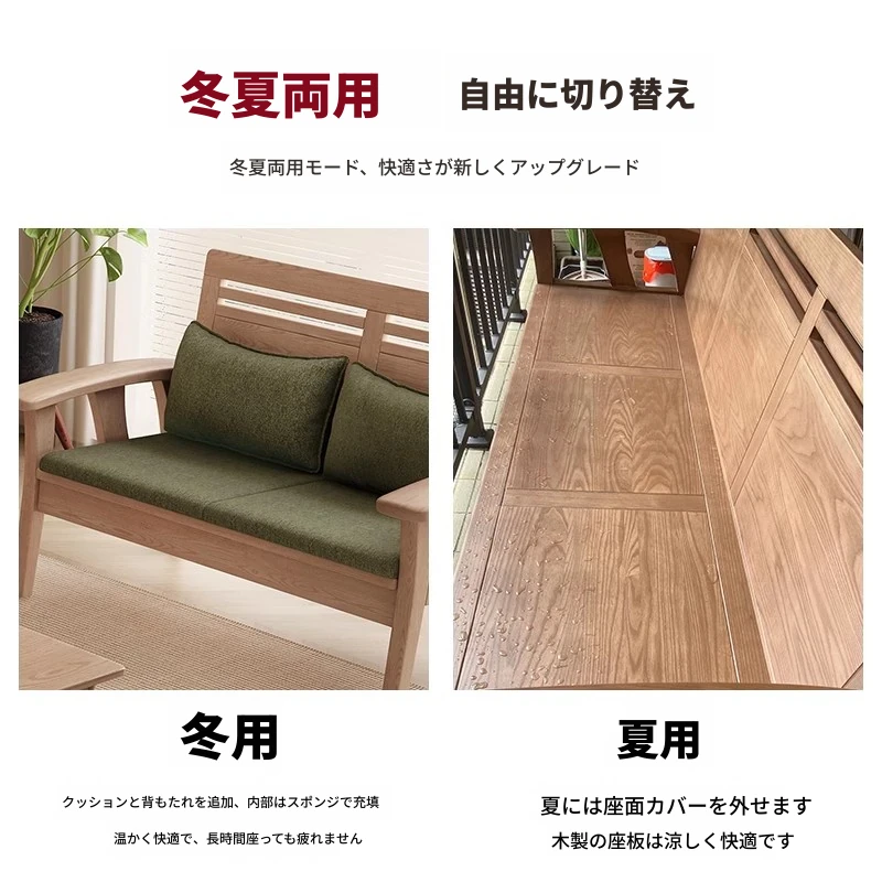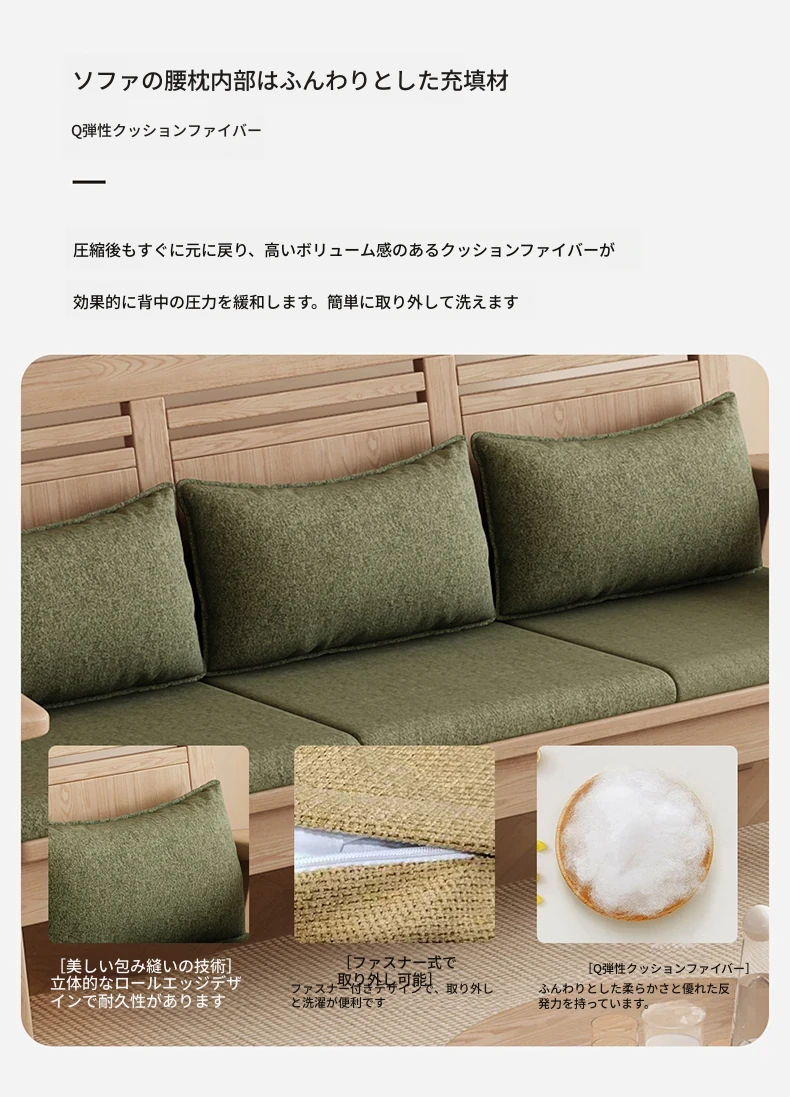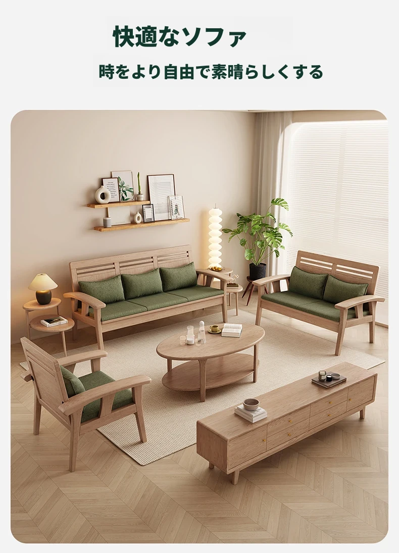 北欧スタイルのホワイトアッシュ無垢材ソファセット - モダンでシンプルなお部屋にぴったり!小さなお家に最適なデザイン、民宿にもおすすめの木製家具です。