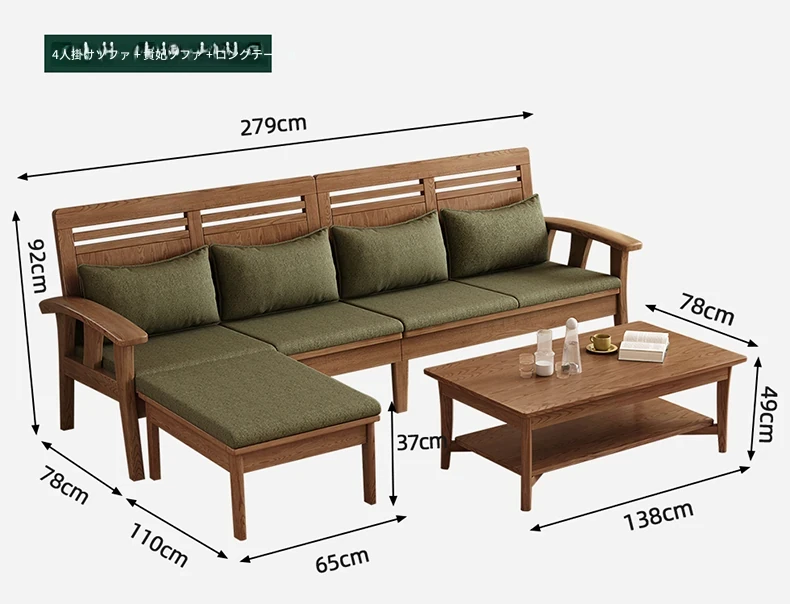 4人用+貴妃ソファ+長いコーヒーテーブル