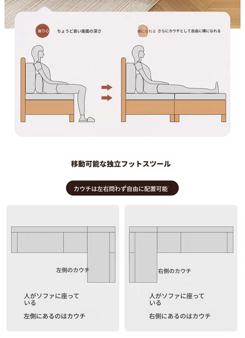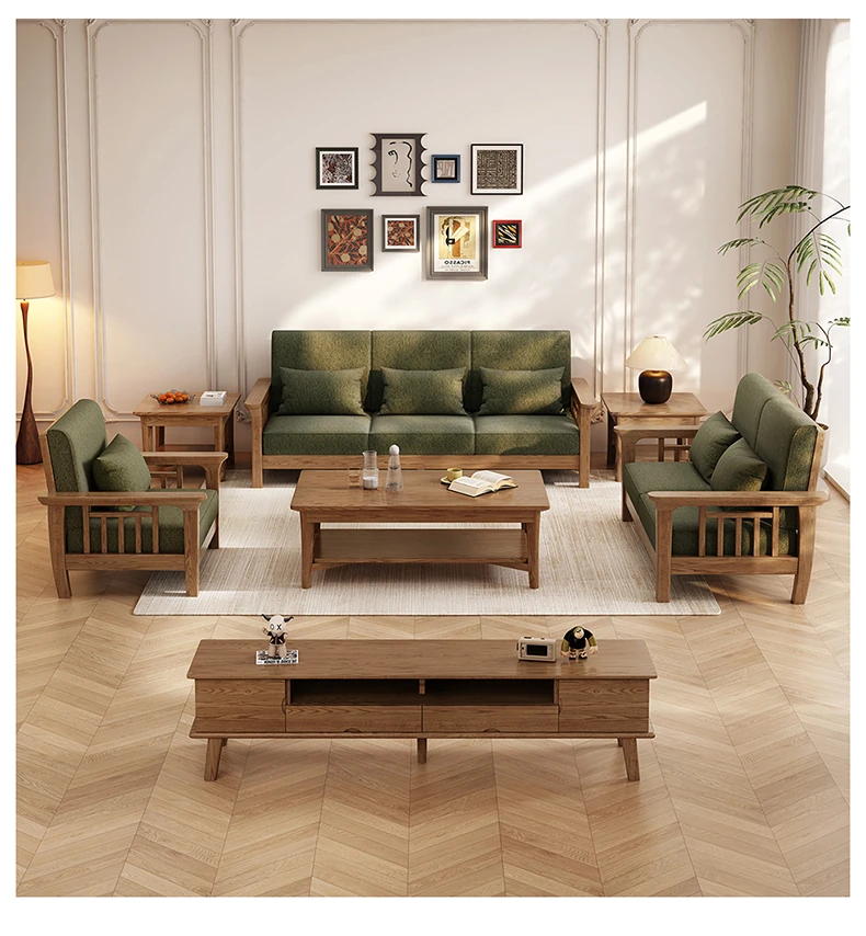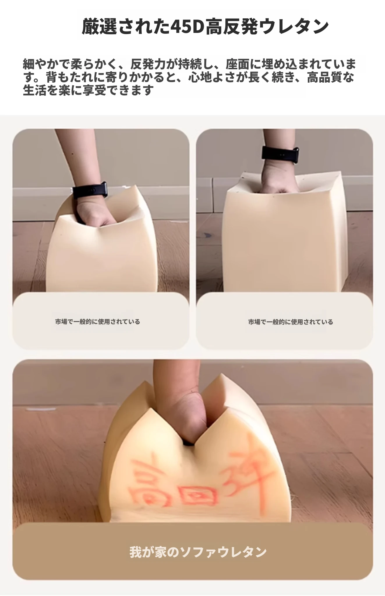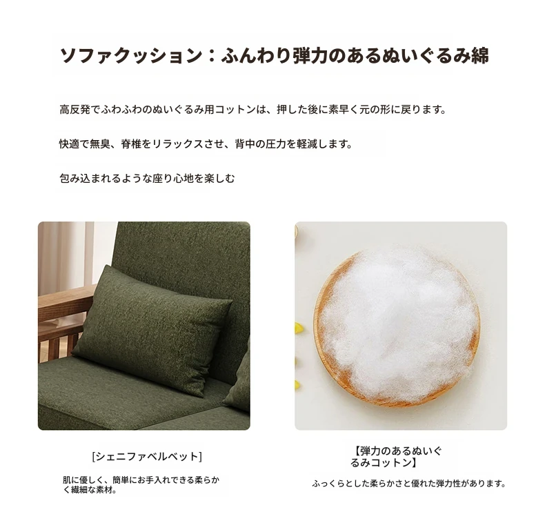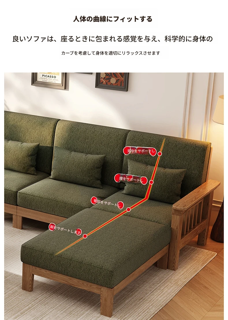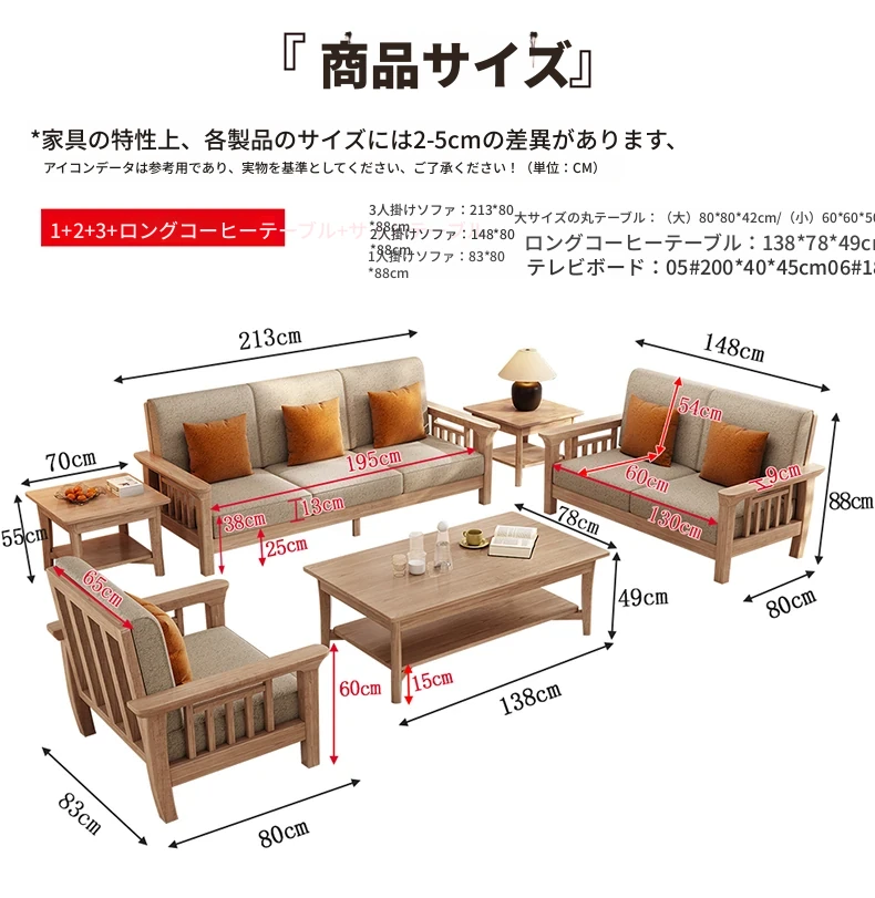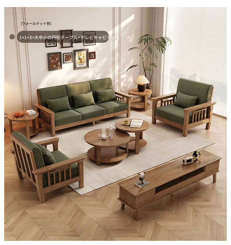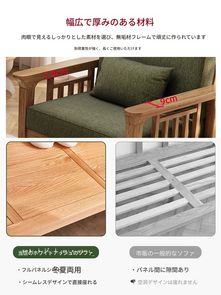 北欧スタイルのホワイトアッシュ無垢材ソファセット - 小型リビングに最適な3人掛け直置きソファ!ナチュラルな原木風のデザインで、民宿やおしゃれな空間にぴったり!快適さとスタイルを兼ね備えた家具で、心地よいひとときを。