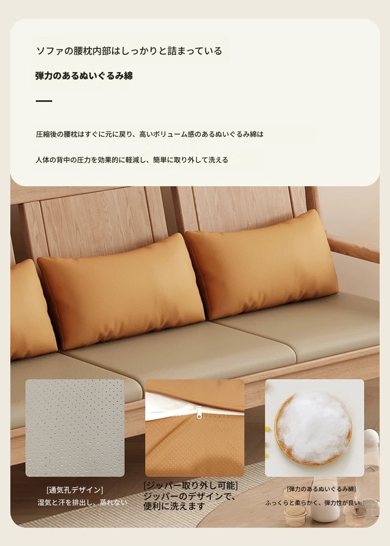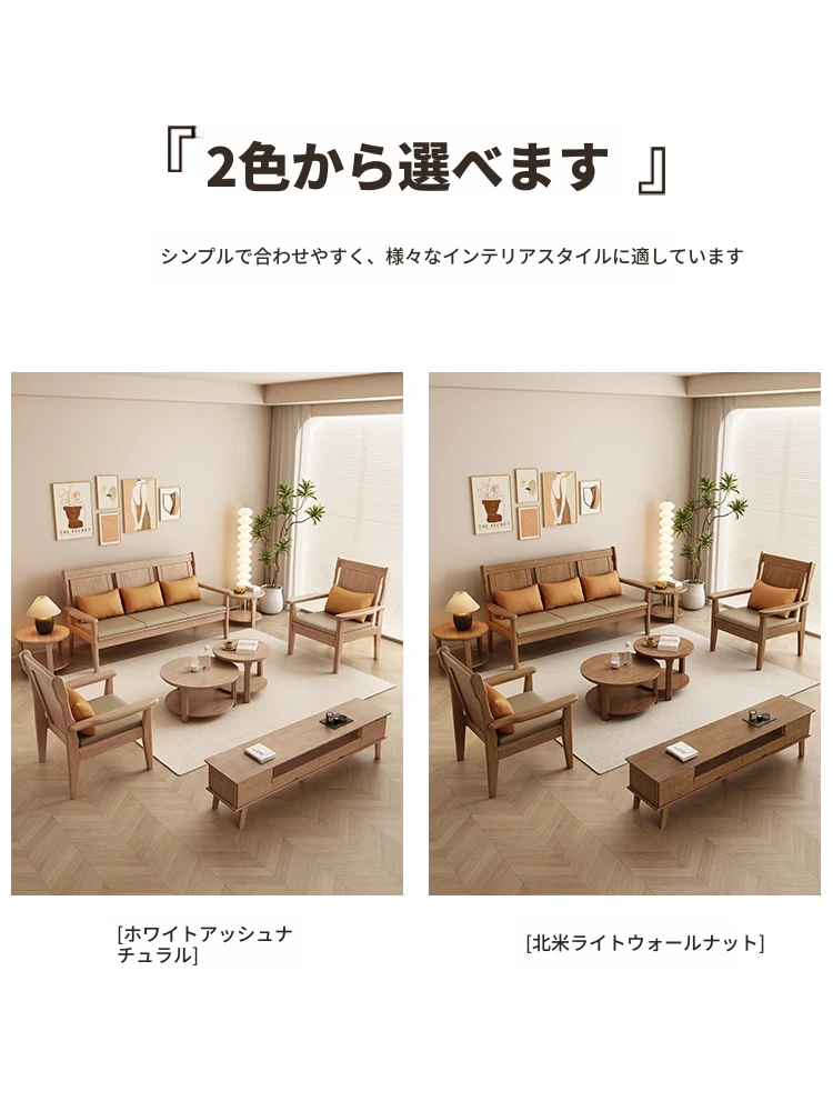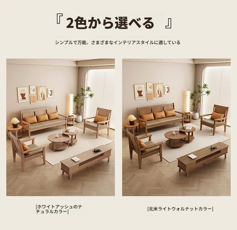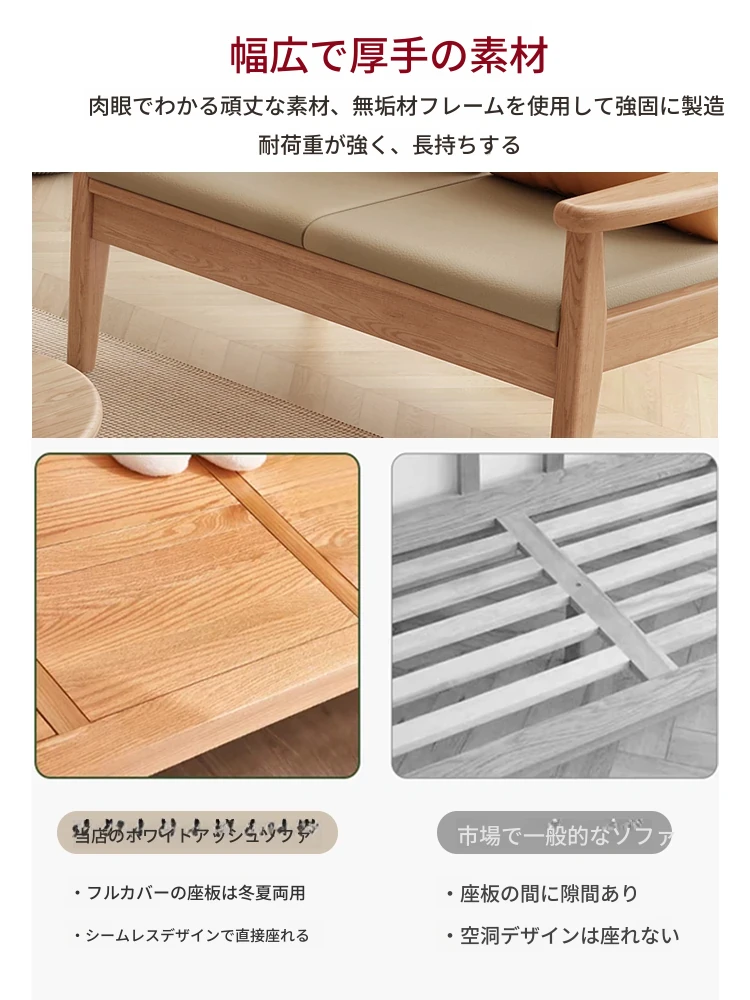 北欧風のホワイトアッシュ無垢材ソファセット - シンプルでモダンなデザイン、コンパクトなリビングや民宿に最適!自然の温もりを感じる本格的な無垢材ソファ。