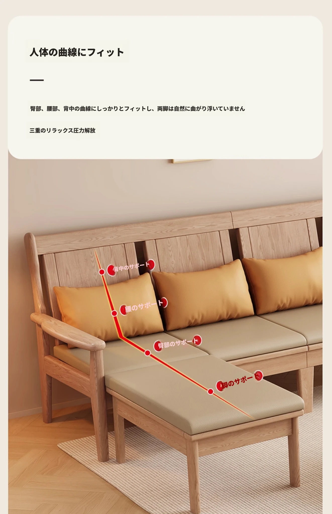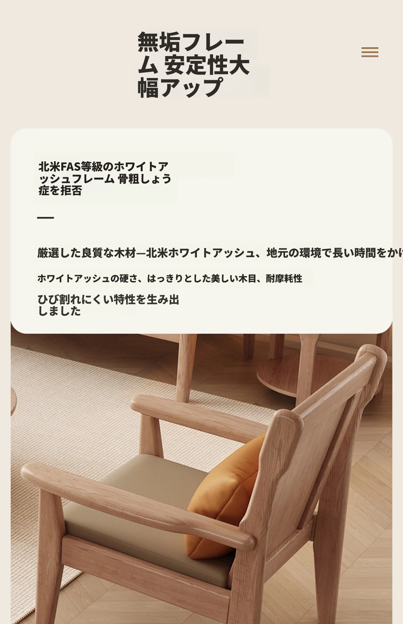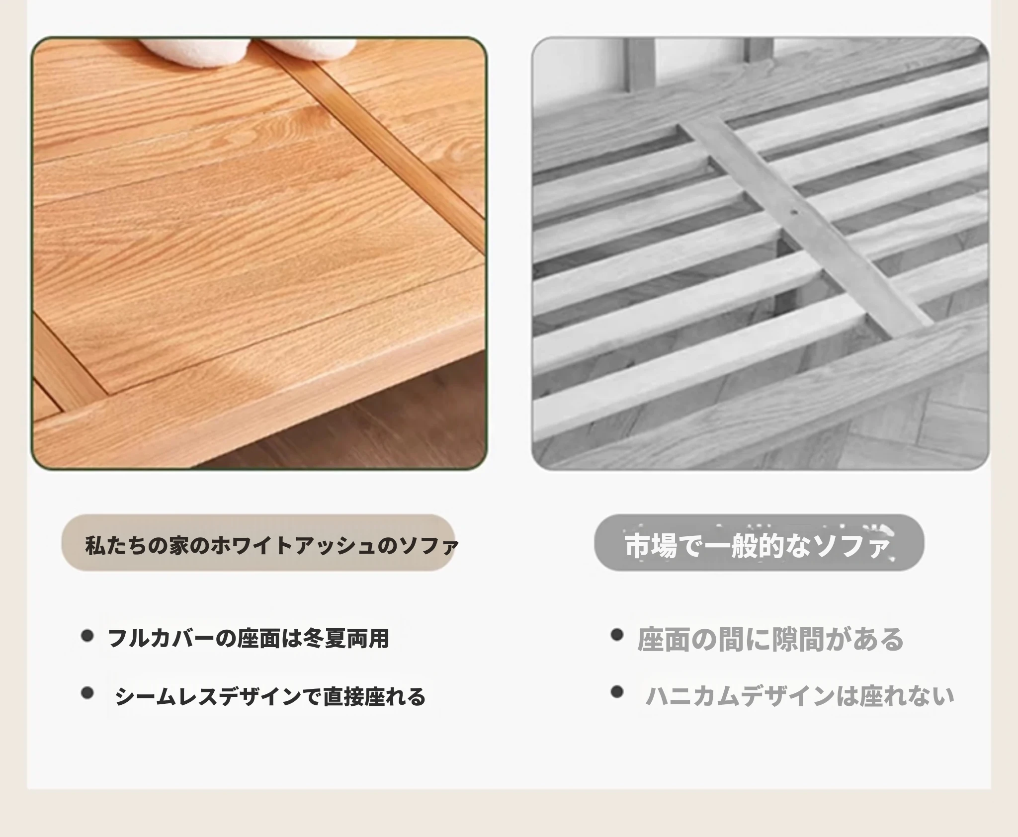 北欧風のホワイトアッシュ無垢材ソファセット - シンプルでモダンなデザイン、コンパクトなリビングや民宿に最適!自然の温もりを感じる本格的な無垢材ソファ。