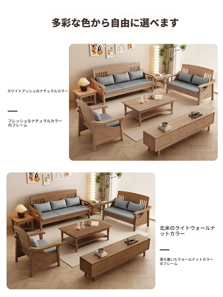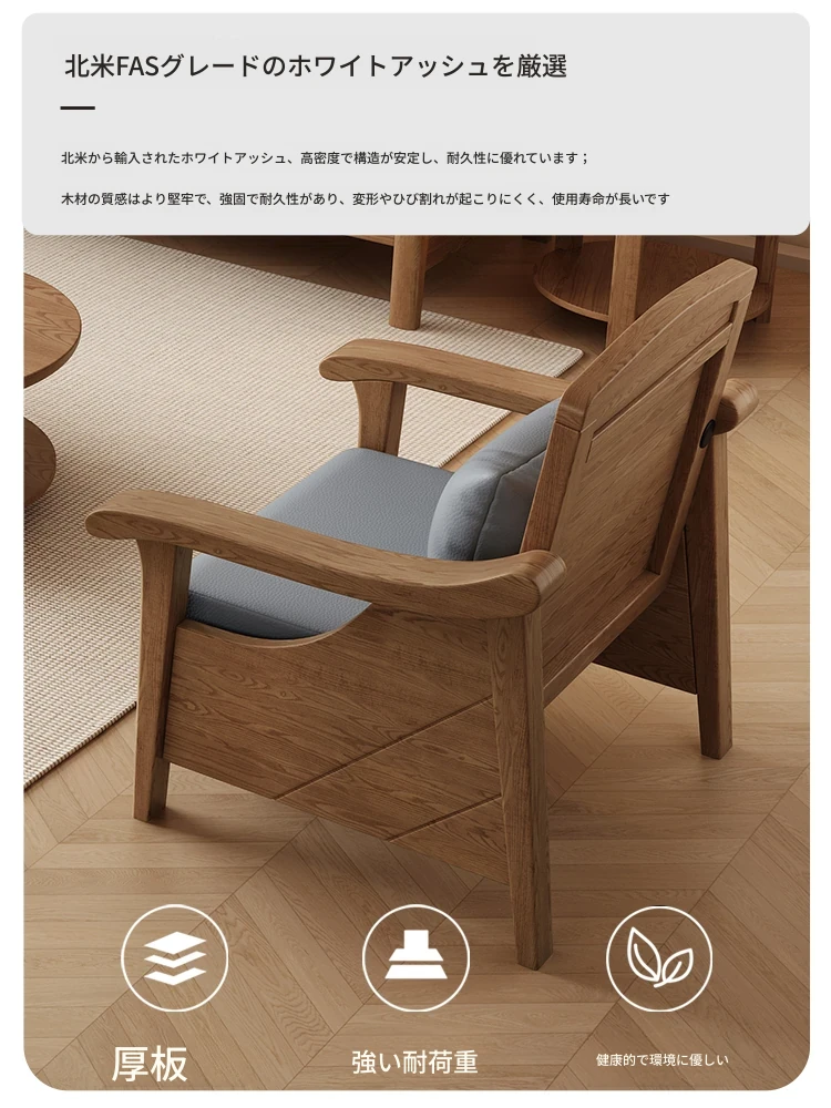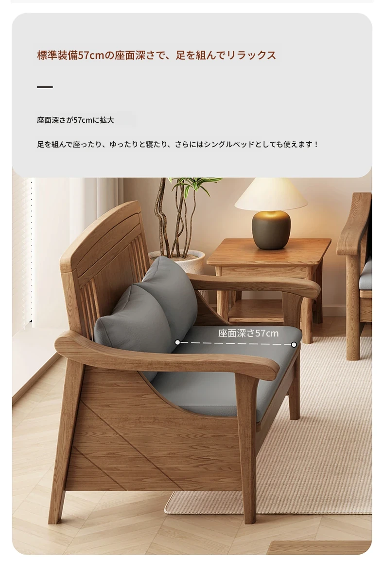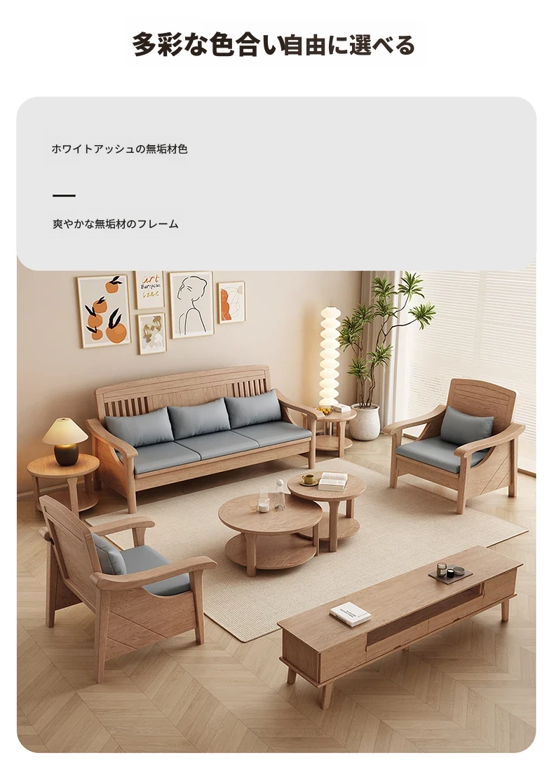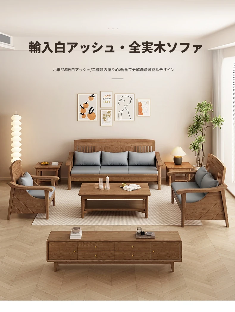 北欧スタイルのホワイトアッシュ無垢材ソファセット - コンパクトなリビングに最適!現代的でシンプルなデザイン、ナチュラルな温もりを感じる家具。あなたの民宿にぴったりのスタイリッシュな選択肢!