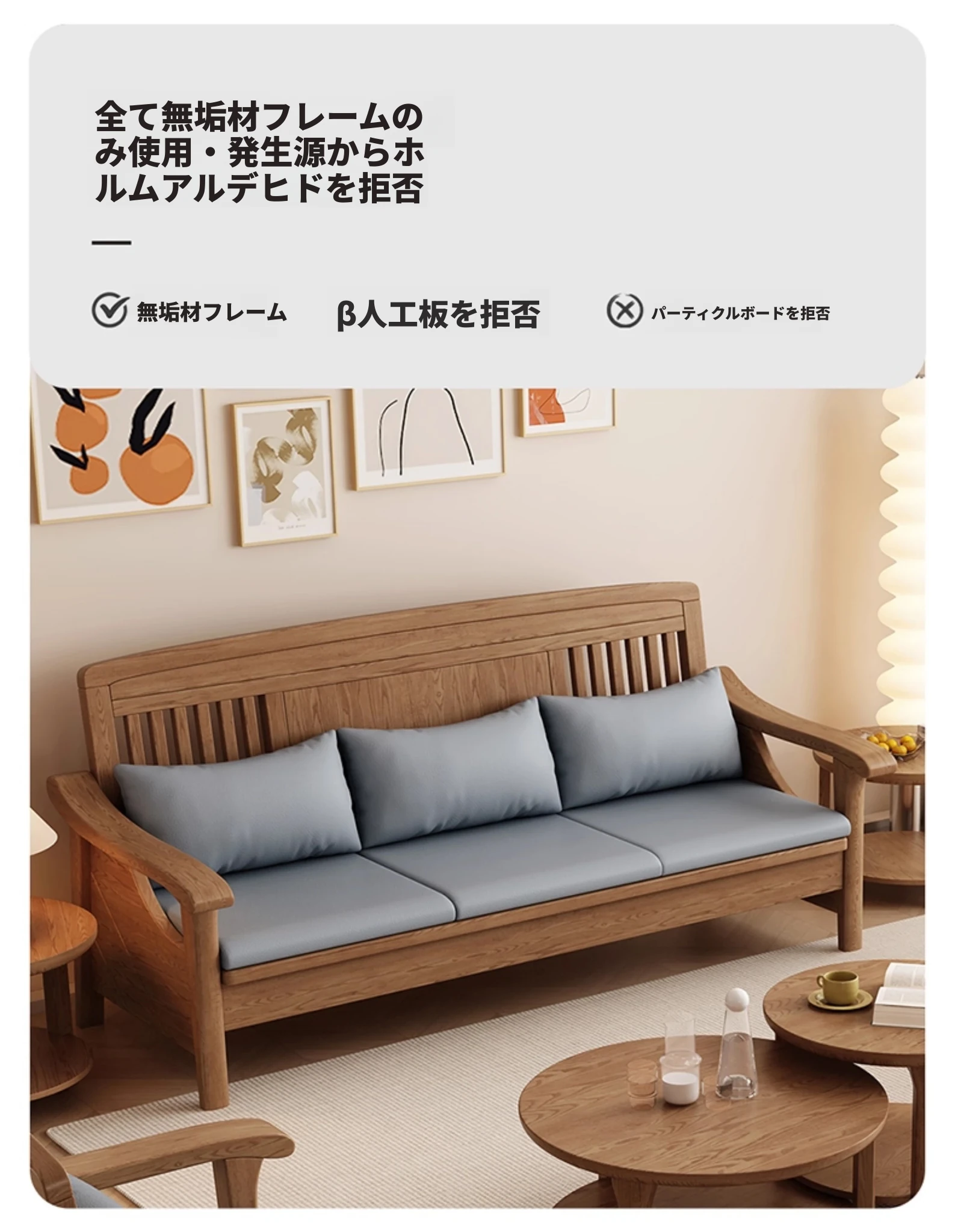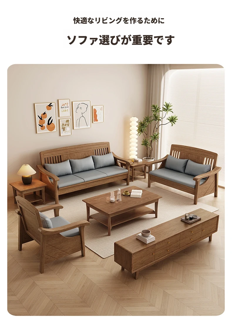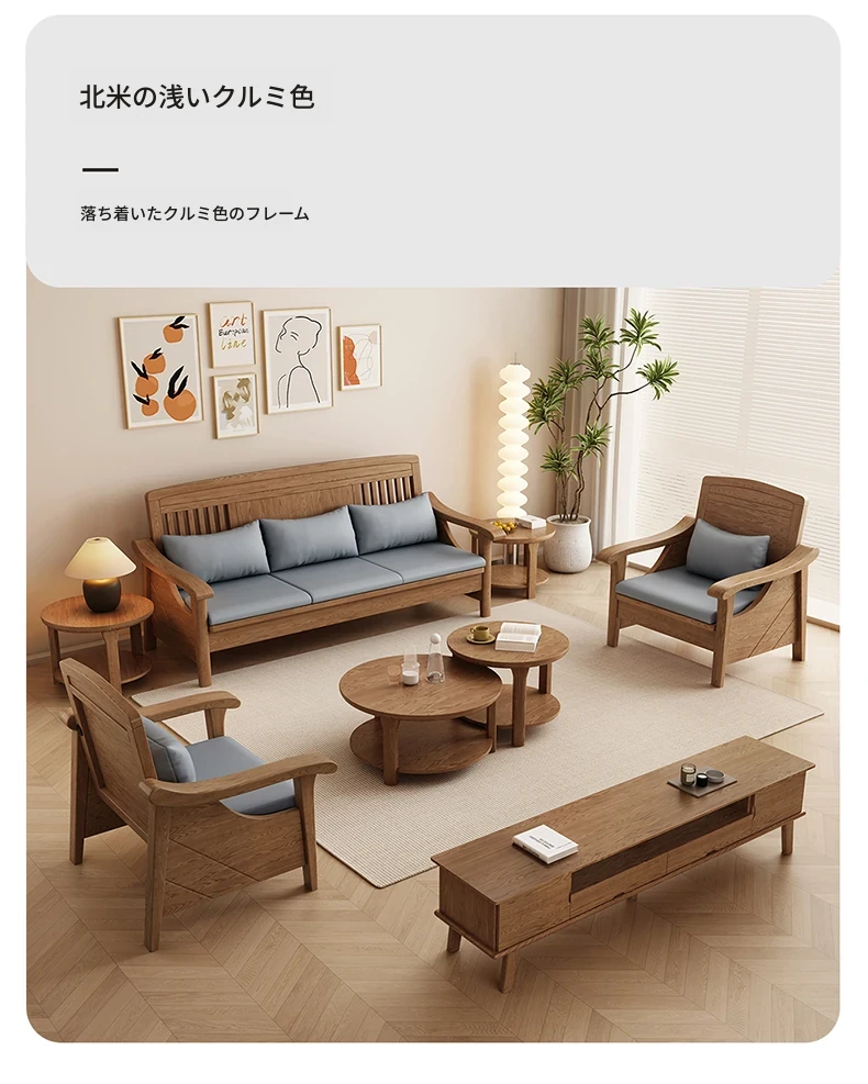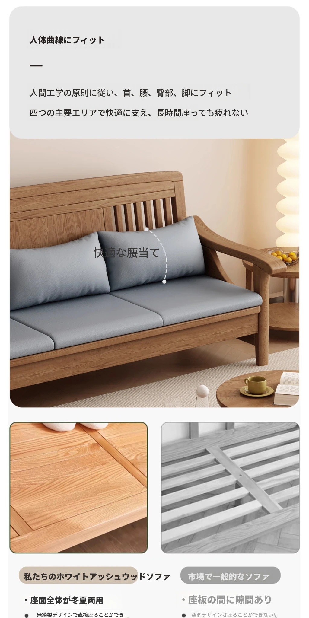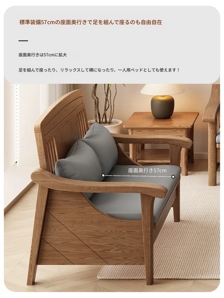 北欧スタイルのホワイトアッシュ無垢材ソファセット - コンパクトなリビングに最適!現代的でシンプルなデザイン、ナチュラルな温もりを感じる家具。あなたの民宿にぴったりのスタイリッシュな選択肢!