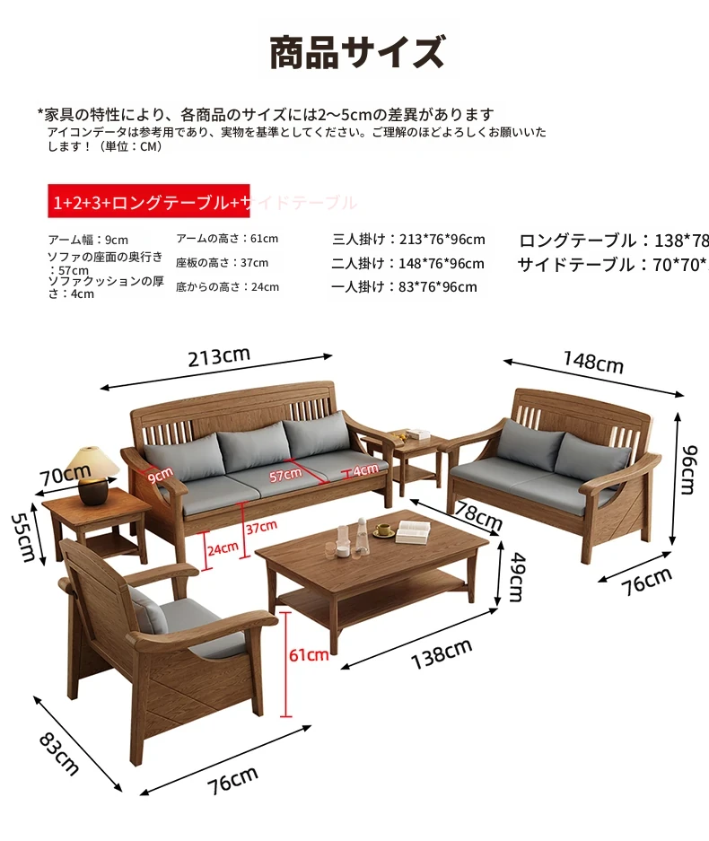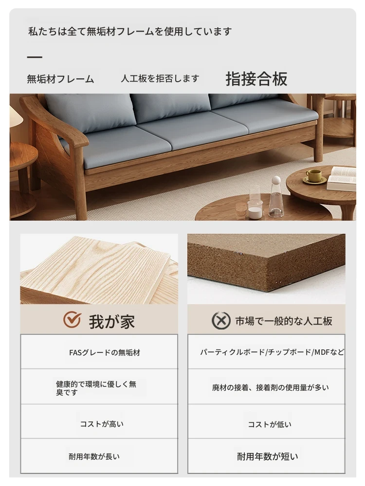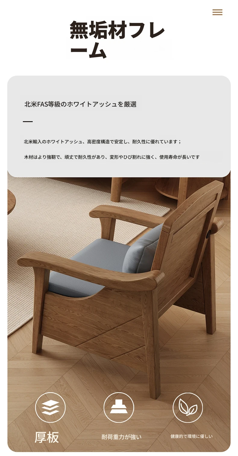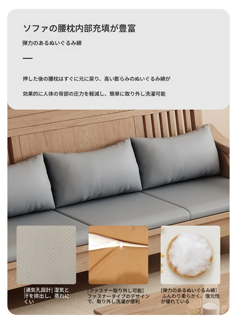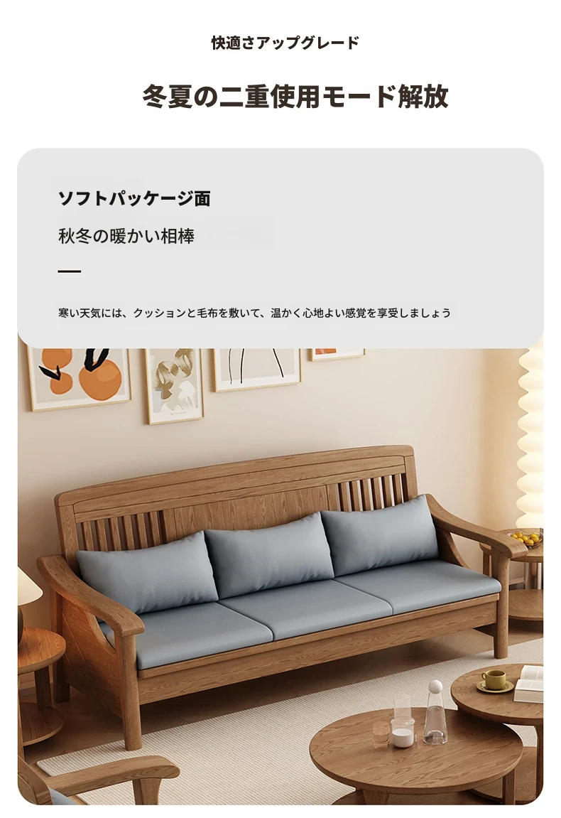 北欧スタイルのホワイトアッシュ無垢材ソファセット - コンパクトなリビングに最適!現代的でシンプルなデザイン、ナチュラルな温もりを感じる家具。あなたの民宿にぴったりのスタイリッシュな選択肢!