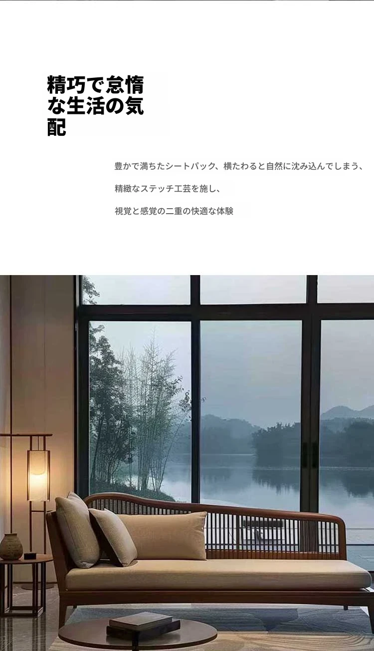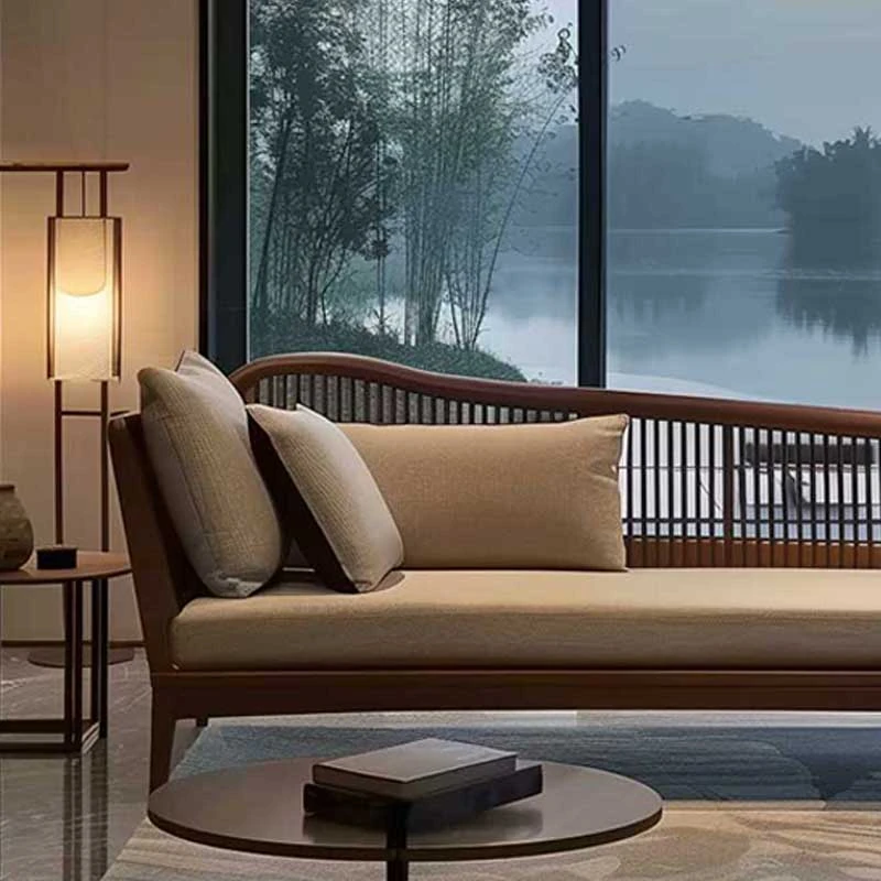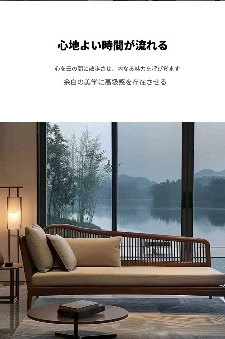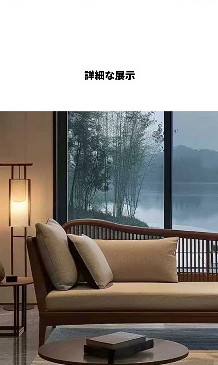 北米産ブラックウォールナット&ホワイトアッシュの高級ローベッド|リビング・ホテル・民宿に最適な新中式禅スタイルソファ|快適なひとときを提供します!