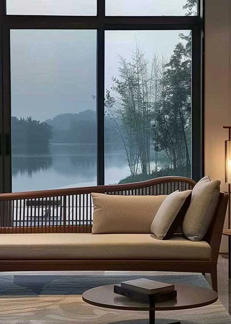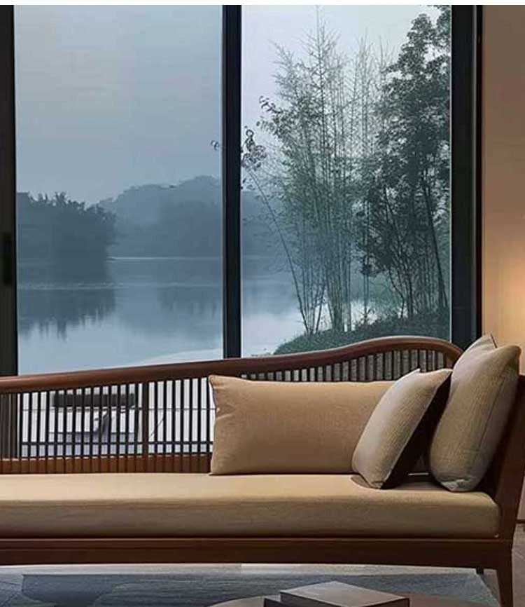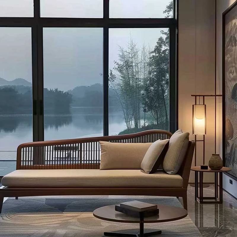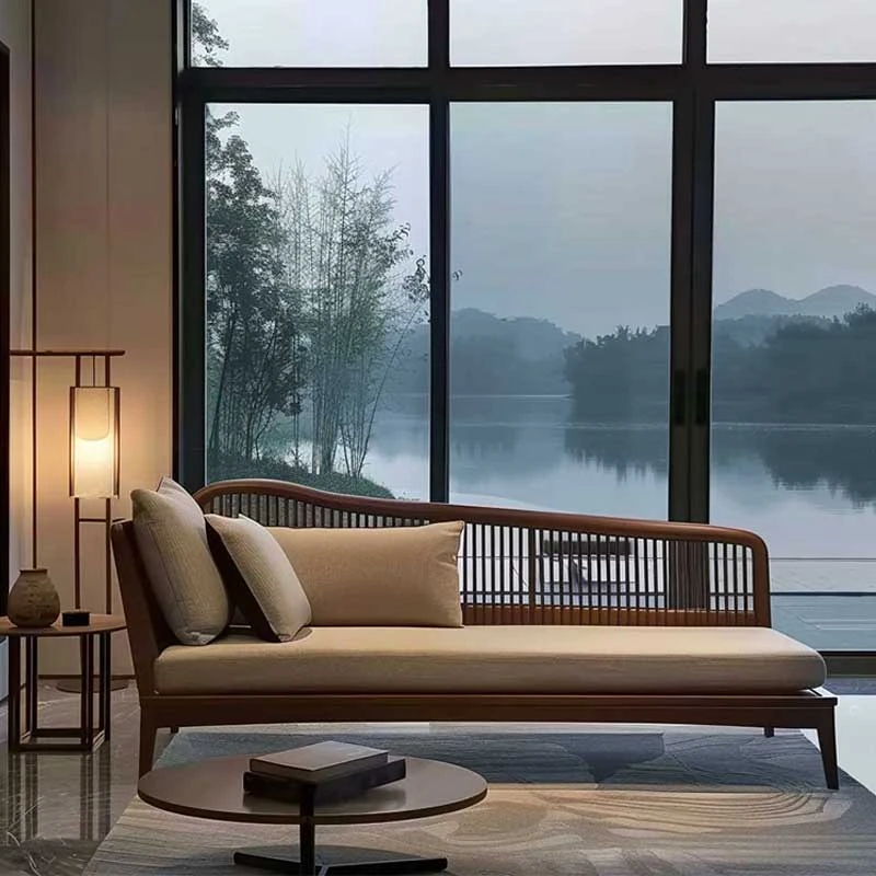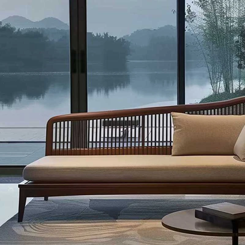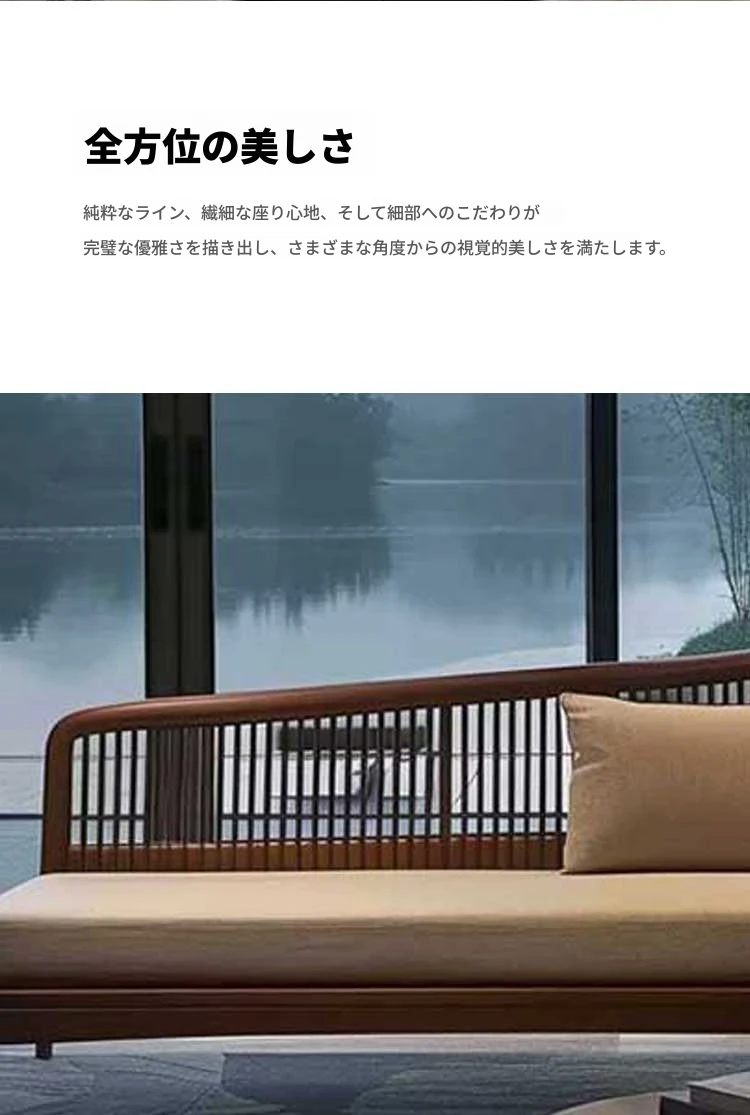 北米産ブラックウォールナット&ホワイトアッシュの高級ローベッド|リビング・ホテル・民宿に最適な新中式禅スタイルソファ|快適なひとときを提供します!