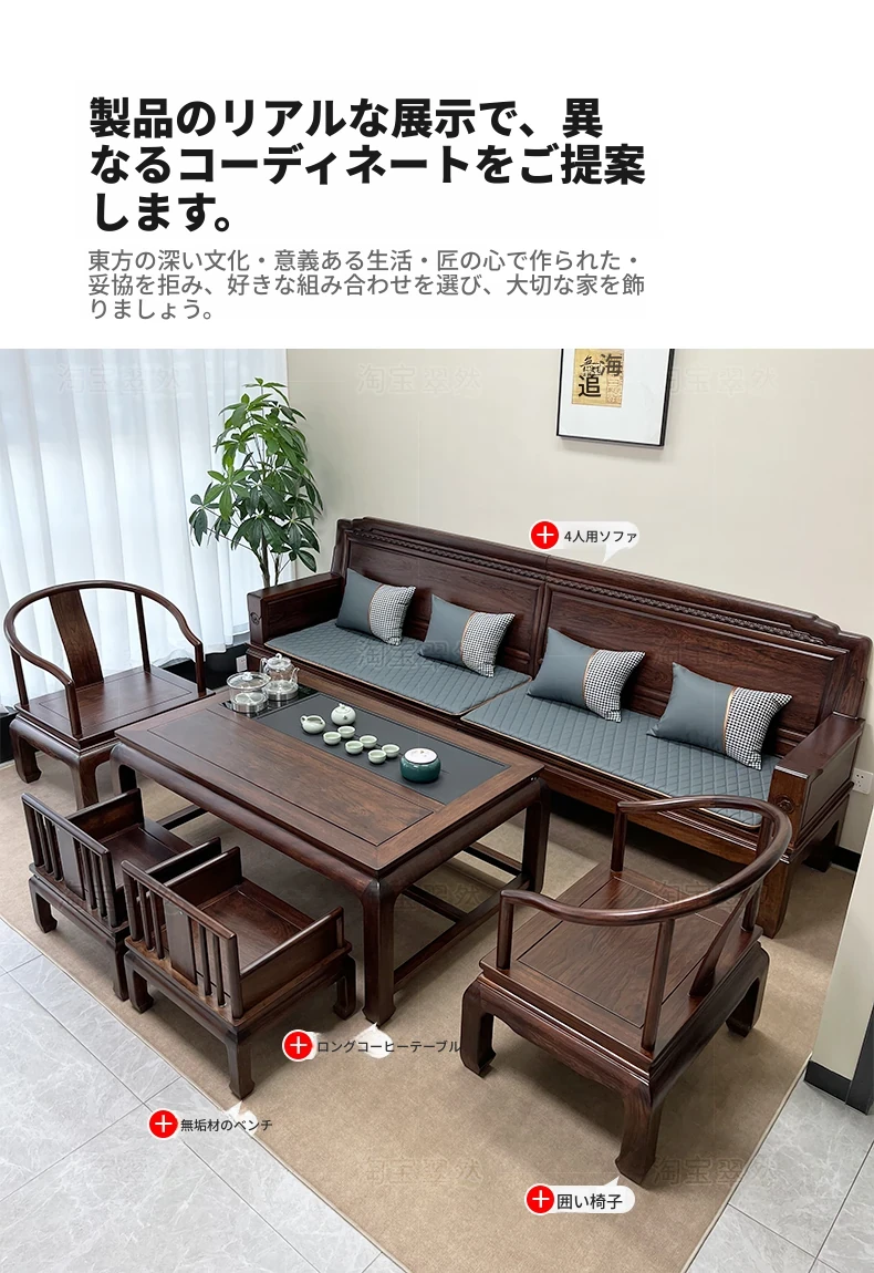 高級アフリカンローズウッド製の榫卯構造フルソリッドソファ—おしゃれなリビングに最適な小型フェイスタイプ、アンティーク風の新中式家具で、あなたの空間を特別に演出します!