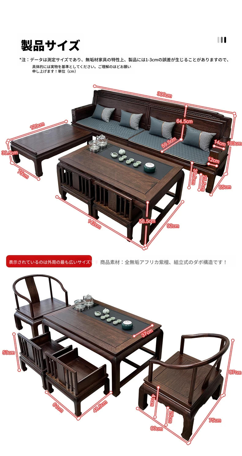 4人用ソファ+デイベッド+コーヒーテーブル【茶盤とティーポット含まない】