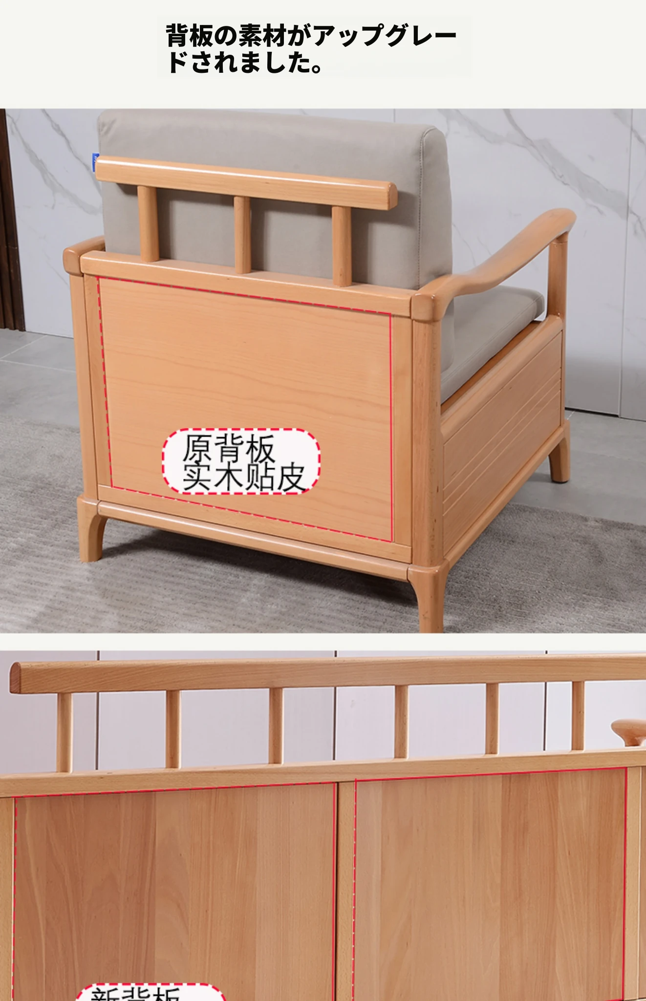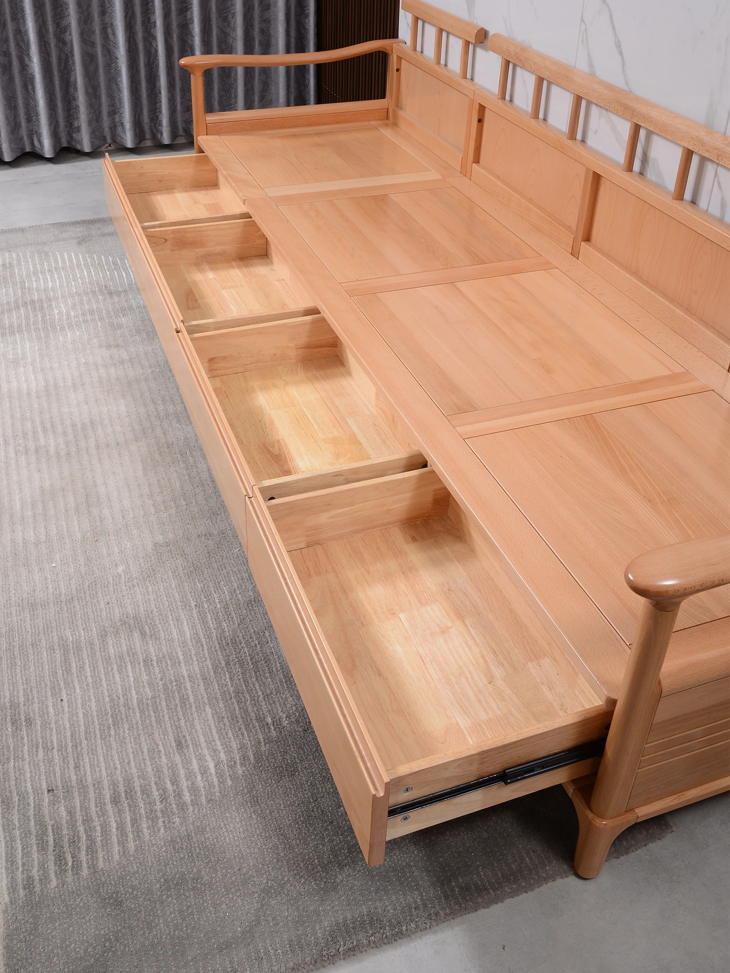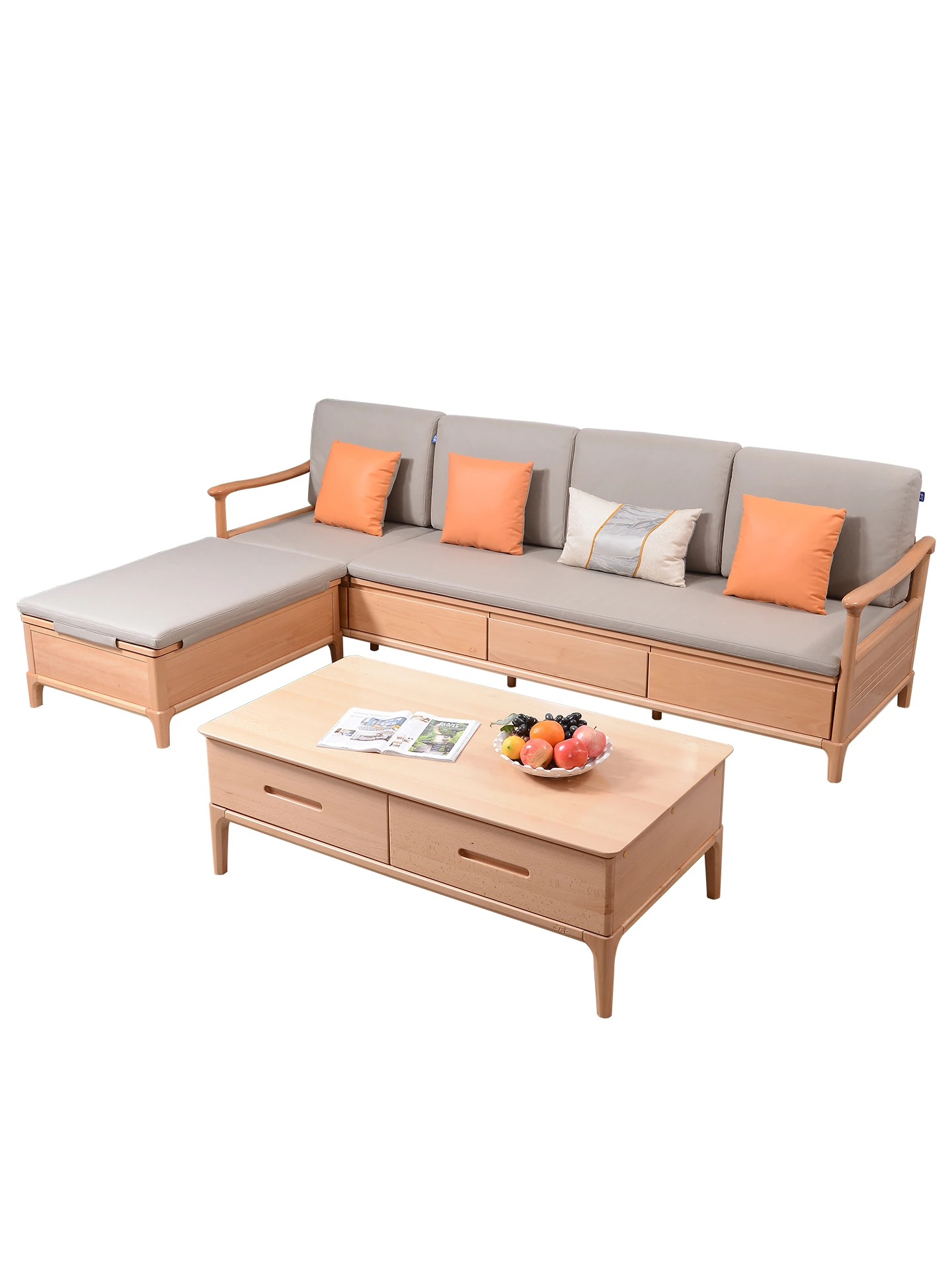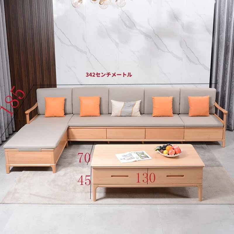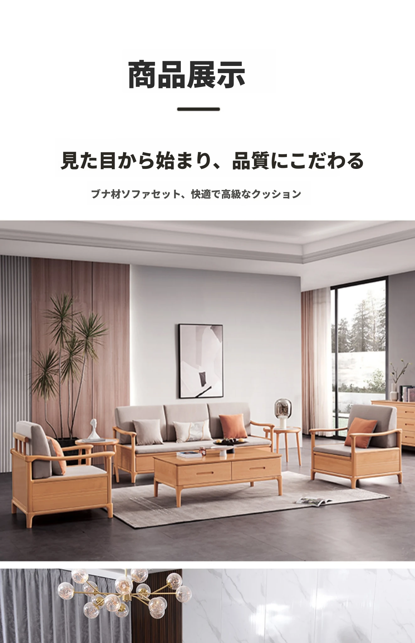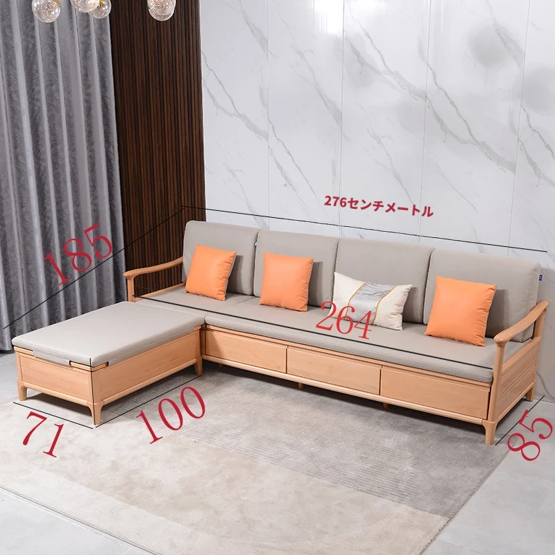 尚木 全実木ビーチウッドソファ 引き出し収納付き 新中式デザイン リビングルームに最適なナチュラルファブリックソファ