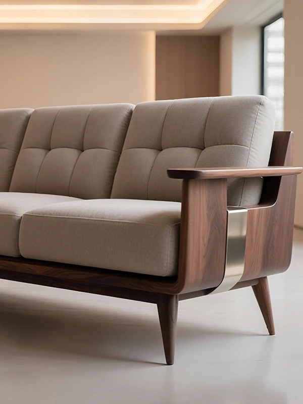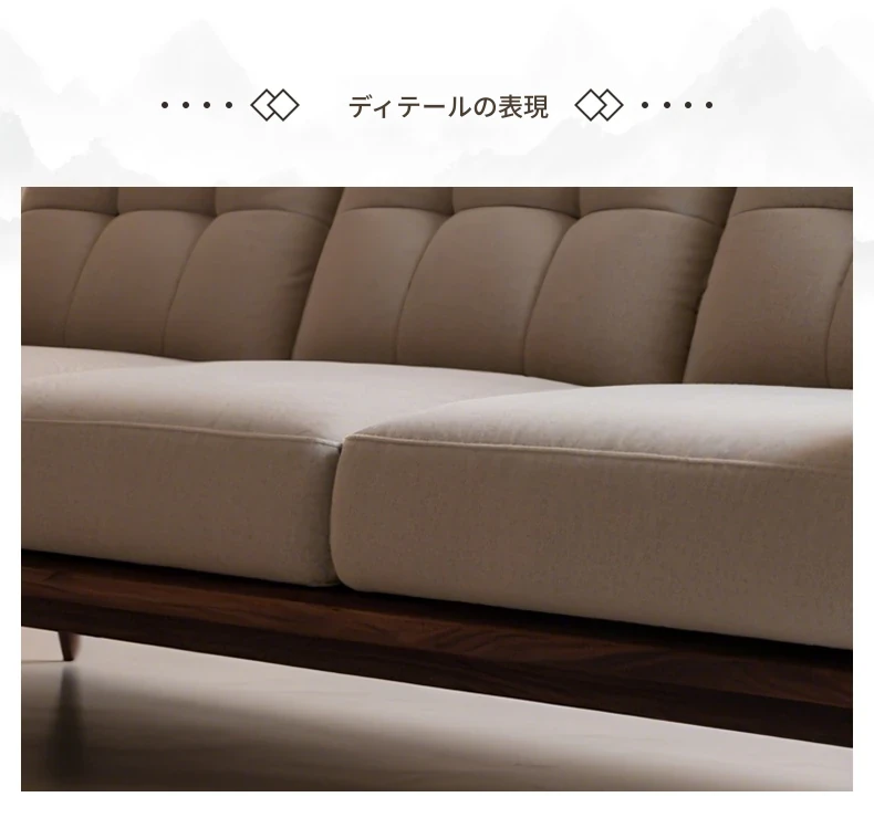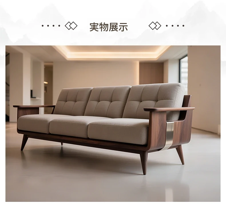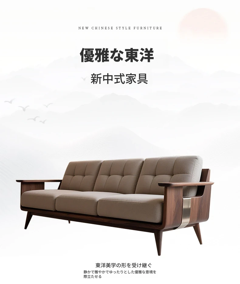 宋風美学 北米産 ブラックウォールナット 使用のラグジュアリーな無垢材ソファ リビングルーム向け ファブリック&本革コンビソファ 高級感あふれるデザインで、快適な空間を演出!