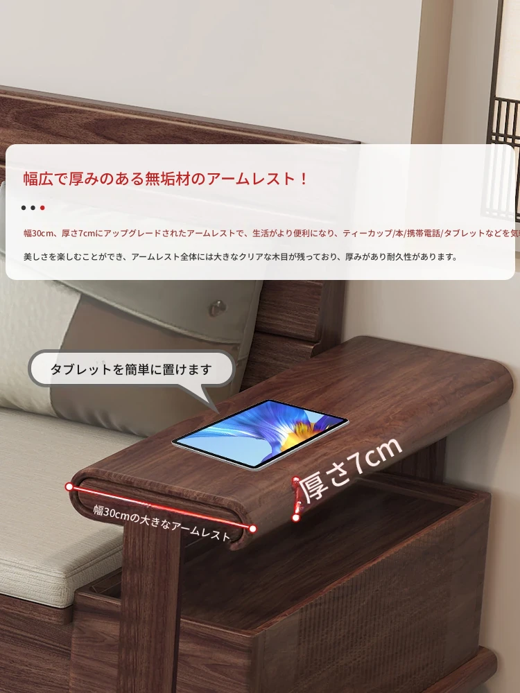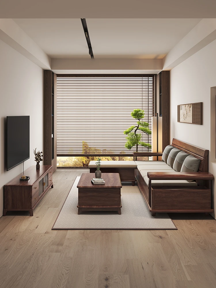 高級ブラックウォールナット無垢材ソファセット|リビングにぴったりなデザイン!収納付き、冬夏兼用の新中式家具で小さな部屋にも最適。心地よい空間を演出します!