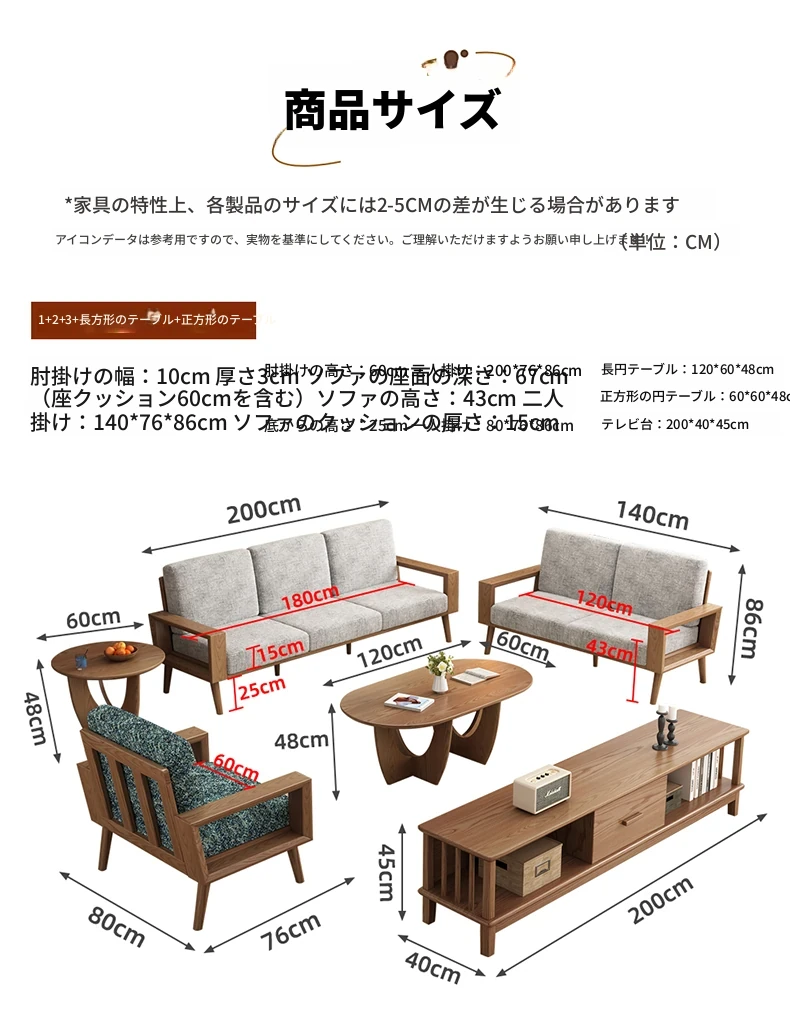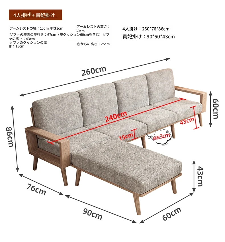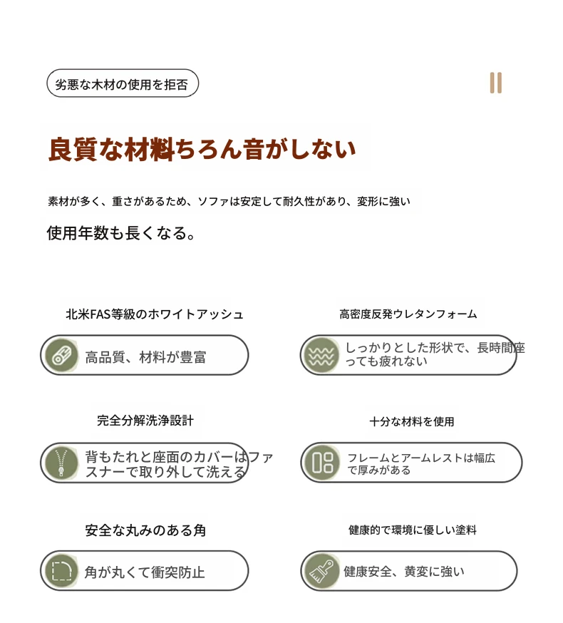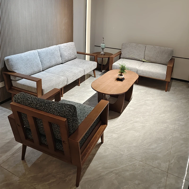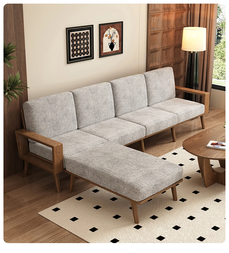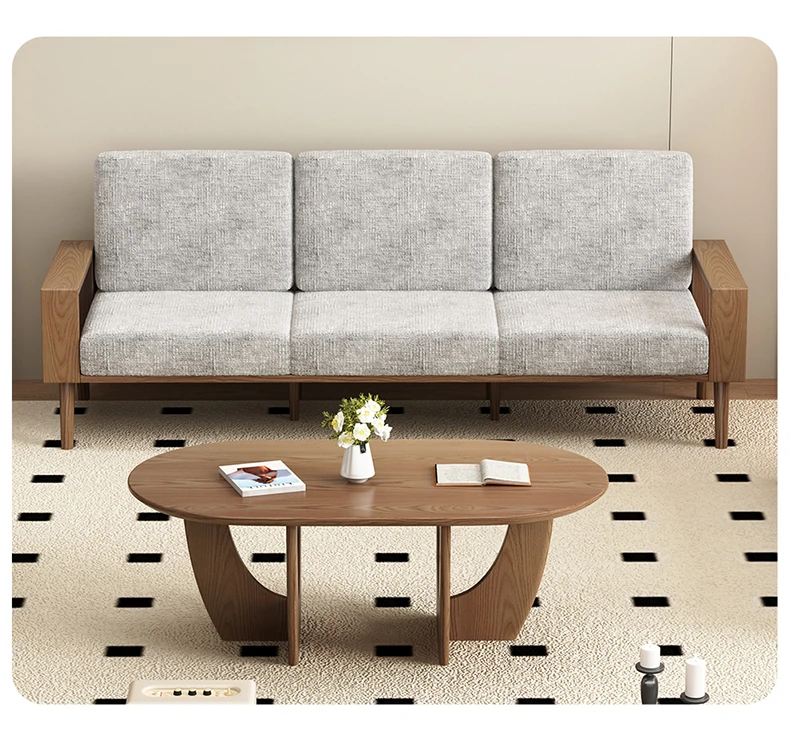 全実木製ソファ三人用ホワイトアッシュ材質 シンプルなリビング用1+2+3デザイン 厚手クッション付き 2025年新作登場!快適さとスタイルを兼ね備えた理想の空間を演出します。