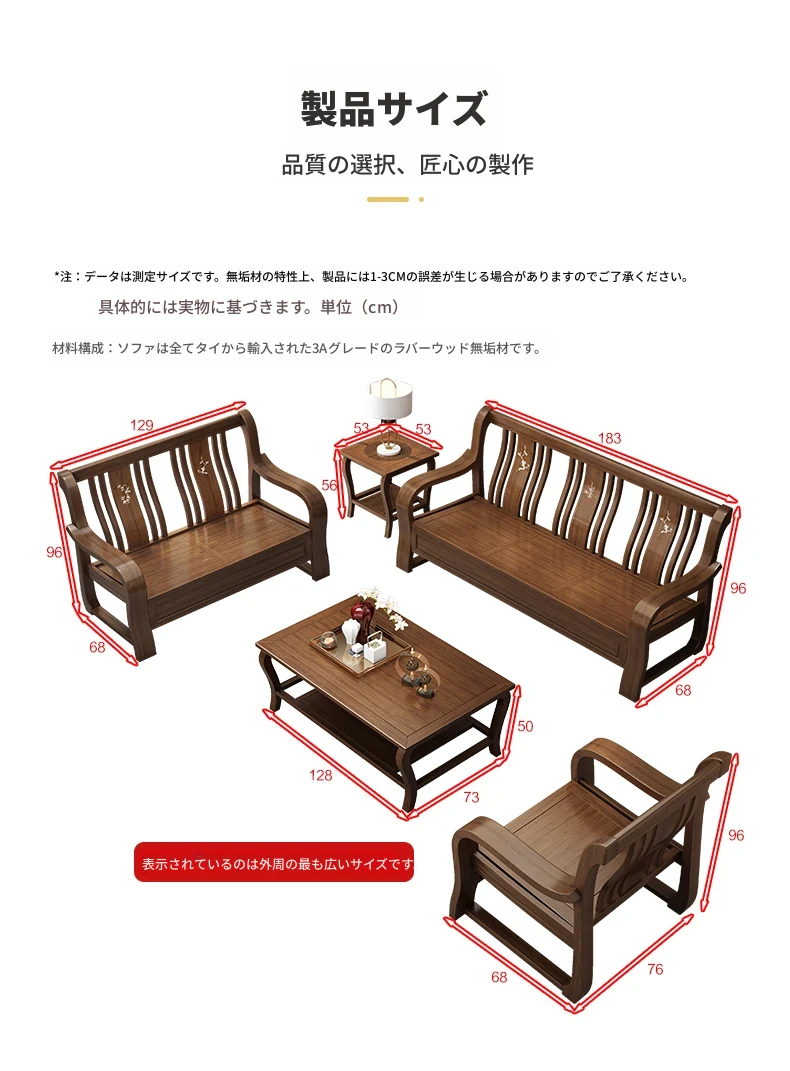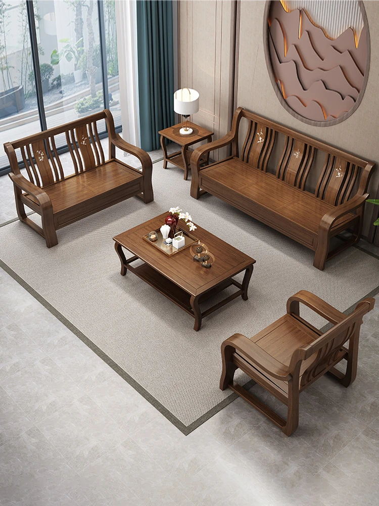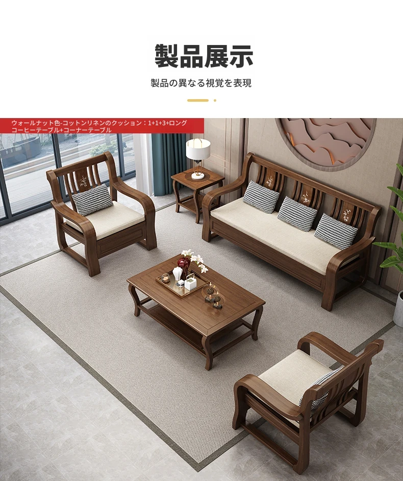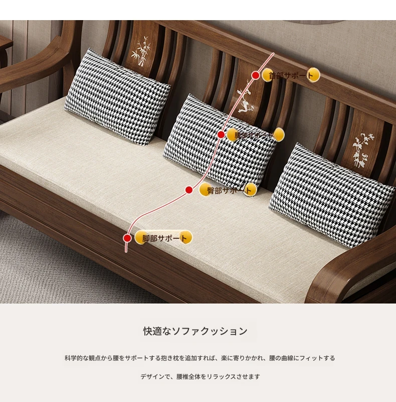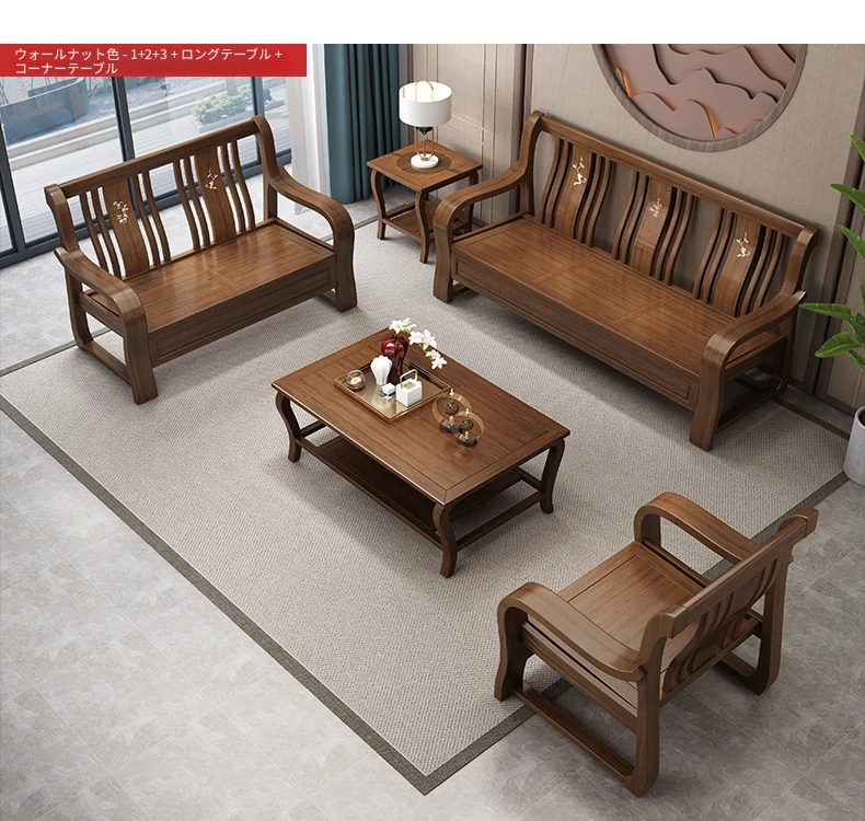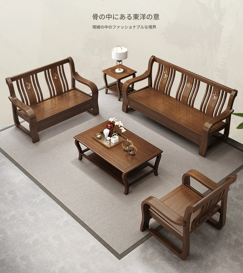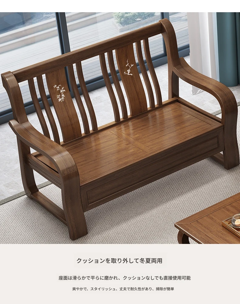 全実木製ソファセット 中式リビング向け 小型住宅に最適 三人掛け 冬夏兼用 水性塗料使用 環境に優しい家具で心地よい空間を演出!
