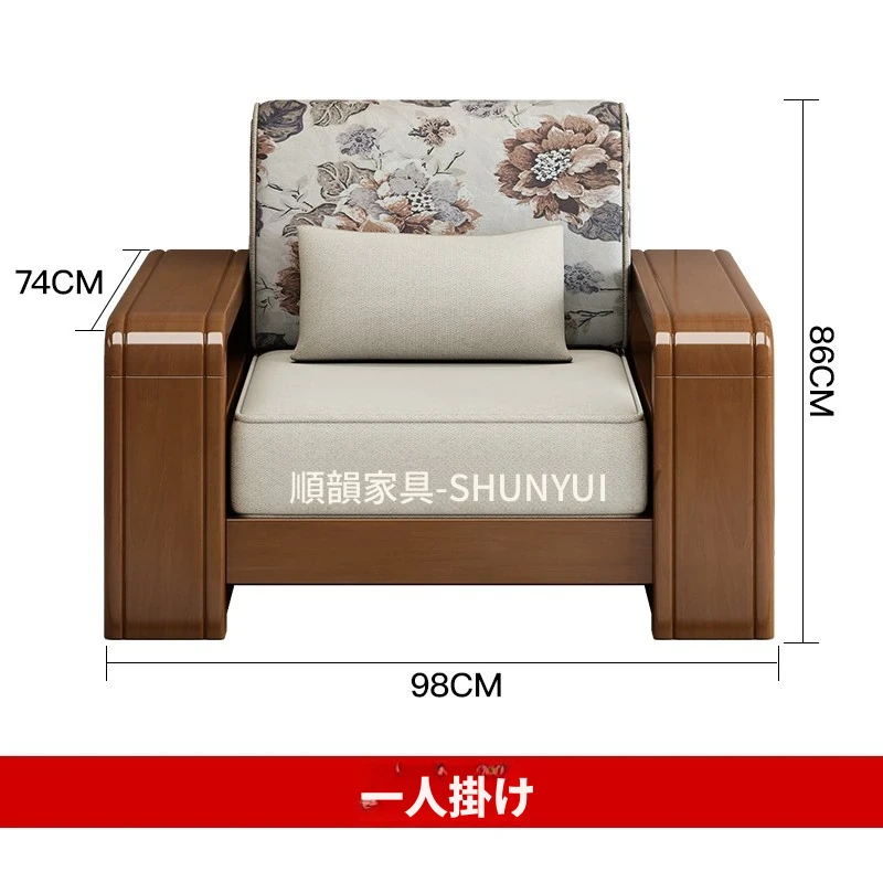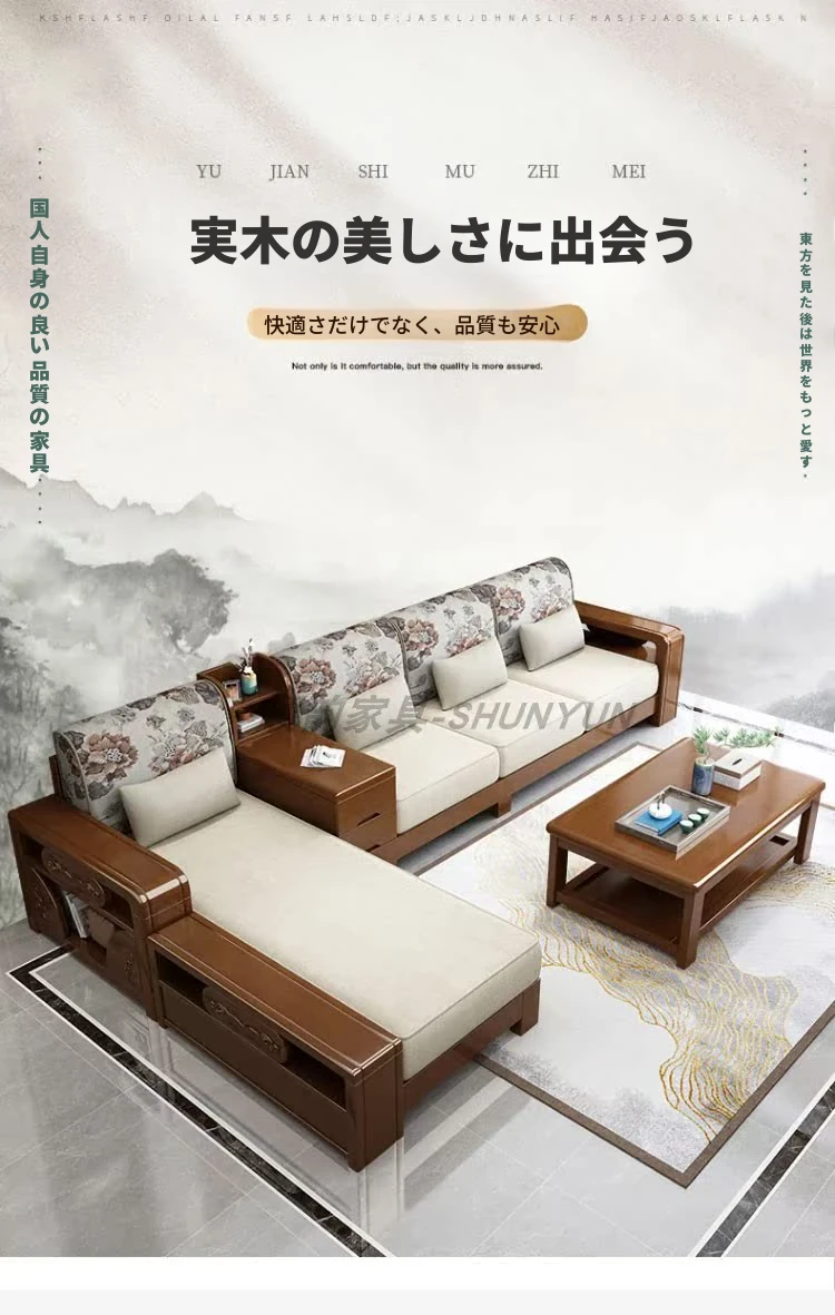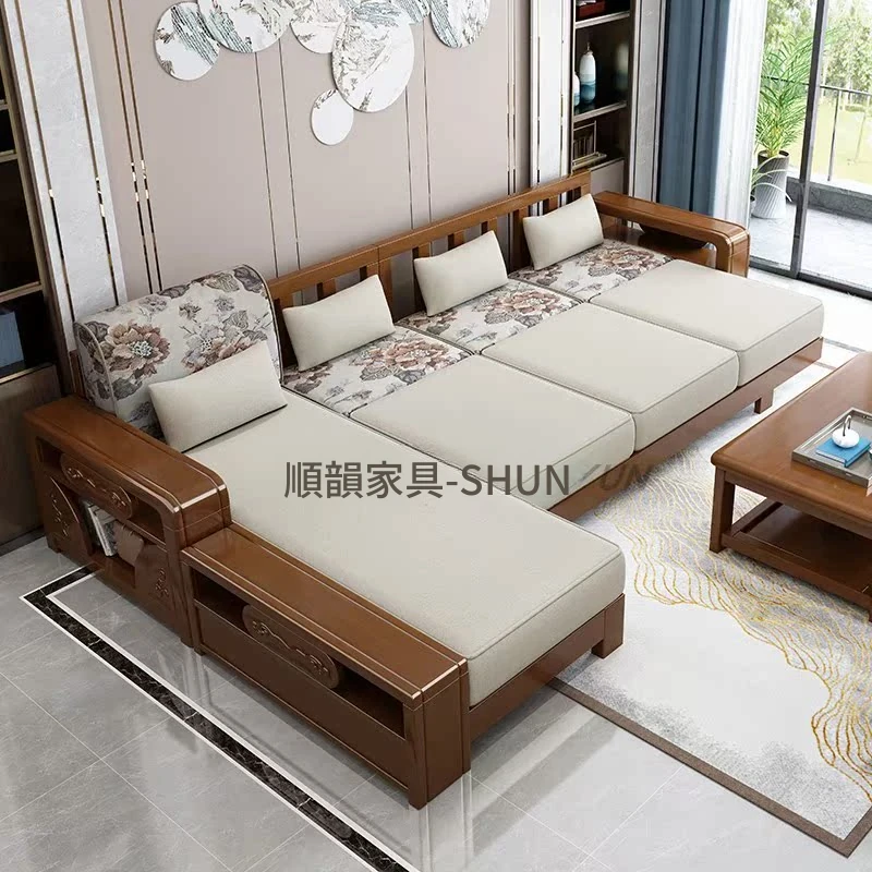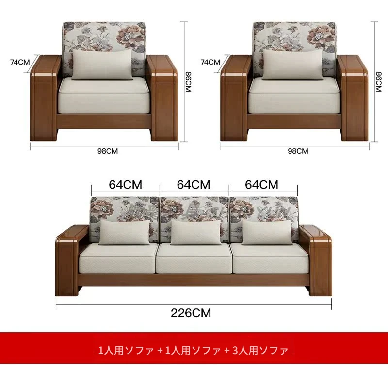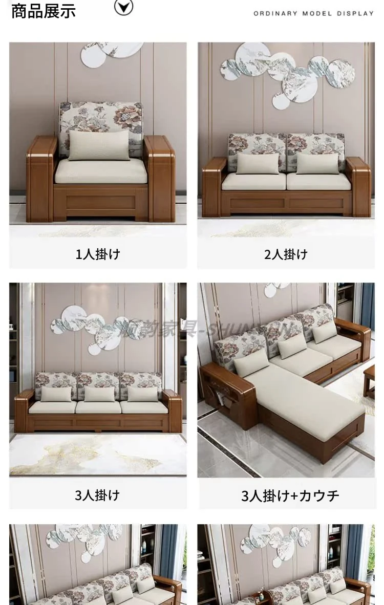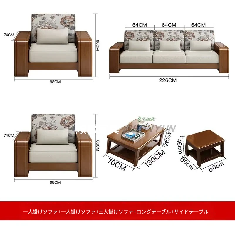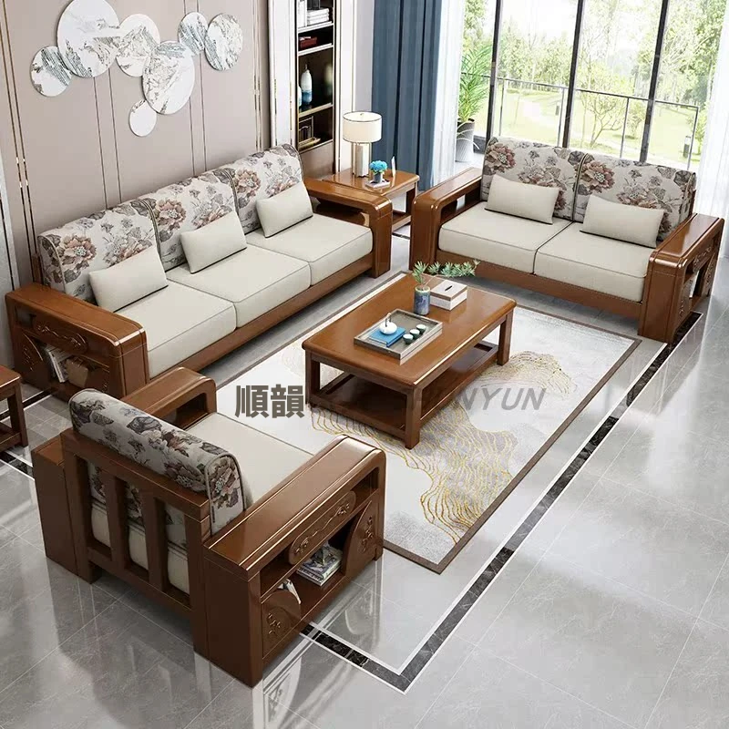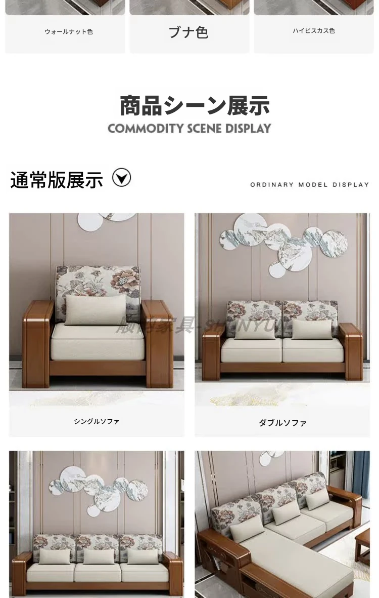 全実木のソファセット - 新中式デザインのシンプルでモダンな家具、小型住宅にもぴったりの天然木製ソファで、居心地の良いリビングを実現!