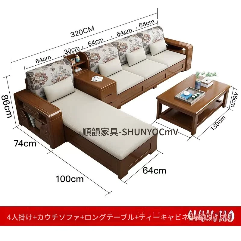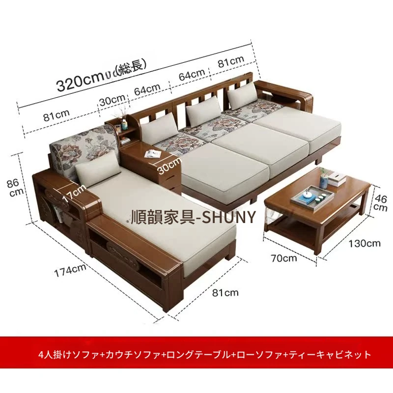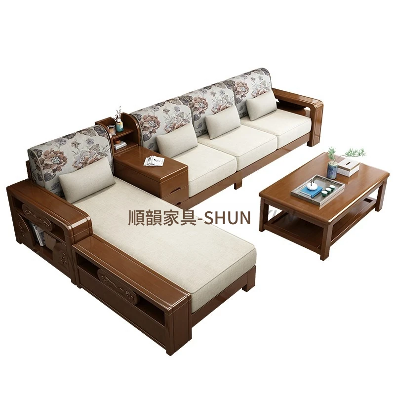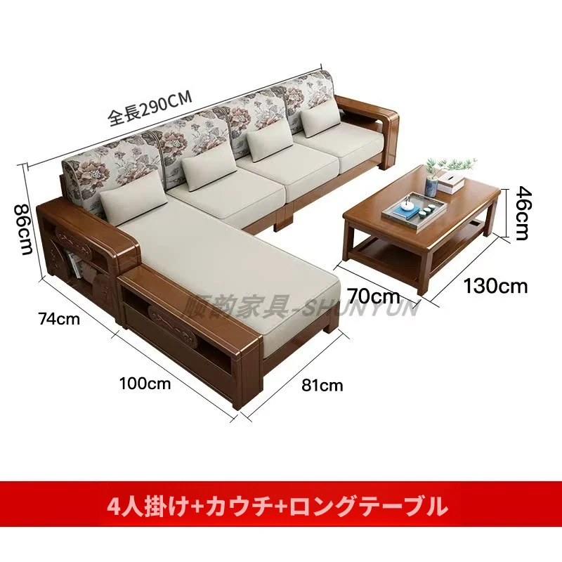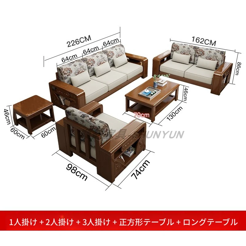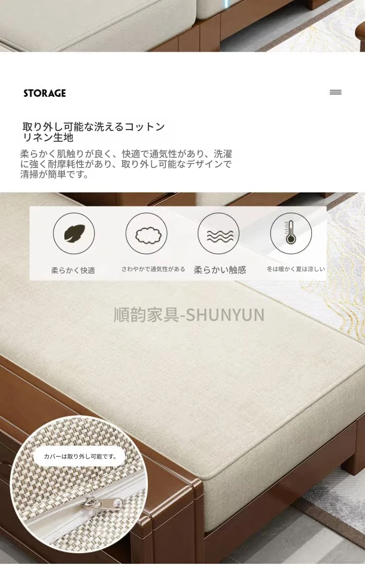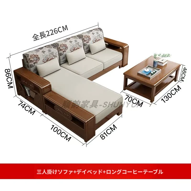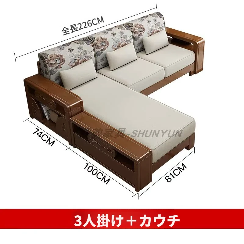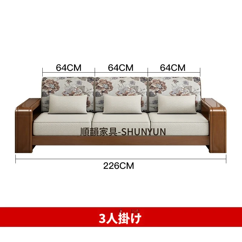 全実木のソファセット - 新中式デザインのシンプルでモダンな家具、小型住宅にもぴったりの天然木製ソファで、居心地の良いリビングを実現!