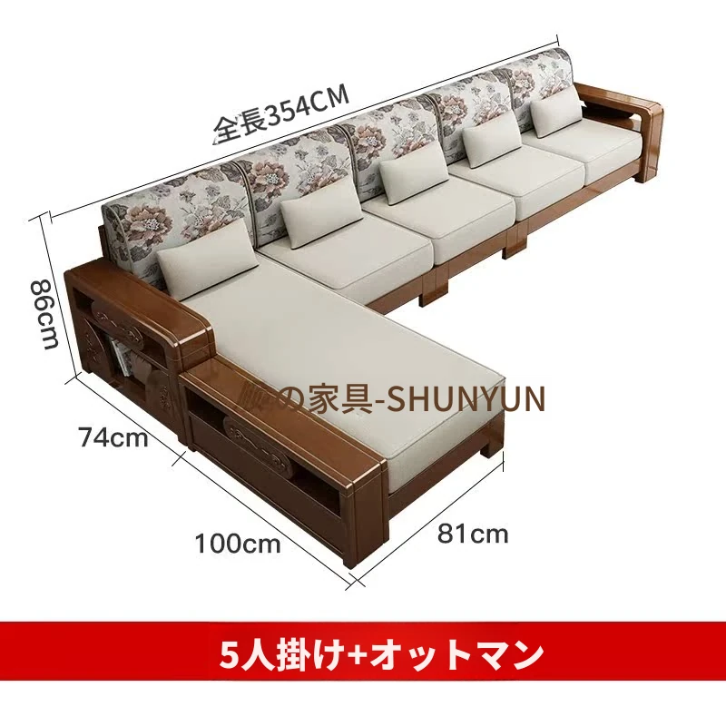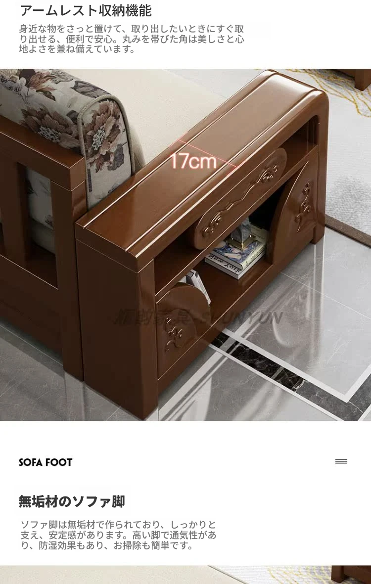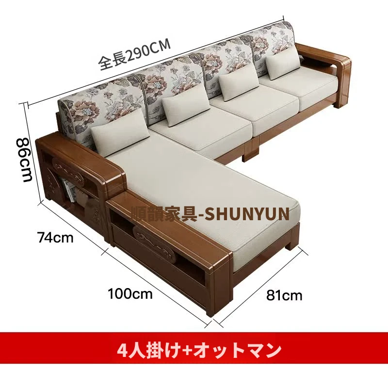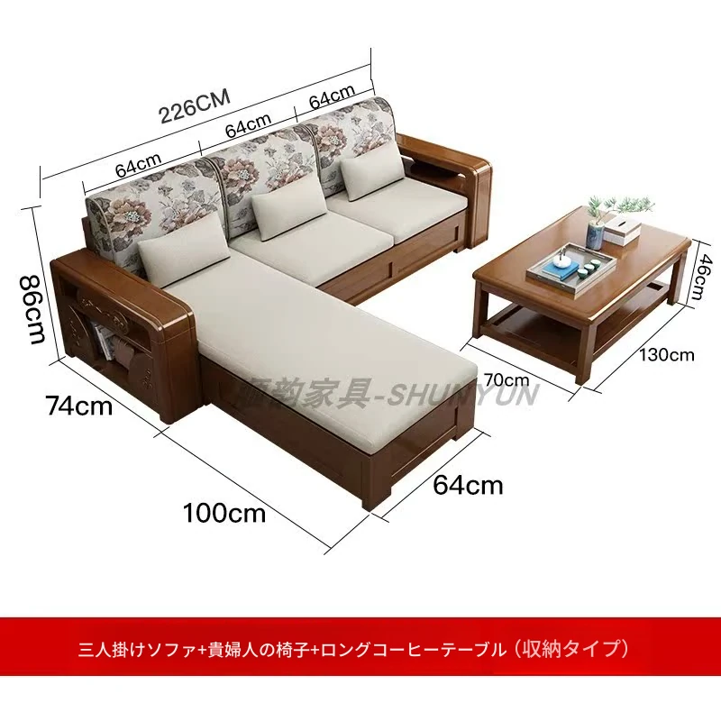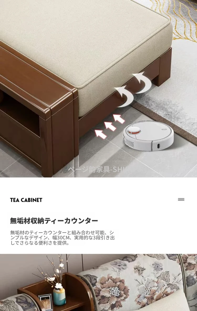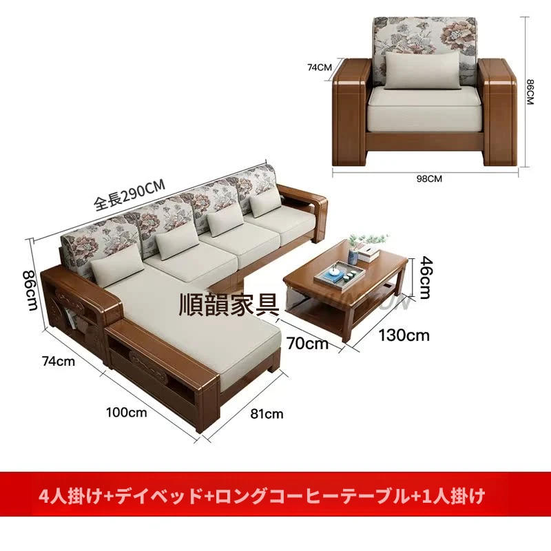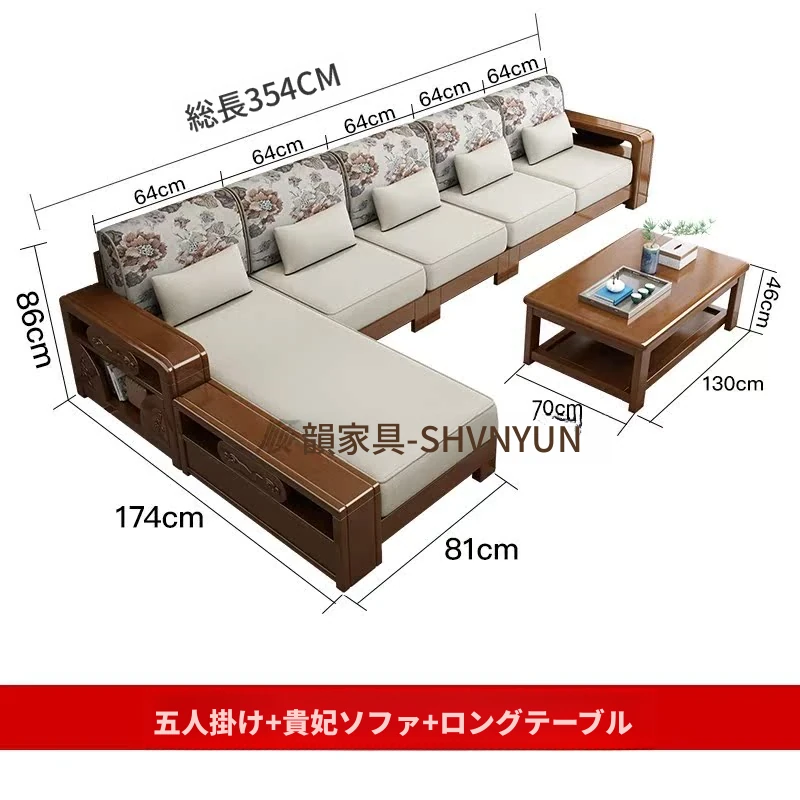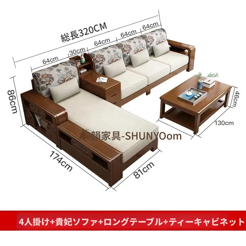 全実木のソファセット - 新中式デザインのシンプルでモダンな家具、小型住宅にもぴったりの天然木製ソファで、居心地の良いリビングを実現!