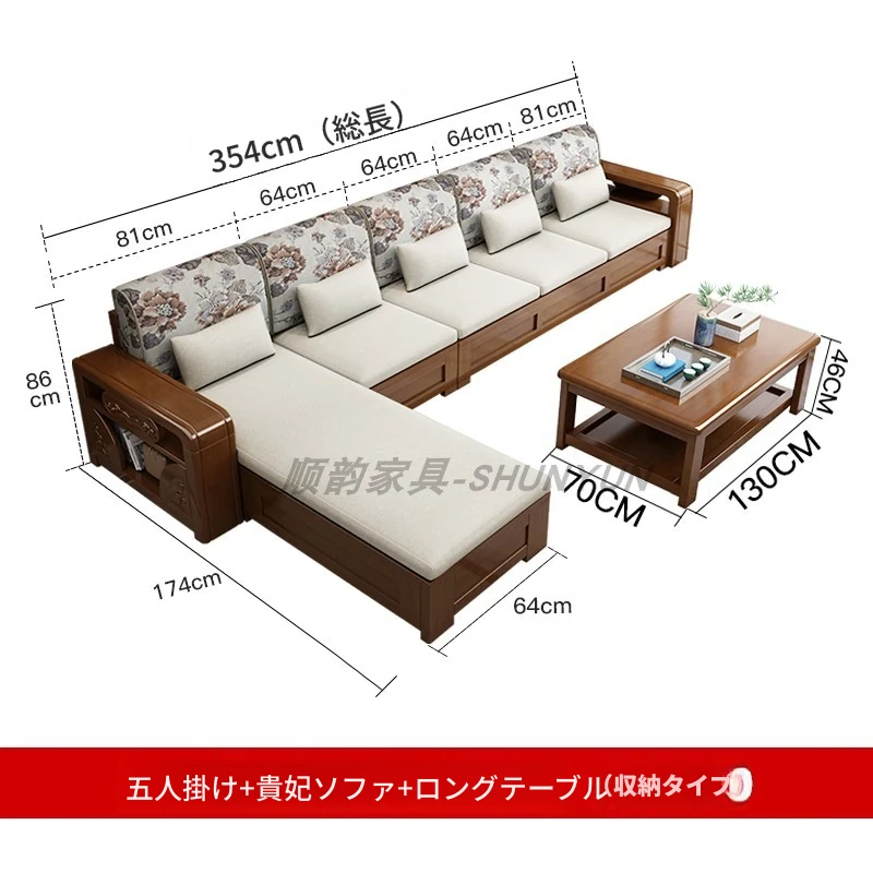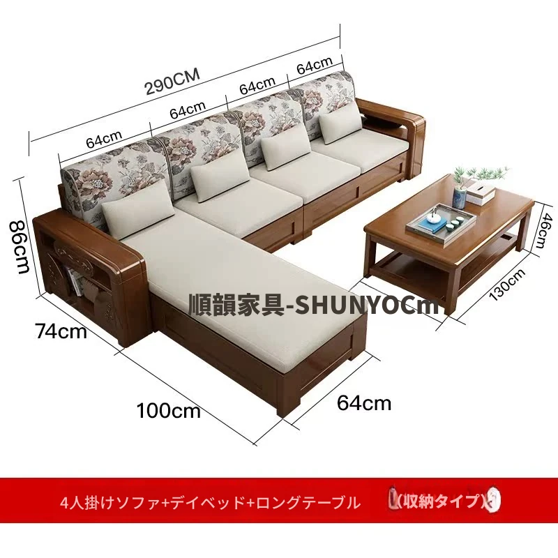 3人用+貴妃+コーヒーテーブル(収納タイプ)