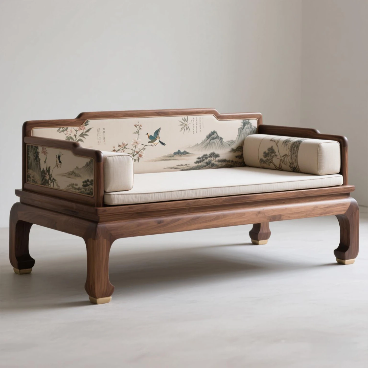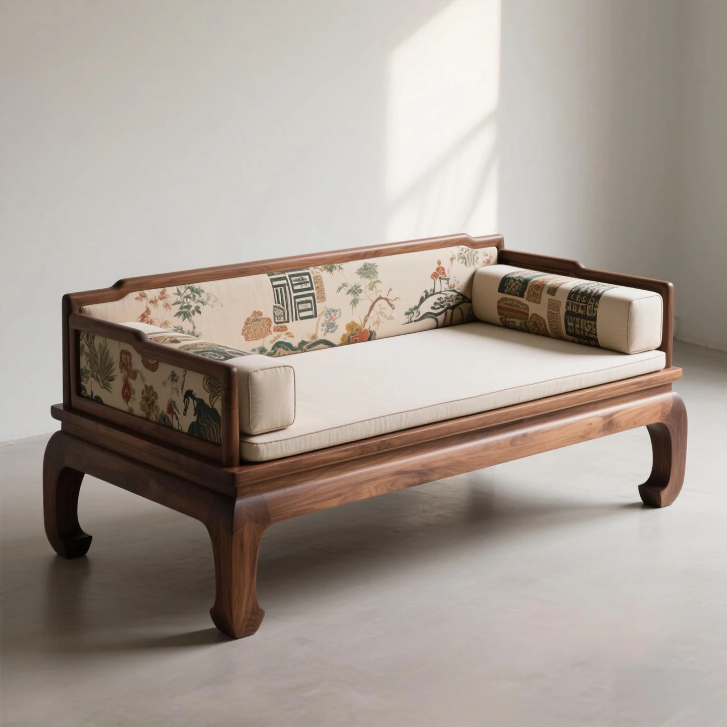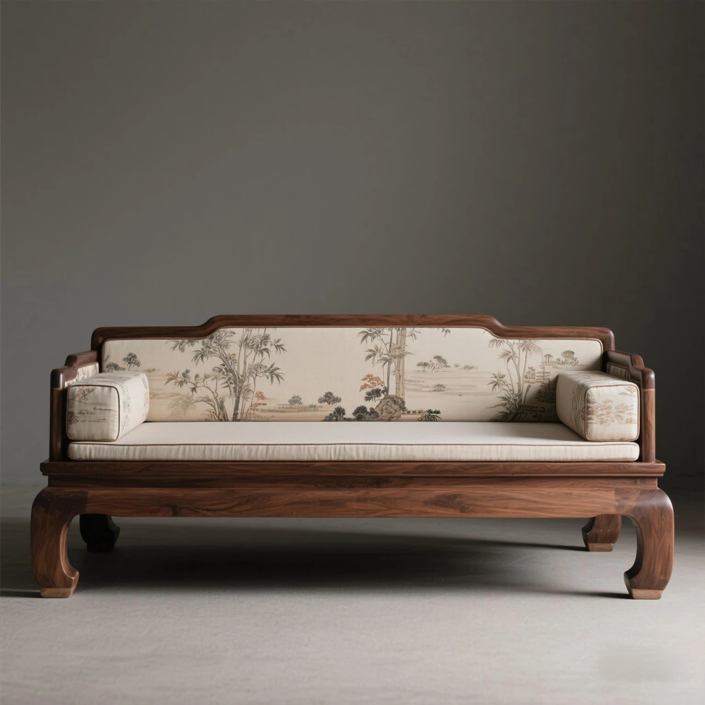 宋氏美学のブラックウォールナット製ロハンベッド 2025年新作 高級禅スタイル 家庭用リビング実木ソファ ロハン榻で、心安らぐ空間を演出!