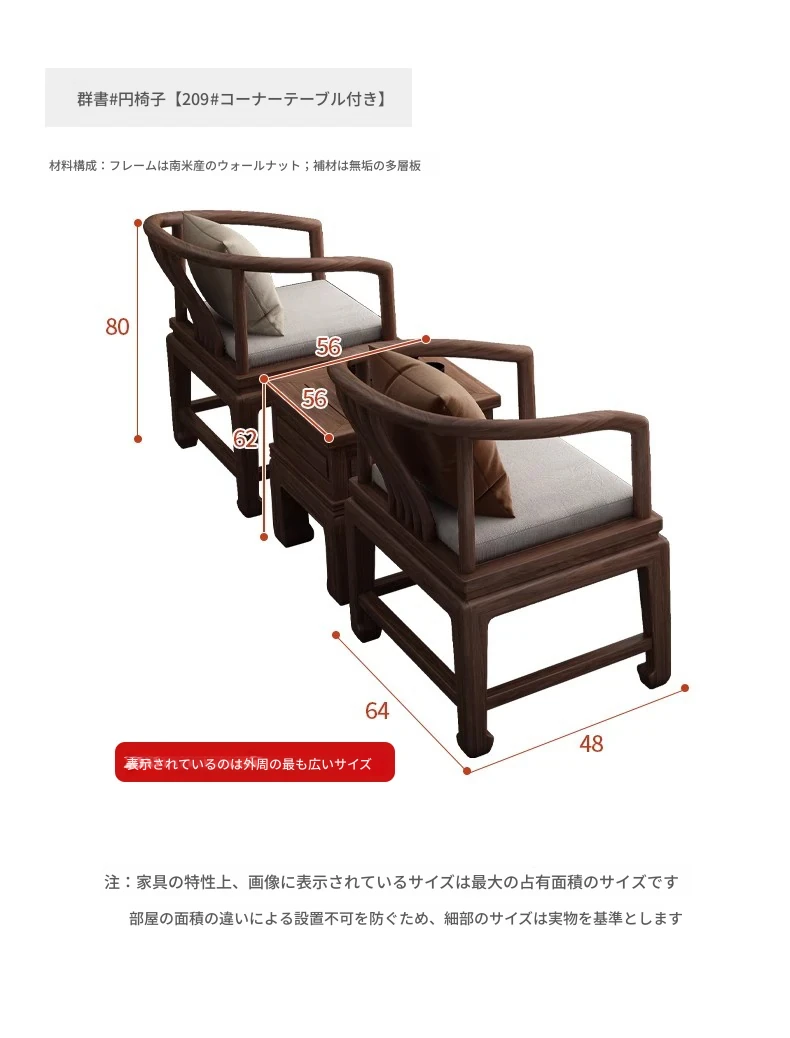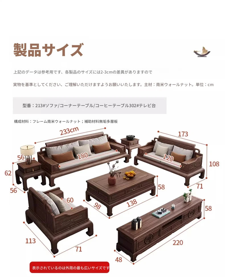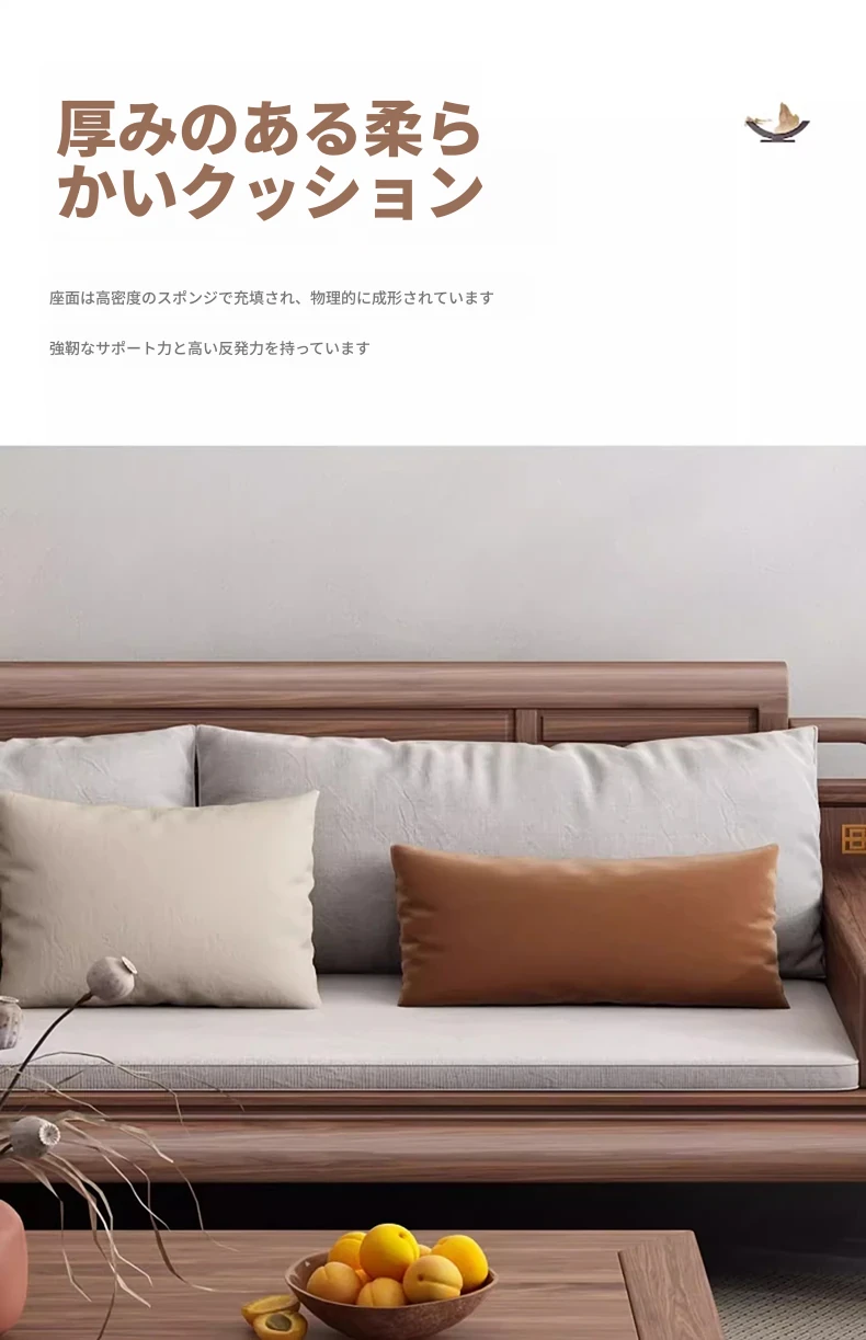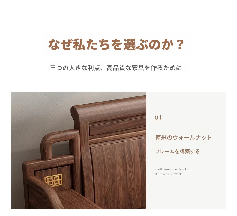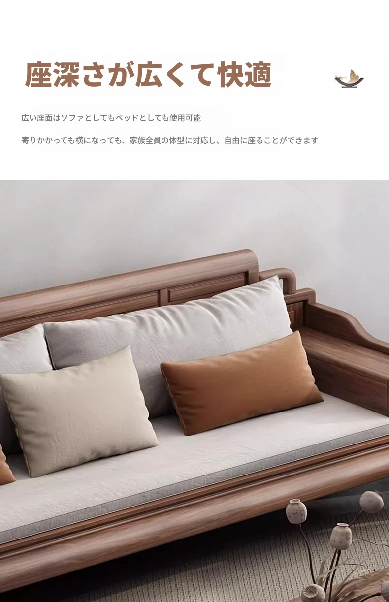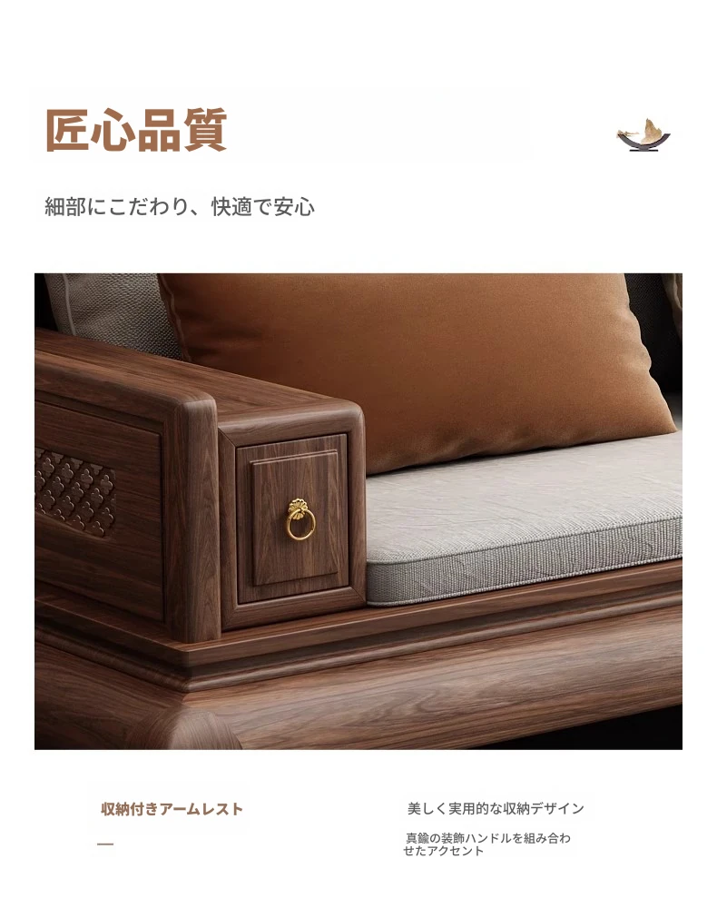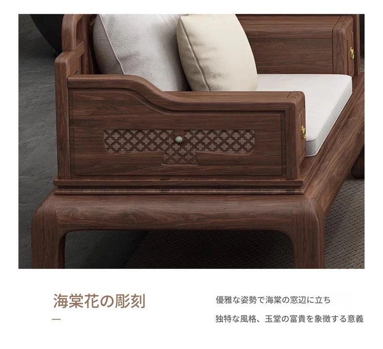 南米産ウォールナットの新中式無垢材ソファセット - 大型リビングルームに最適!冬も夏も快適に使える国潮風のアンティークスタイル家具。おしゃれで機能的な空間を演出します。