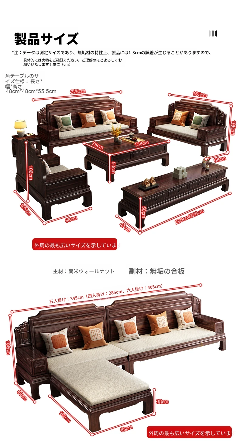 3.45メートル5人掛け+カウチ+ロングコーヒーテーブル+1コーナーテーブル