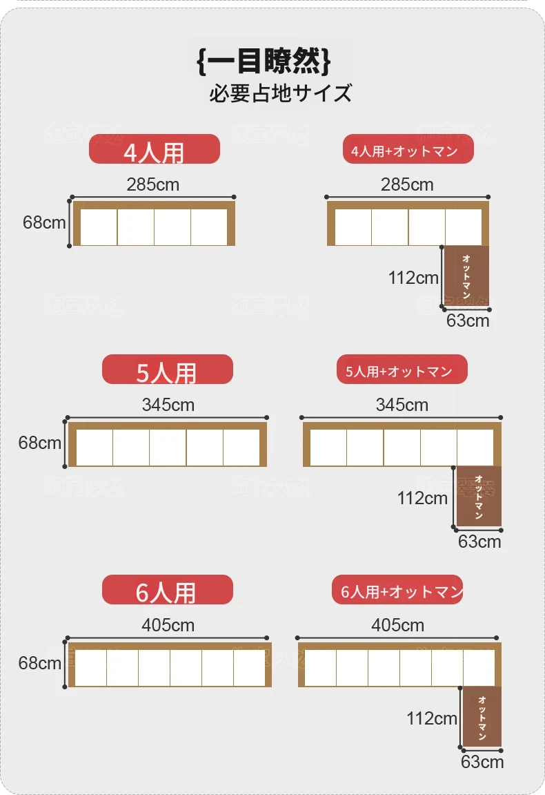 4.05メートル6人掛け+カウチ+ロングコーヒーテーブル