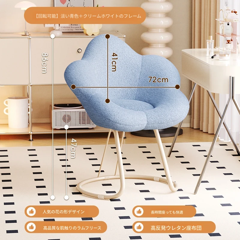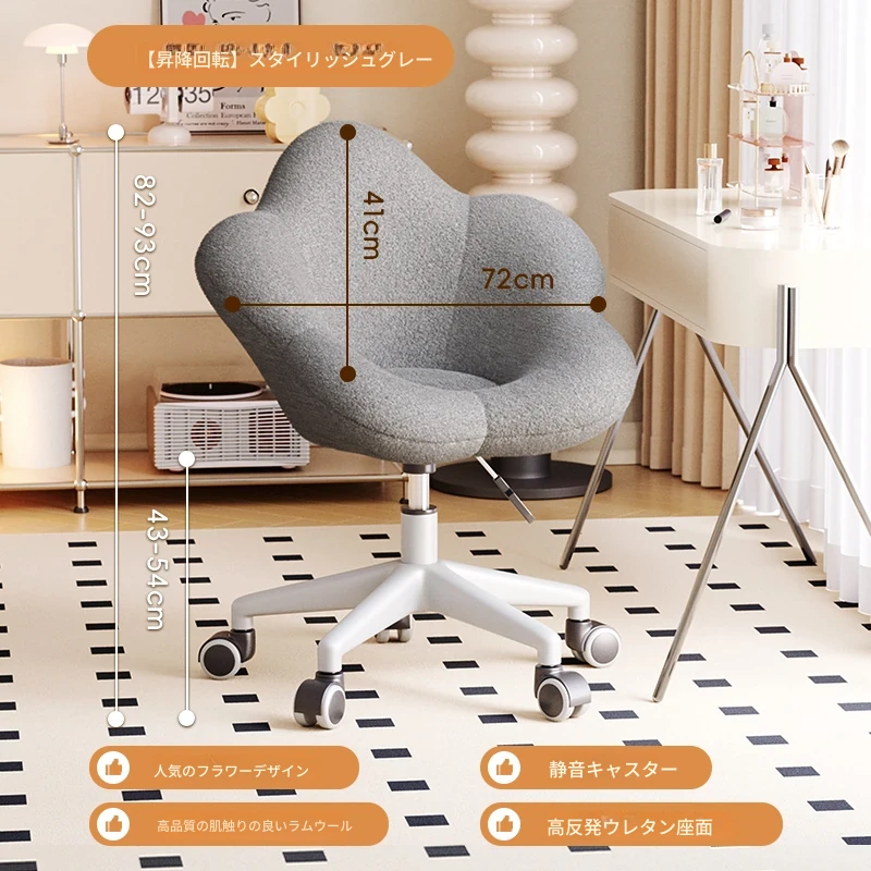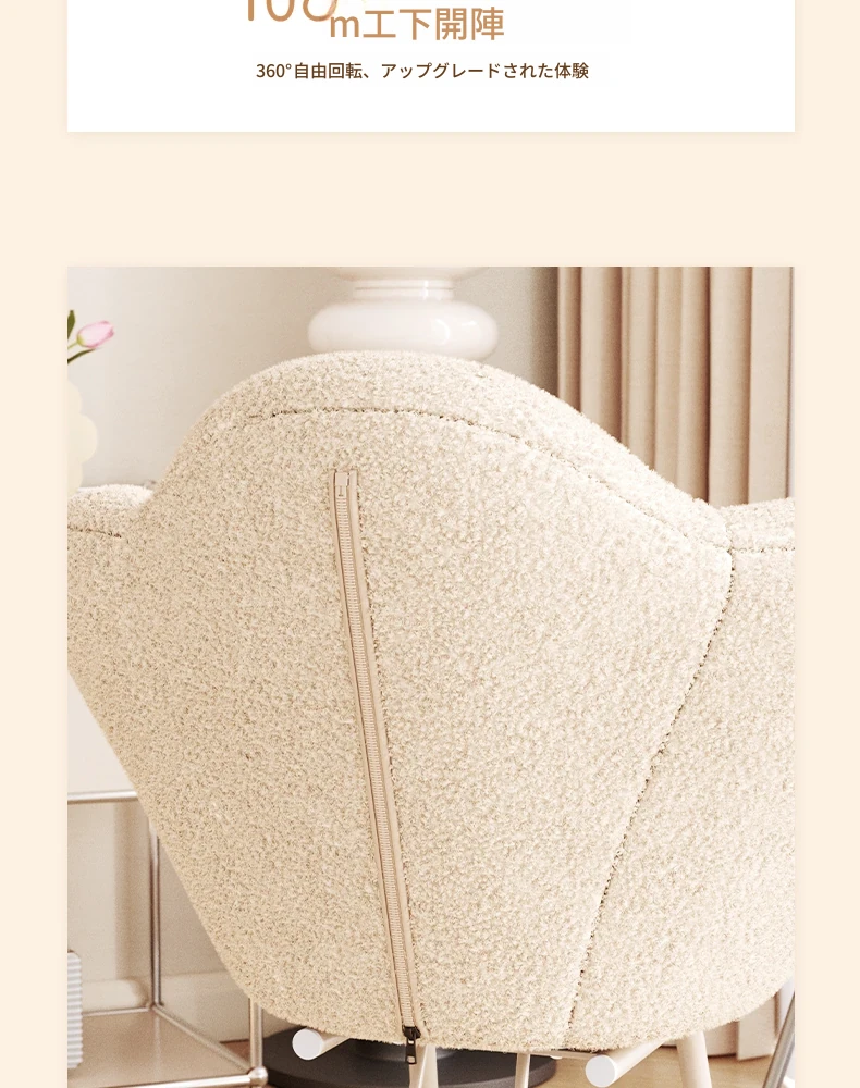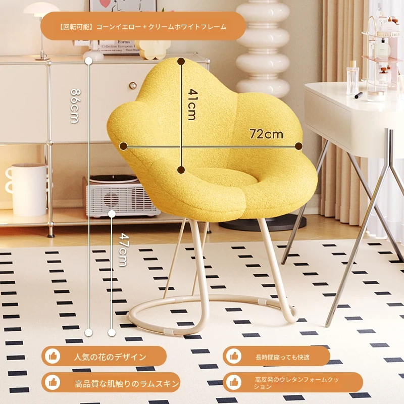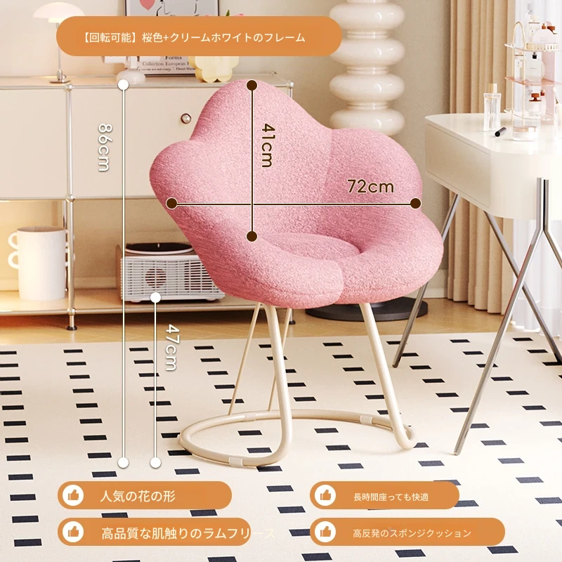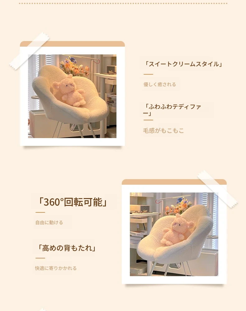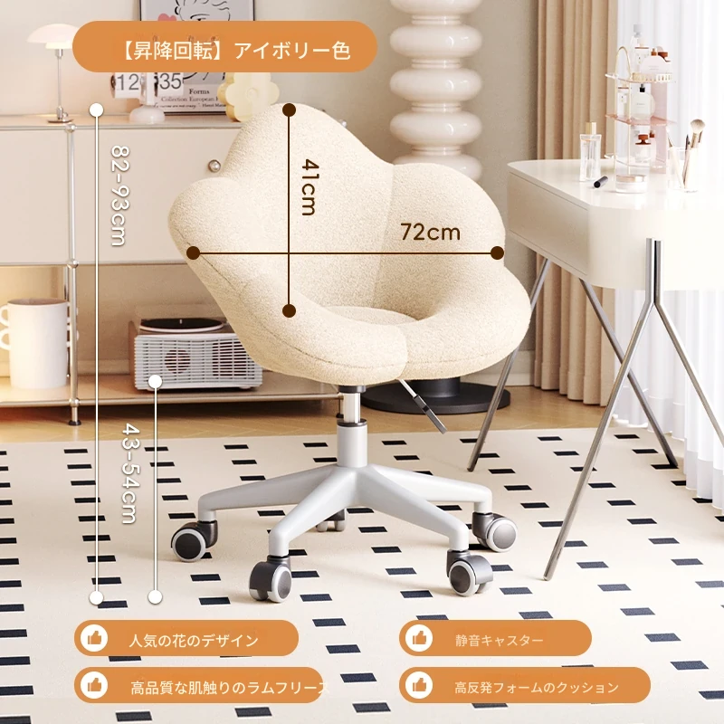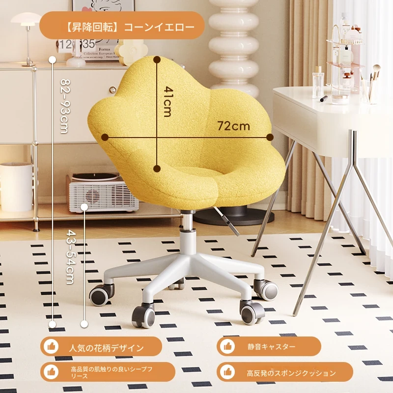 インフルエンサー必見!回転式可愛い化粧椅子 - 女の子のためのおしゃれな寝室用ドレッサー椅子、クリーム風デザインでリラックスできる背もたれ付き、美容やネイルにも最適!
