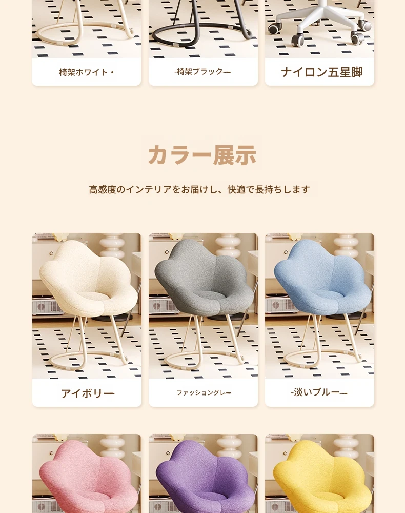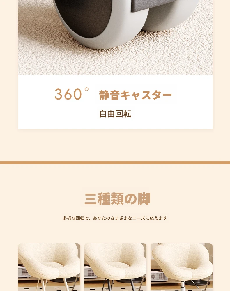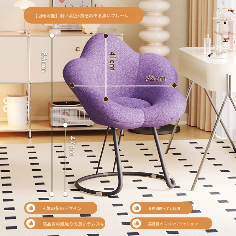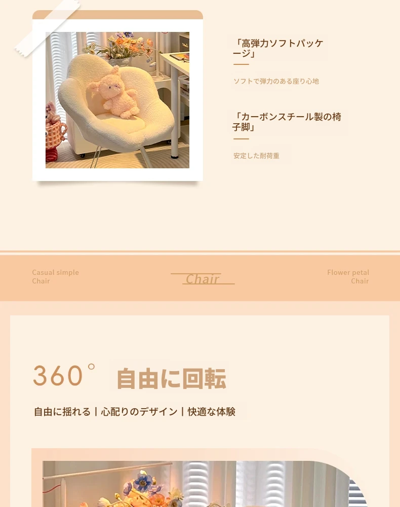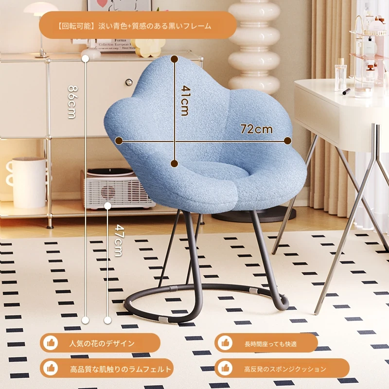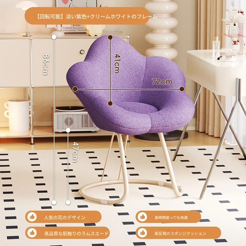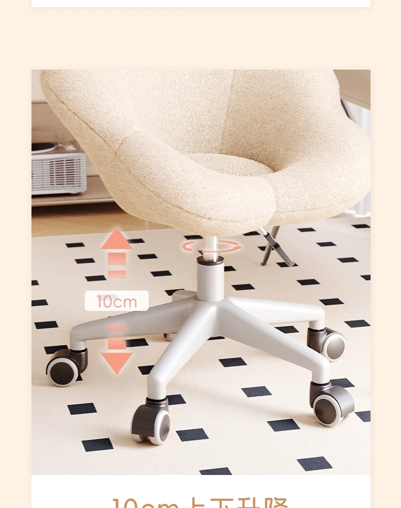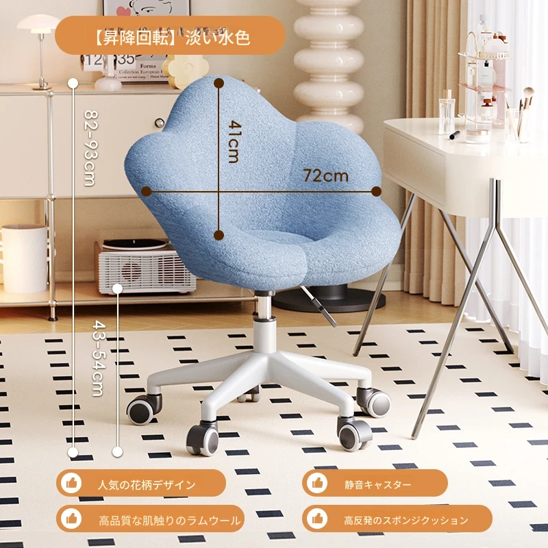 インフルエンサー必見!回転式可愛い化粧椅子 - 女の子のためのおしゃれな寝室用ドレッサー椅子、クリーム風デザインでリラックスできる背もたれ付き、美容やネイルにも最適!