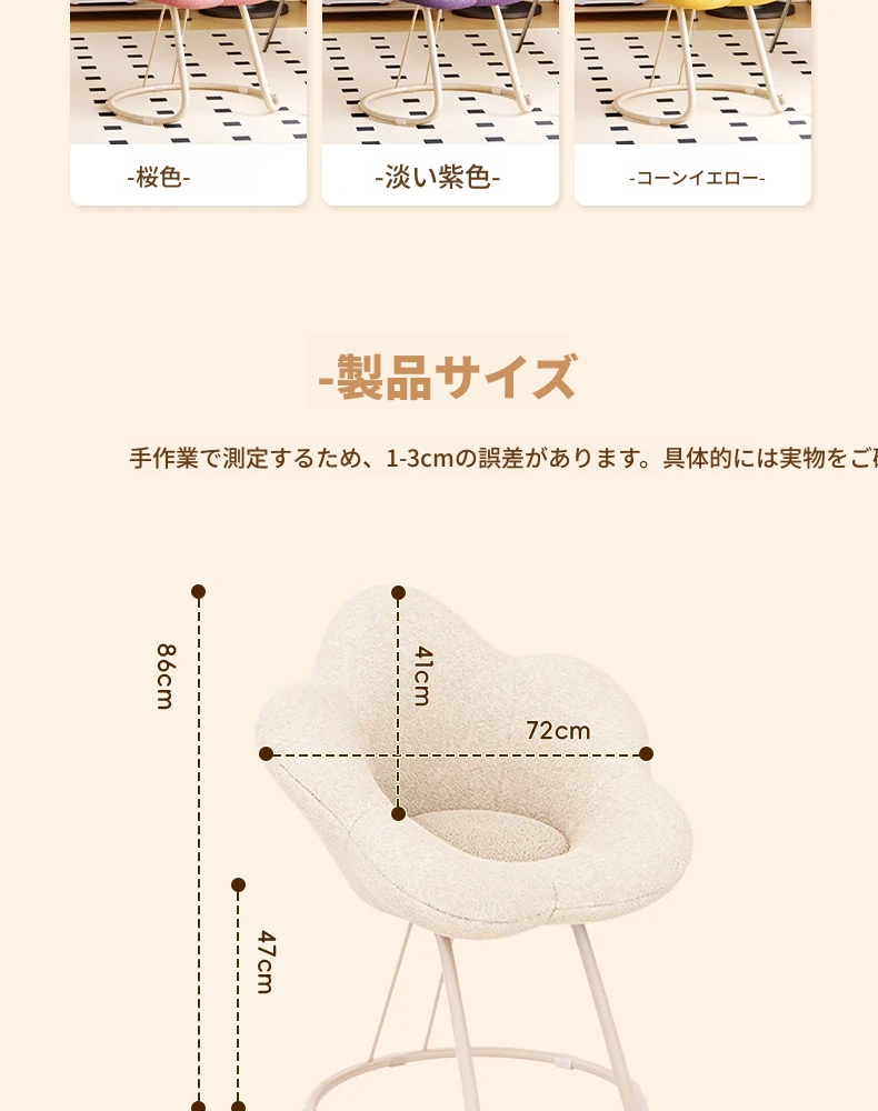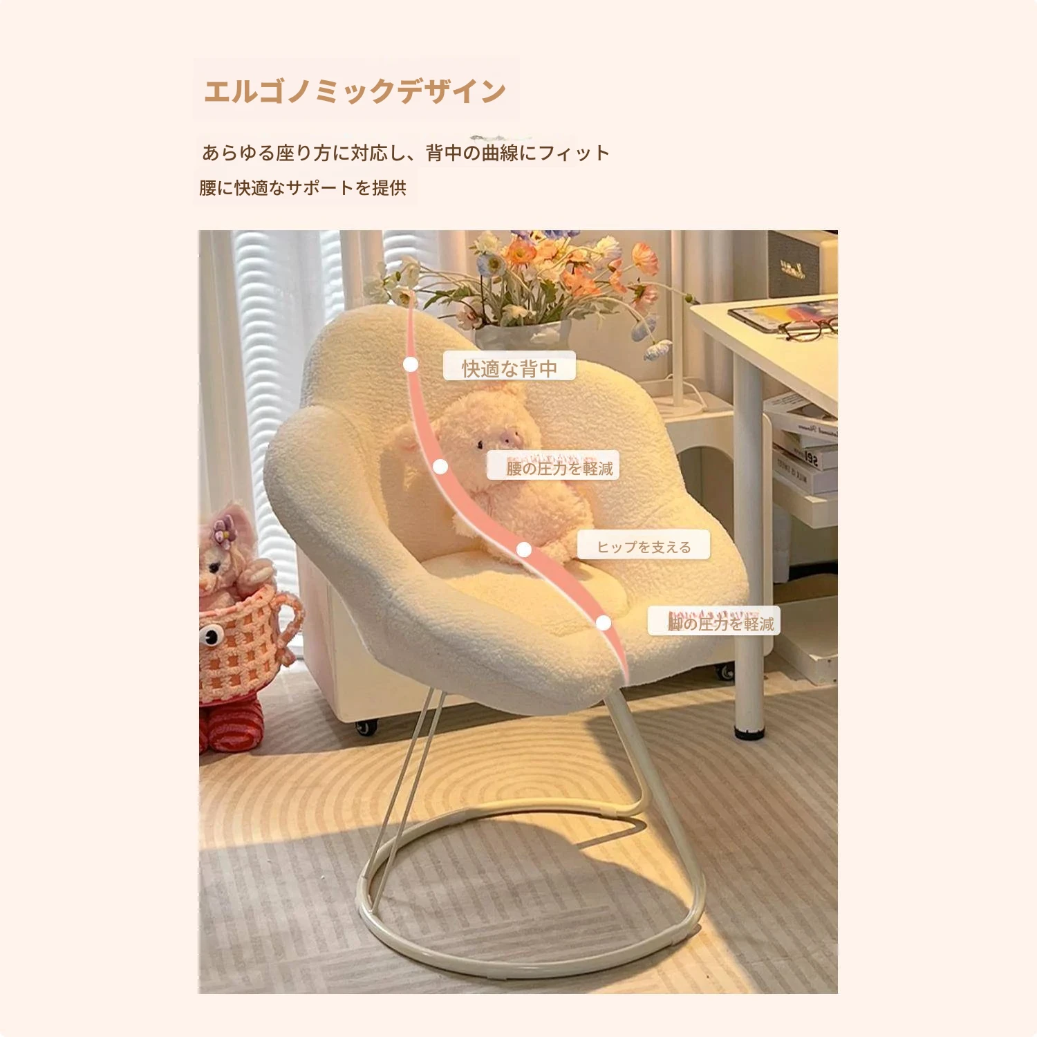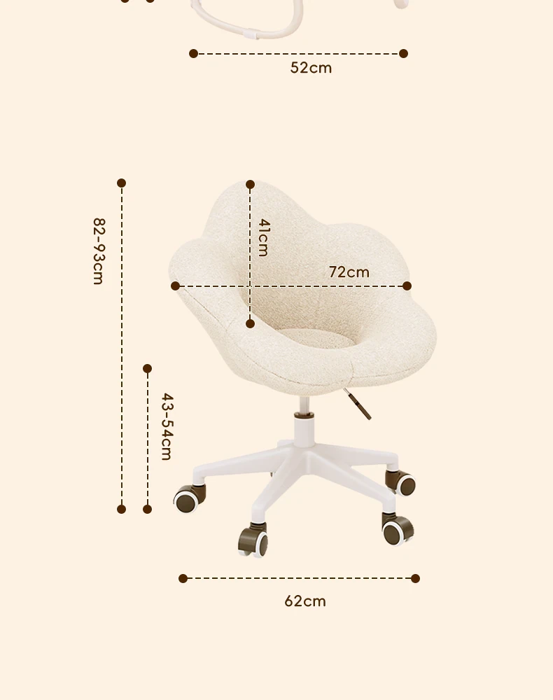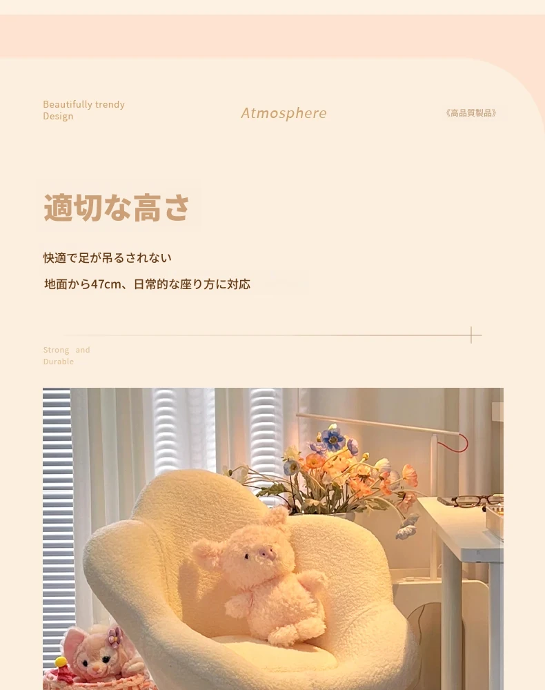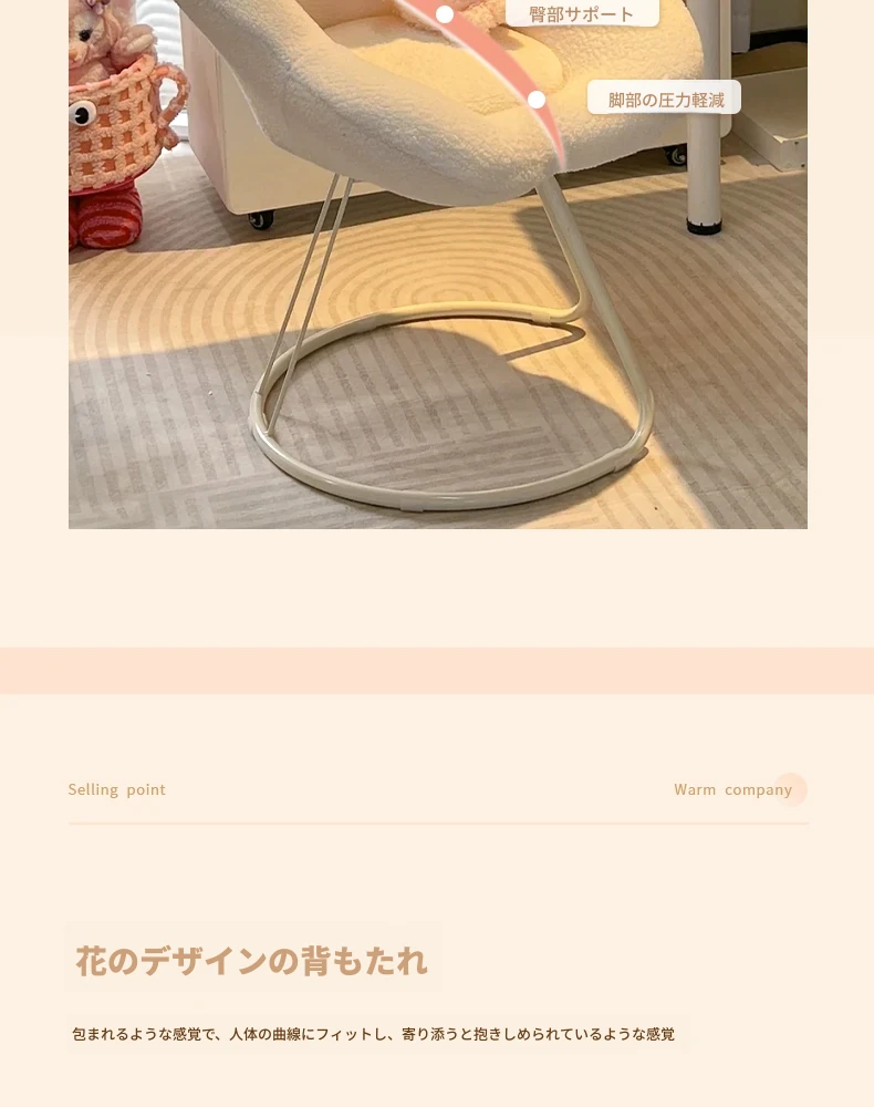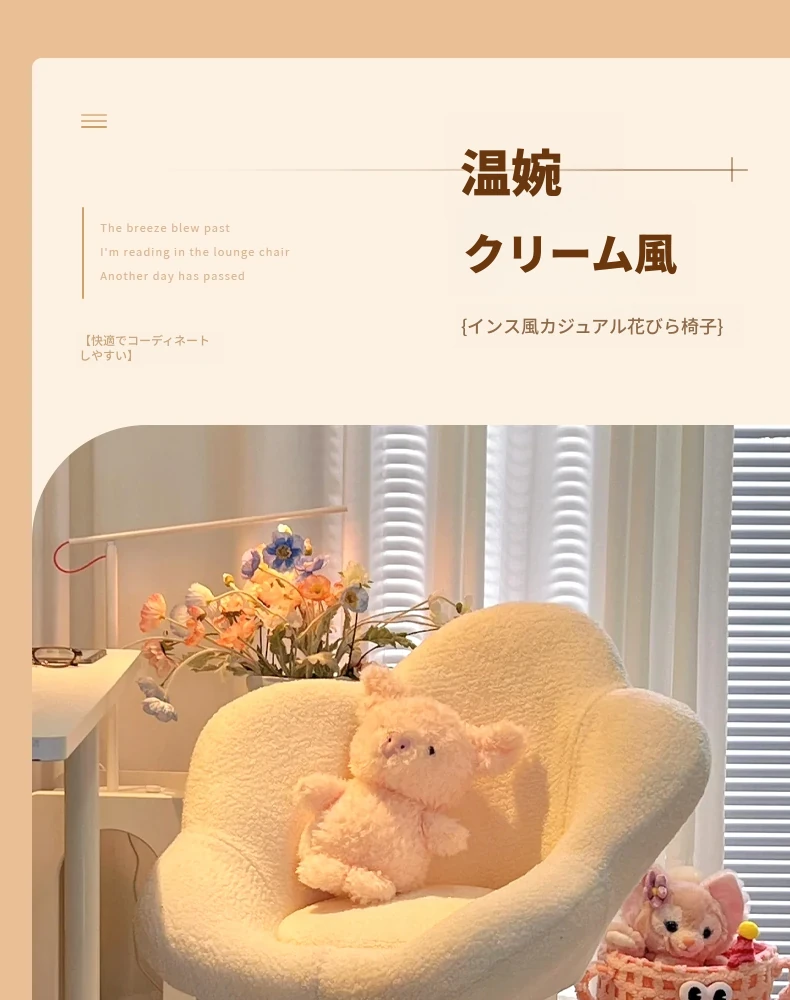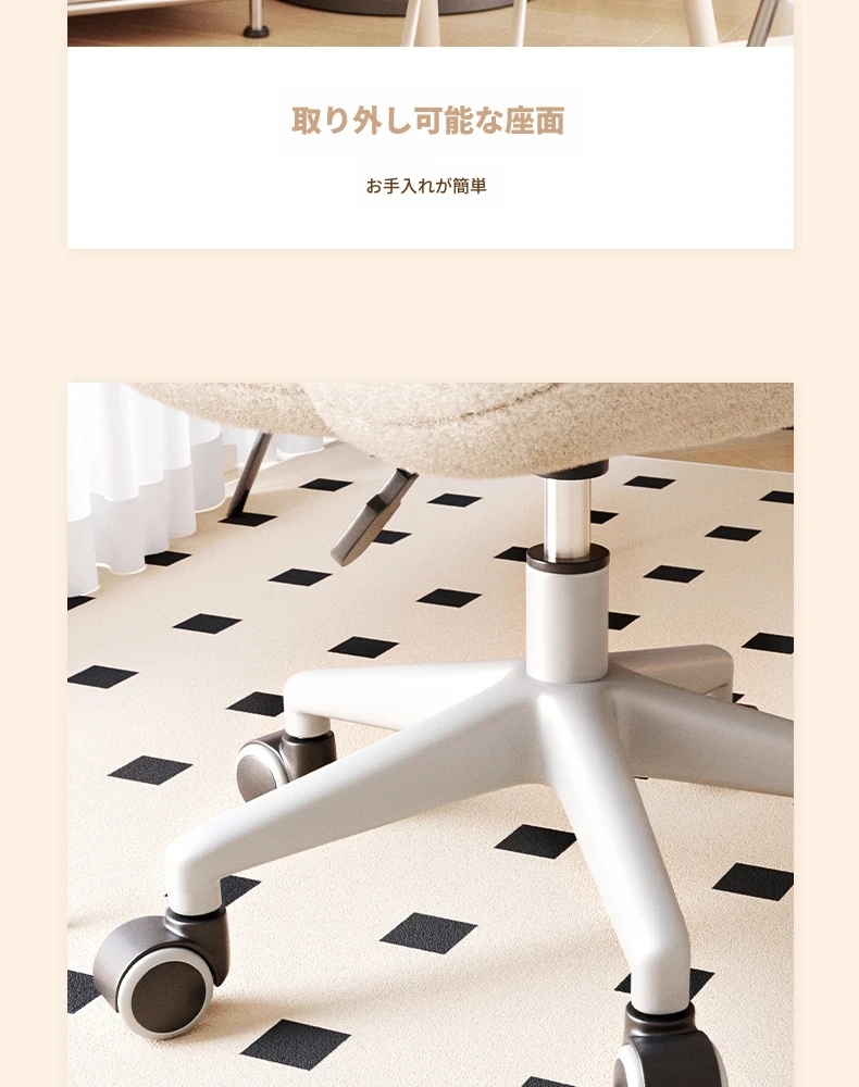 インフルエンサー必見!回転式可愛い化粧椅子 - 女の子のためのおしゃれな寝室用ドレッサー椅子、クリーム風デザインでリラックスできる背もたれ付き、美容やネイルにも最適!