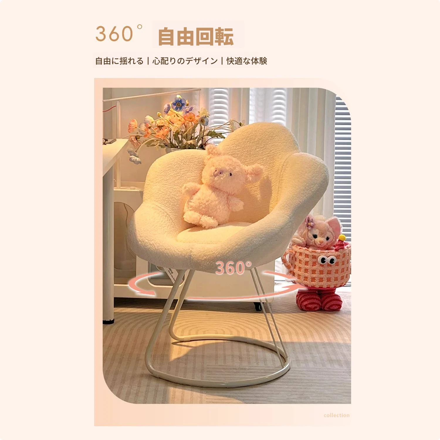 ベージュホワイト⭐クリームホワイトフレーム/360°回転