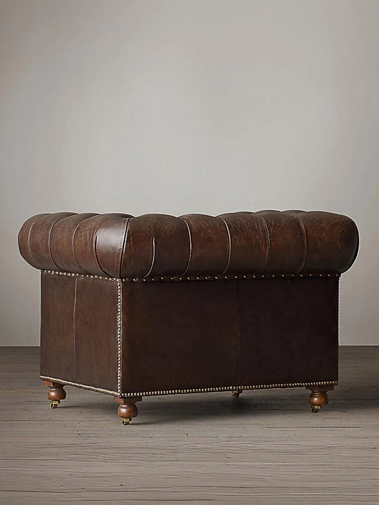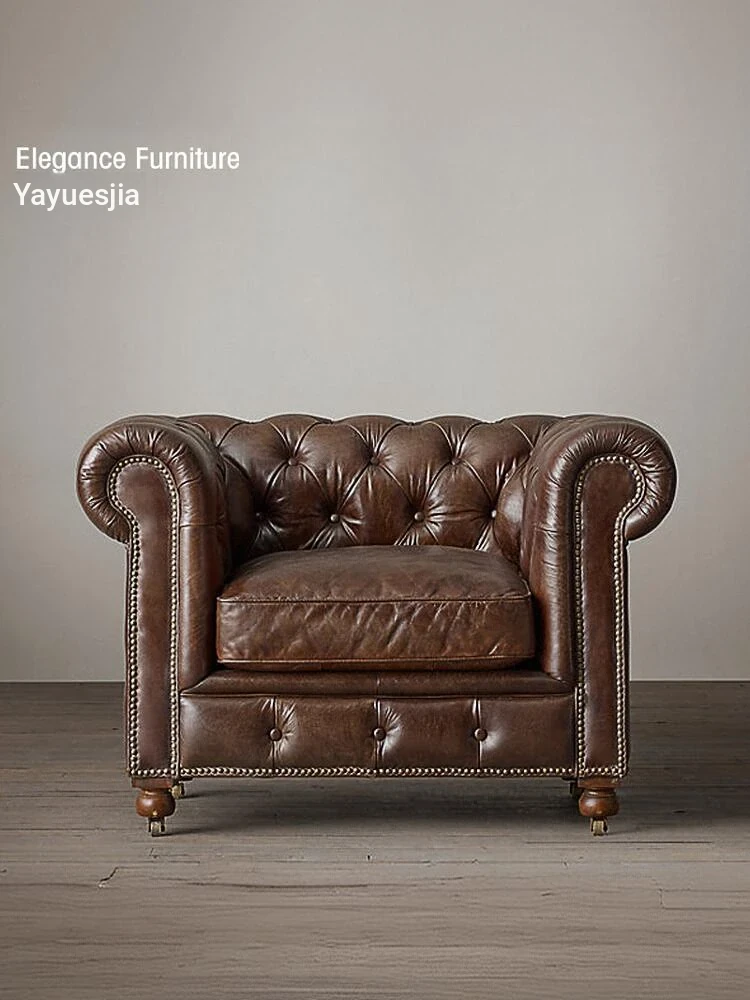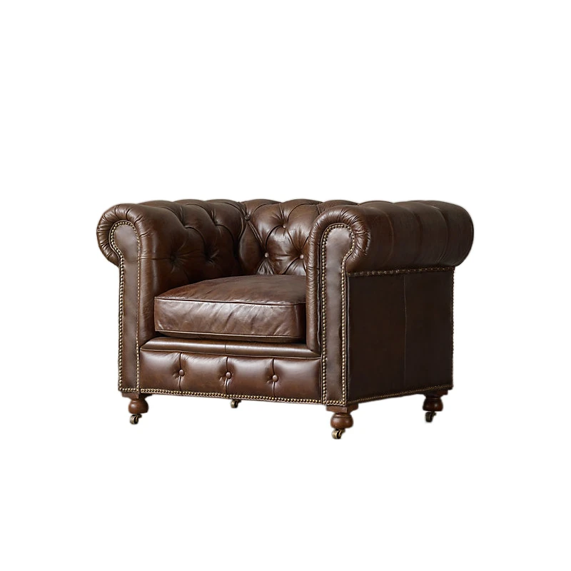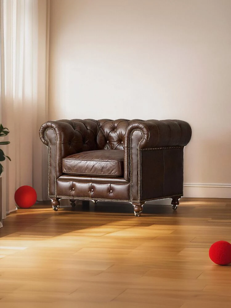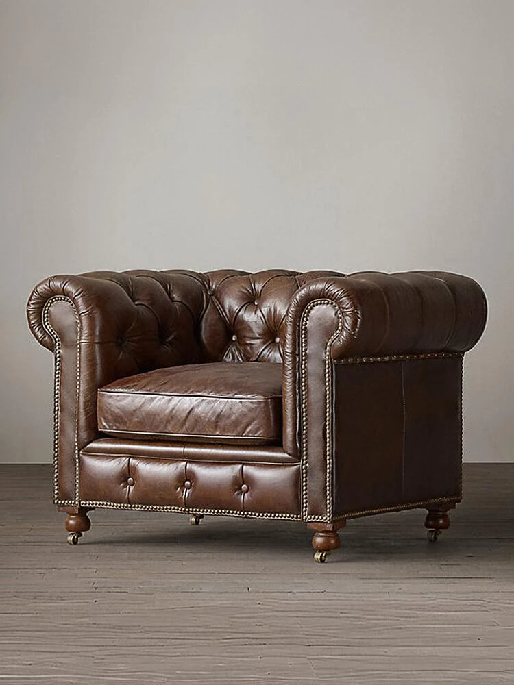 Vintage American Retro Waxed Leather Single Sofa Chair - Designer Lounge Chair for Living Room, Balcony, Cigar Bar - Perfect for Relaxation and Style