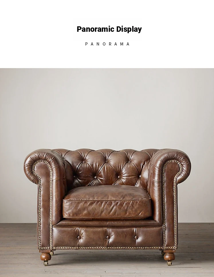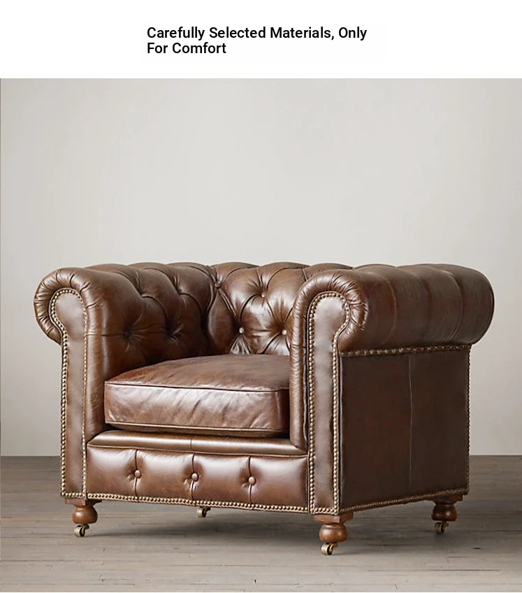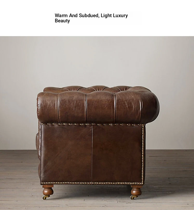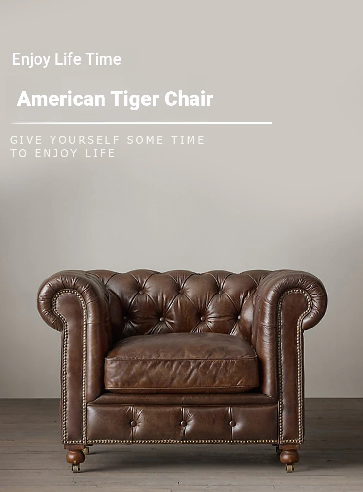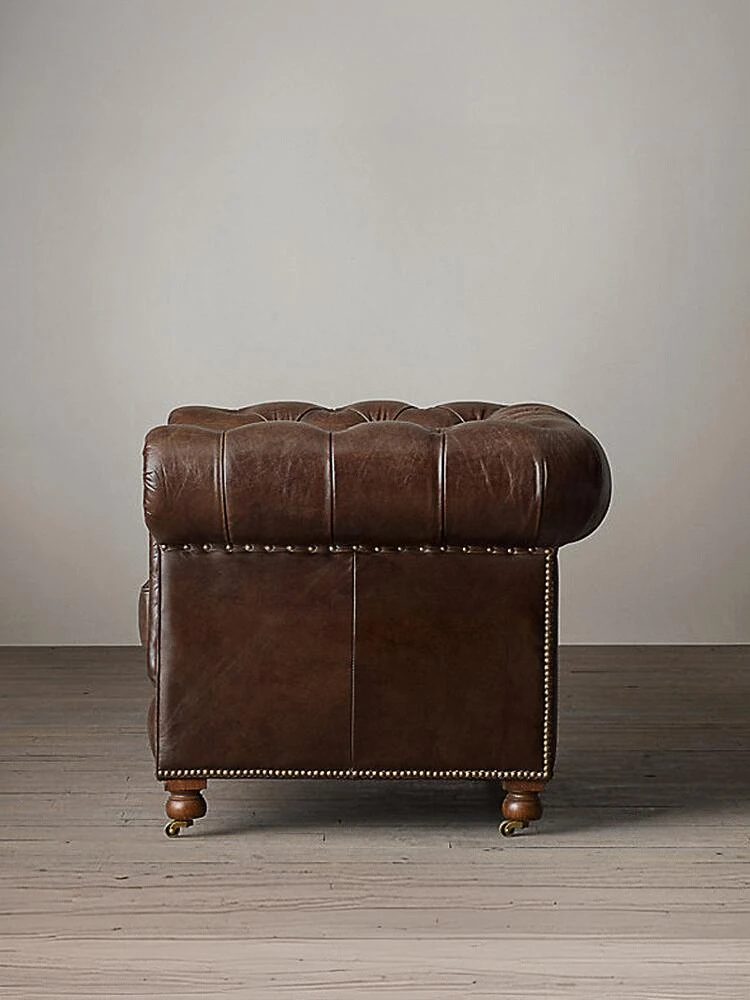 Vintage American Retro Waxed Leather Single Sofa Chair - Designer Lounge Chair for Living Room, Balcony, Cigar Bar - Perfect for Relaxation and Style