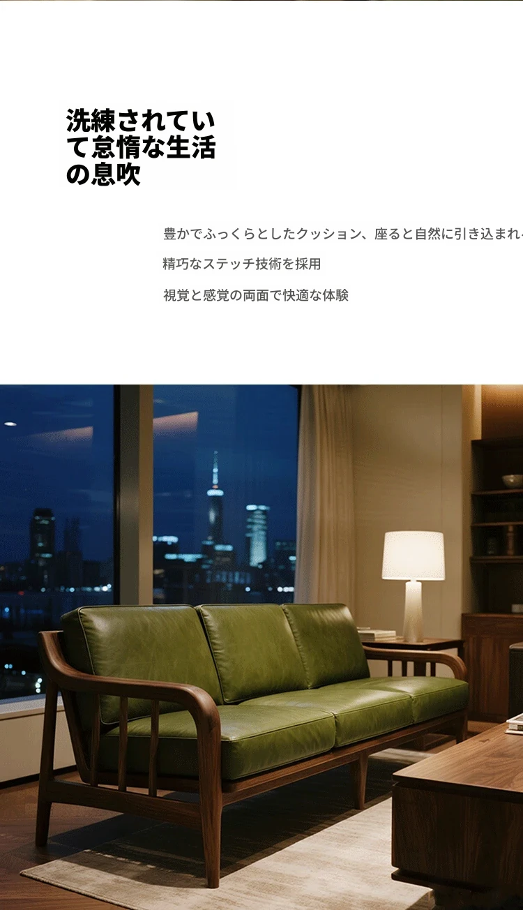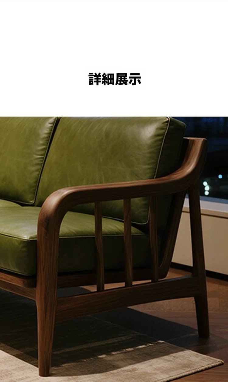 2025年新款!中古風レザーソファー - ヴィンテージスタイルの無垢材リビング用、イタリアンラグジュアリーの小型ブラックウォールナットソファー。エレガントでコンパクトなデザインで、狭いお部屋にもぴったり!