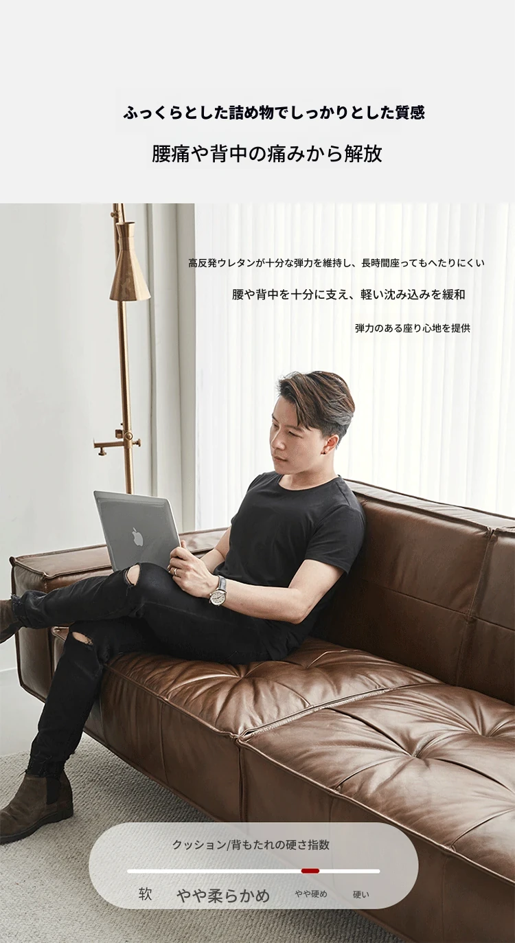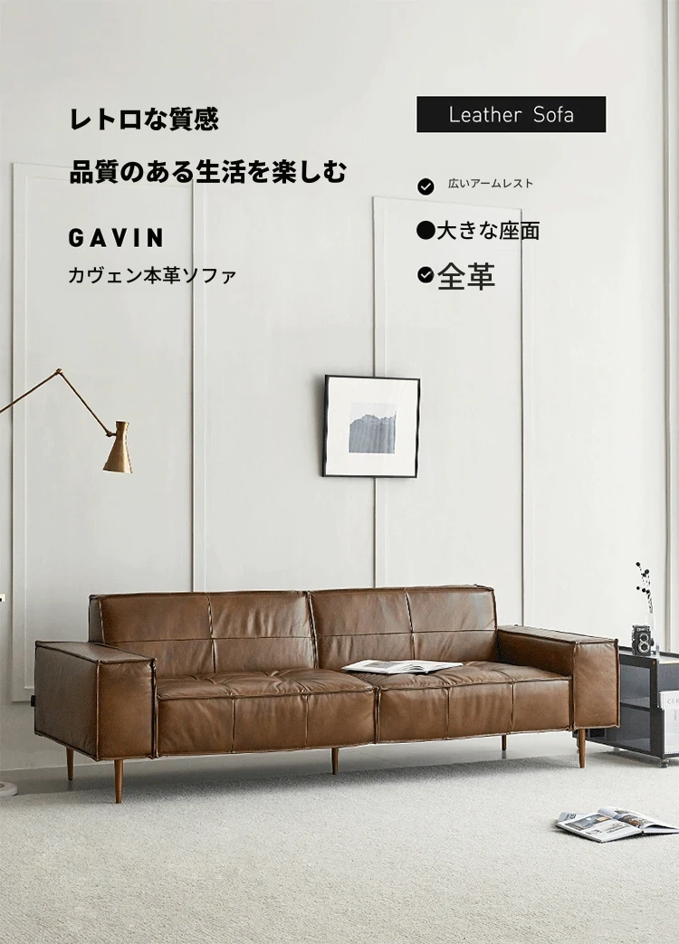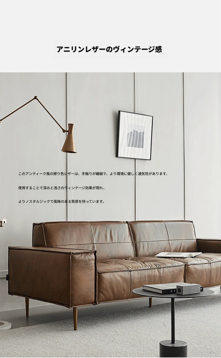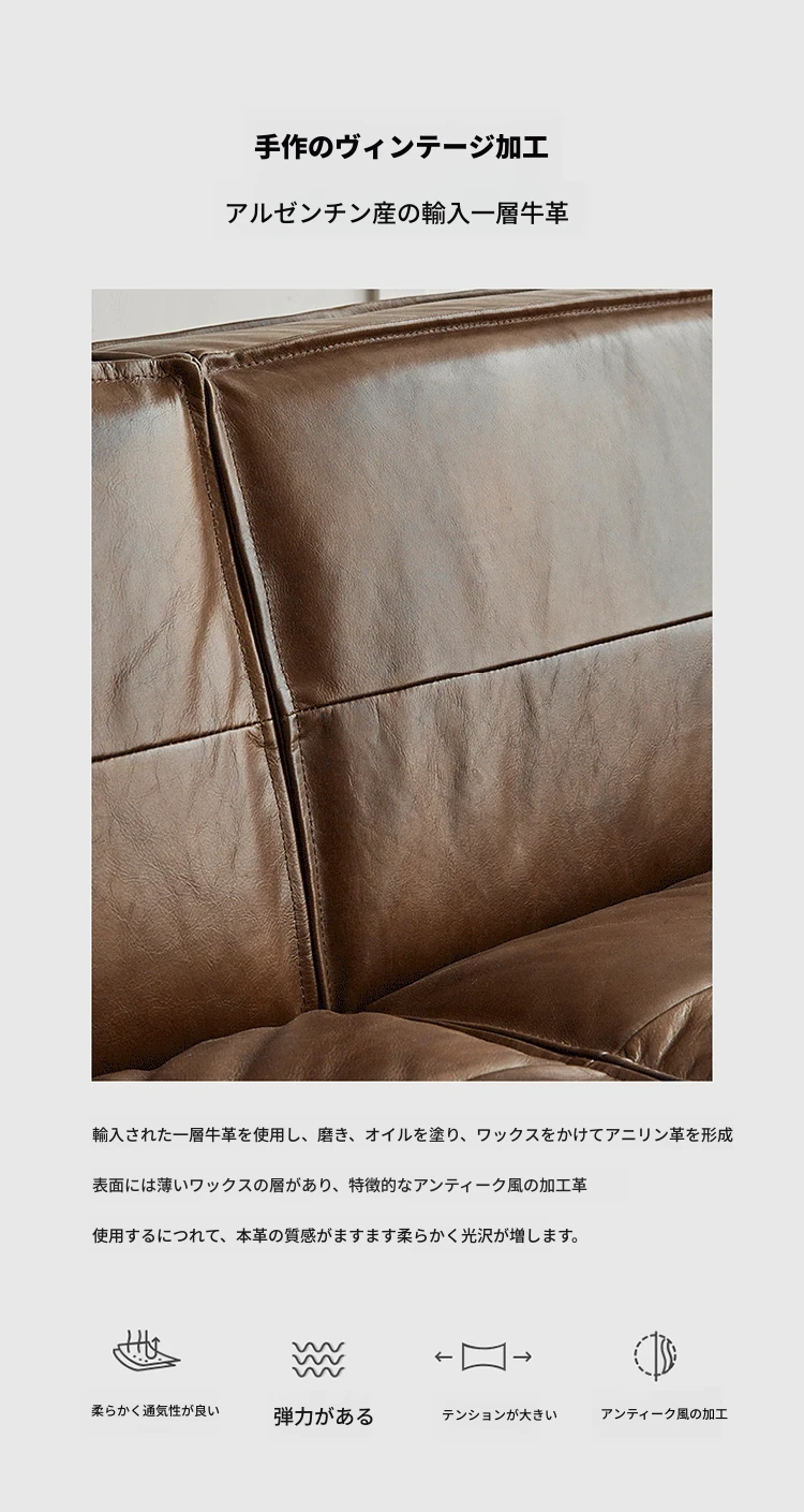 2.2メートル三人掛け【接触面オイルワックス頭層牛革 偽物は十倍の罰】