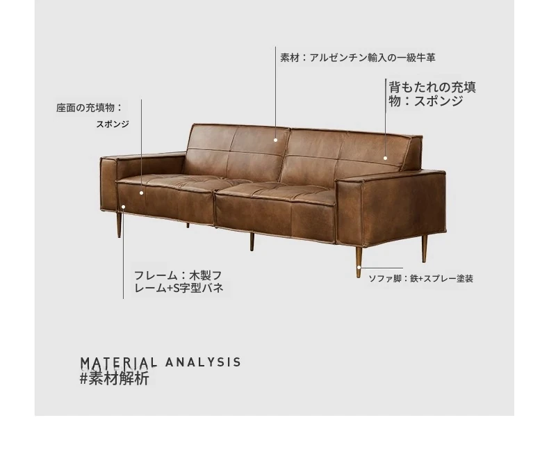 1.8メートル二人掛け【接触面オイルワックス頭層牛革 偽物は十倍の罰】