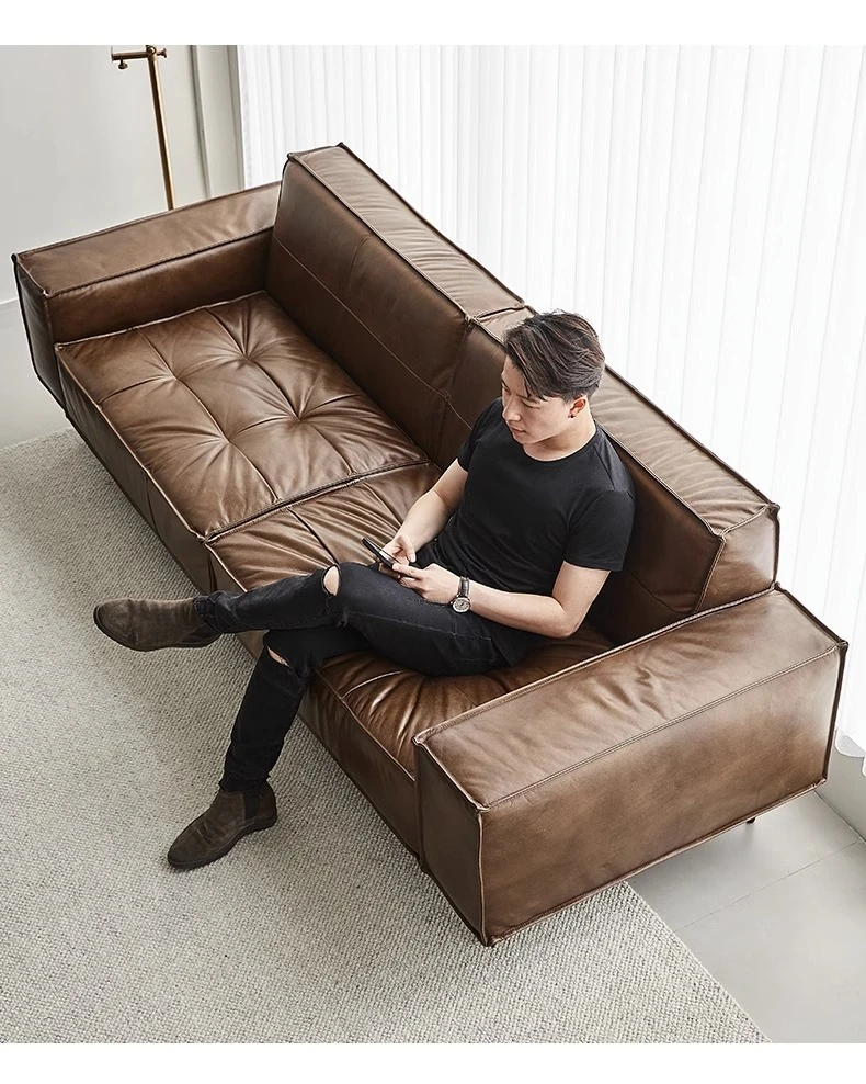 2.6メートル分割四人掛け【接触面オイルワックス頭層牛革 偽物は十倍の罰】