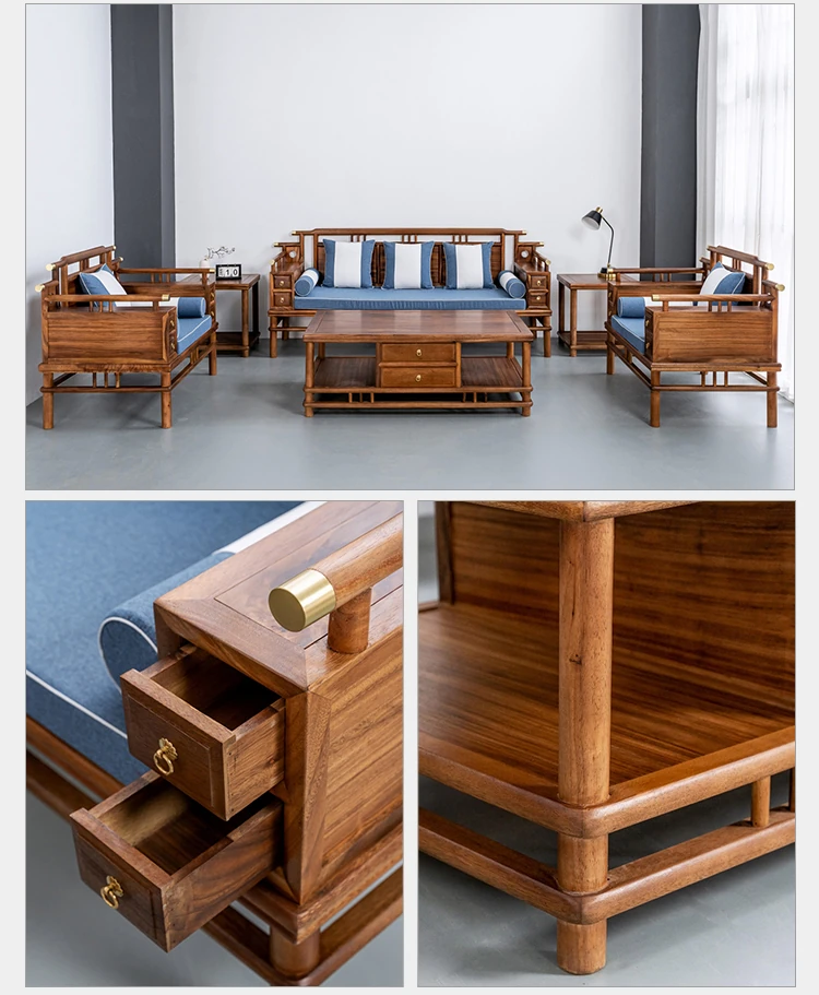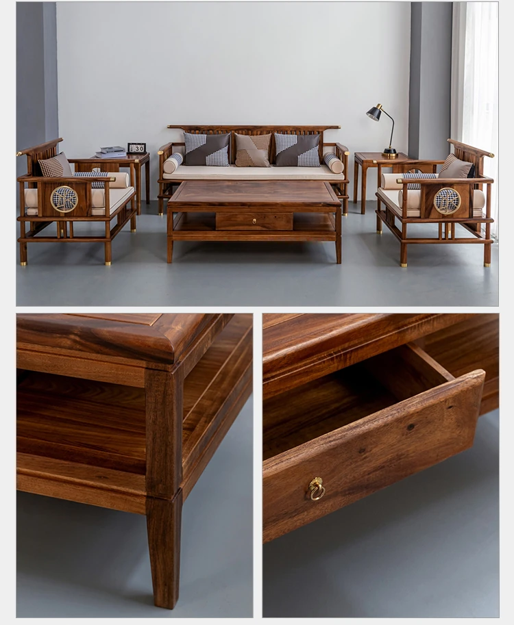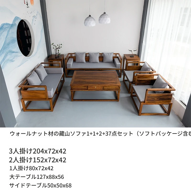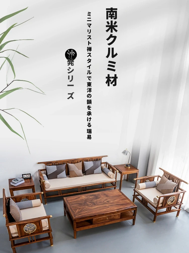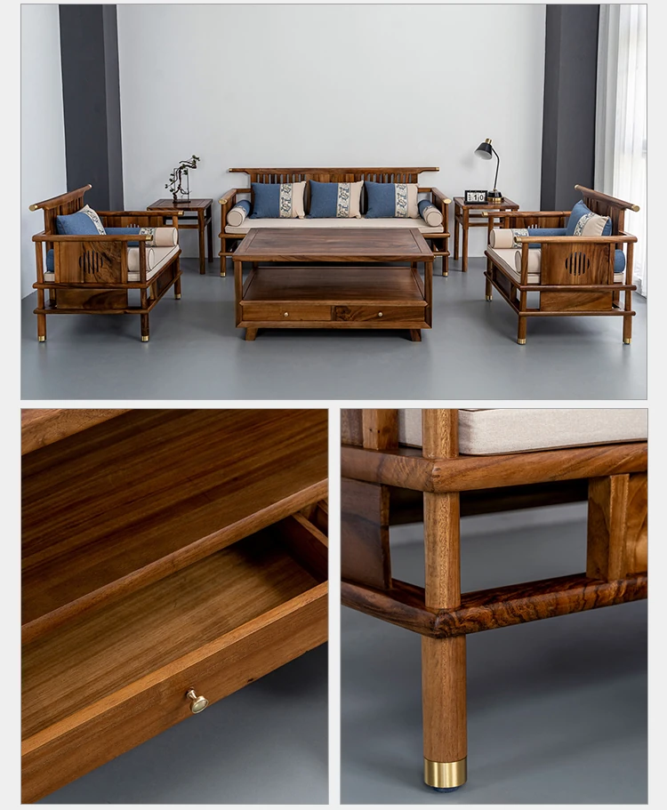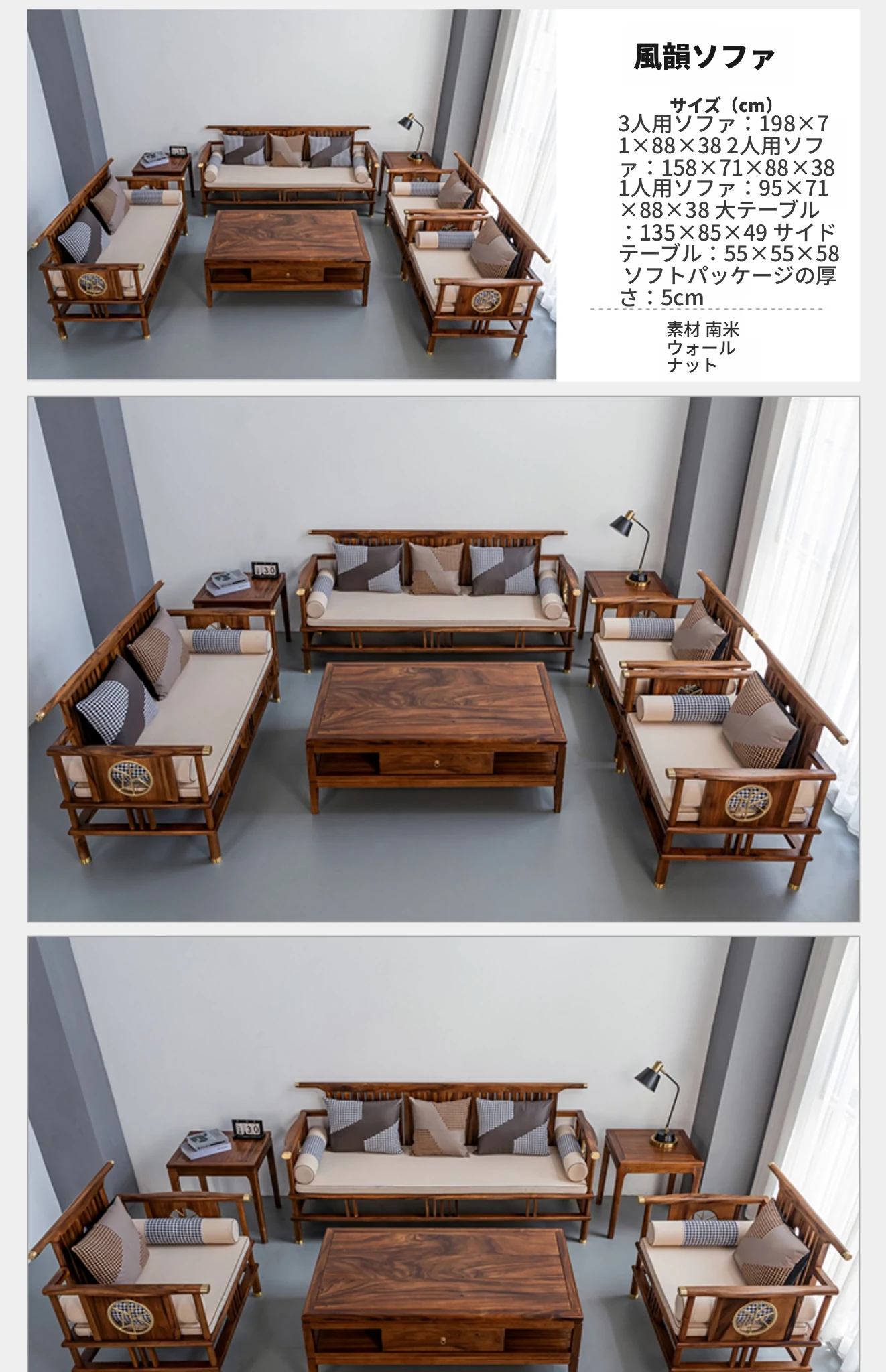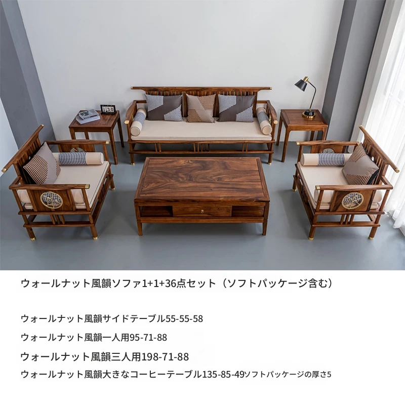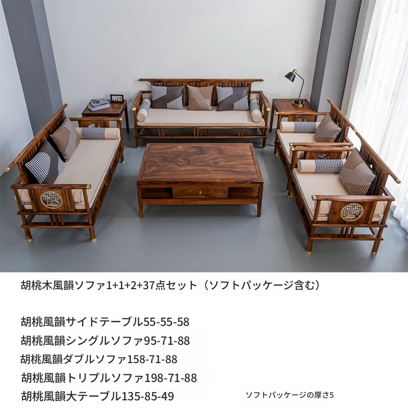 ウォールナット無垢材ソファーリビングルームセット新中式シンプルモダン冬夏兼用パドックウッドソファー家具で、快適な空間を演出!高品質な素材で耐久性抜群、おしゃれで温かみのあるデザイン。