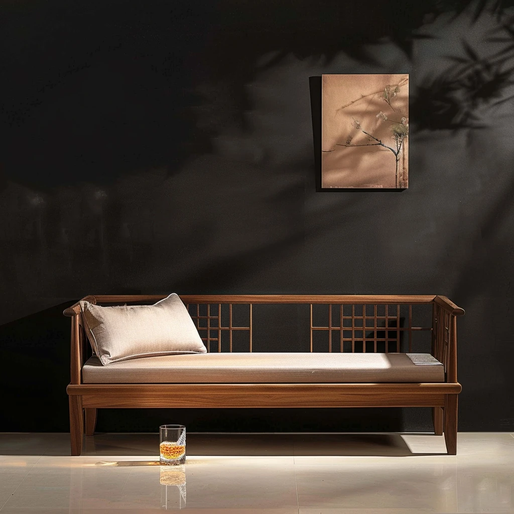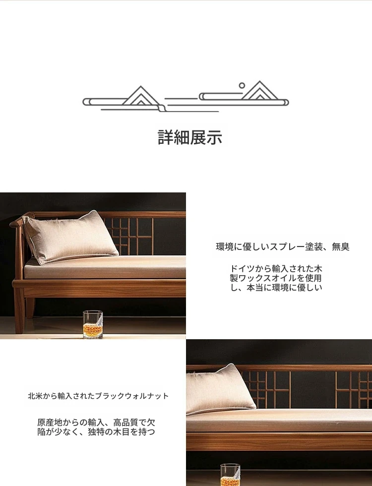 禅の趣き漂う新中式デザイン 北米産ブラックウォルナット製 高級感溢れるシンプルな貴妃椅子 ソファーとしても大活躍 ホテルや民宿、家庭での使用に最適!